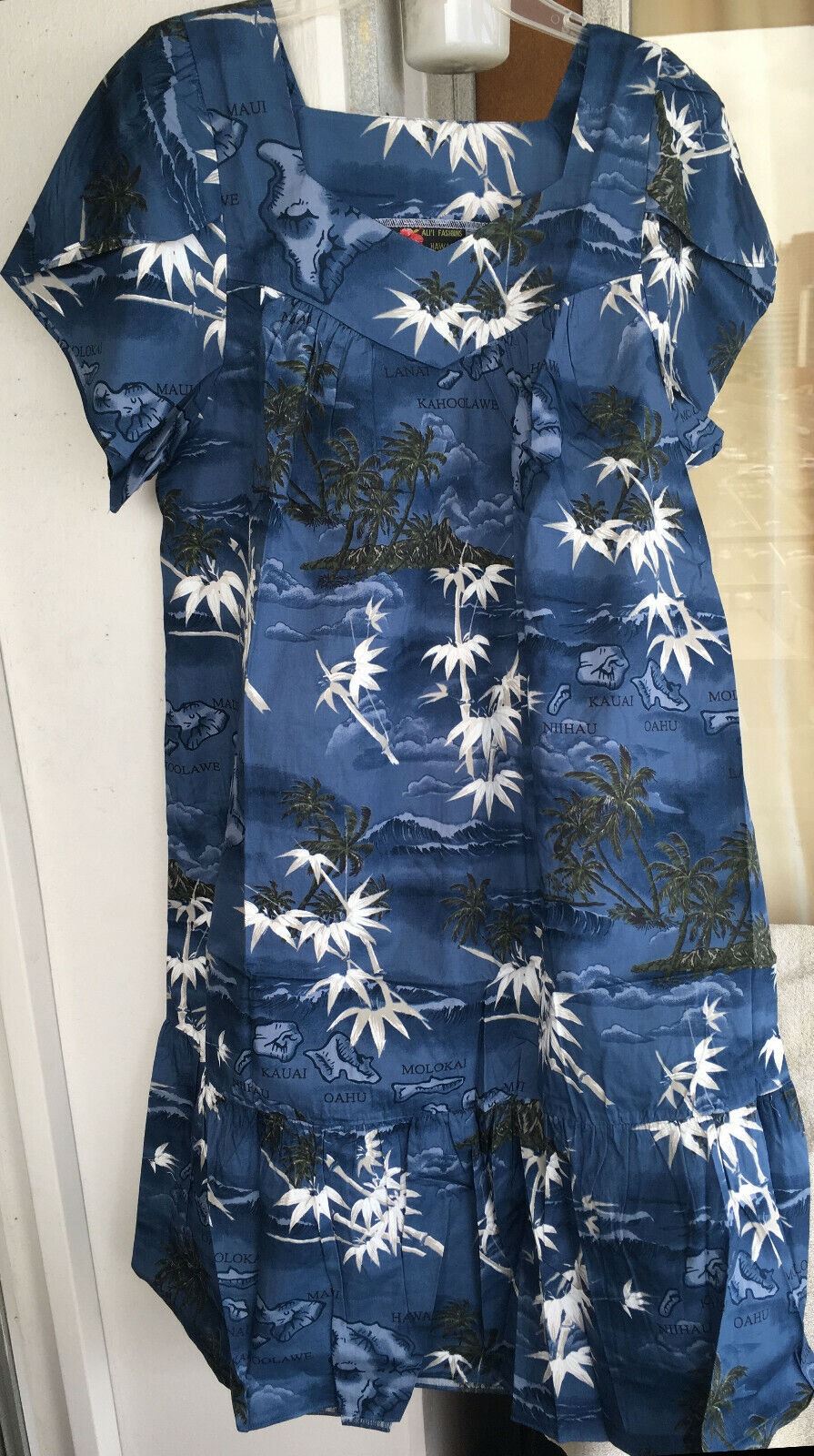 Qty 2 New 2X Ali'i Fashions Hawaii Blue White Cotton MuuMuu Dresses (50" bust/44"L)