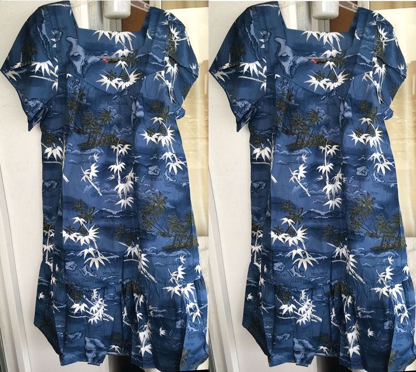 Qty 2 New 2X Ali'i Fashions Hawaii Blue White Cotton MuuMuu Dresses (50" bust/44"L)