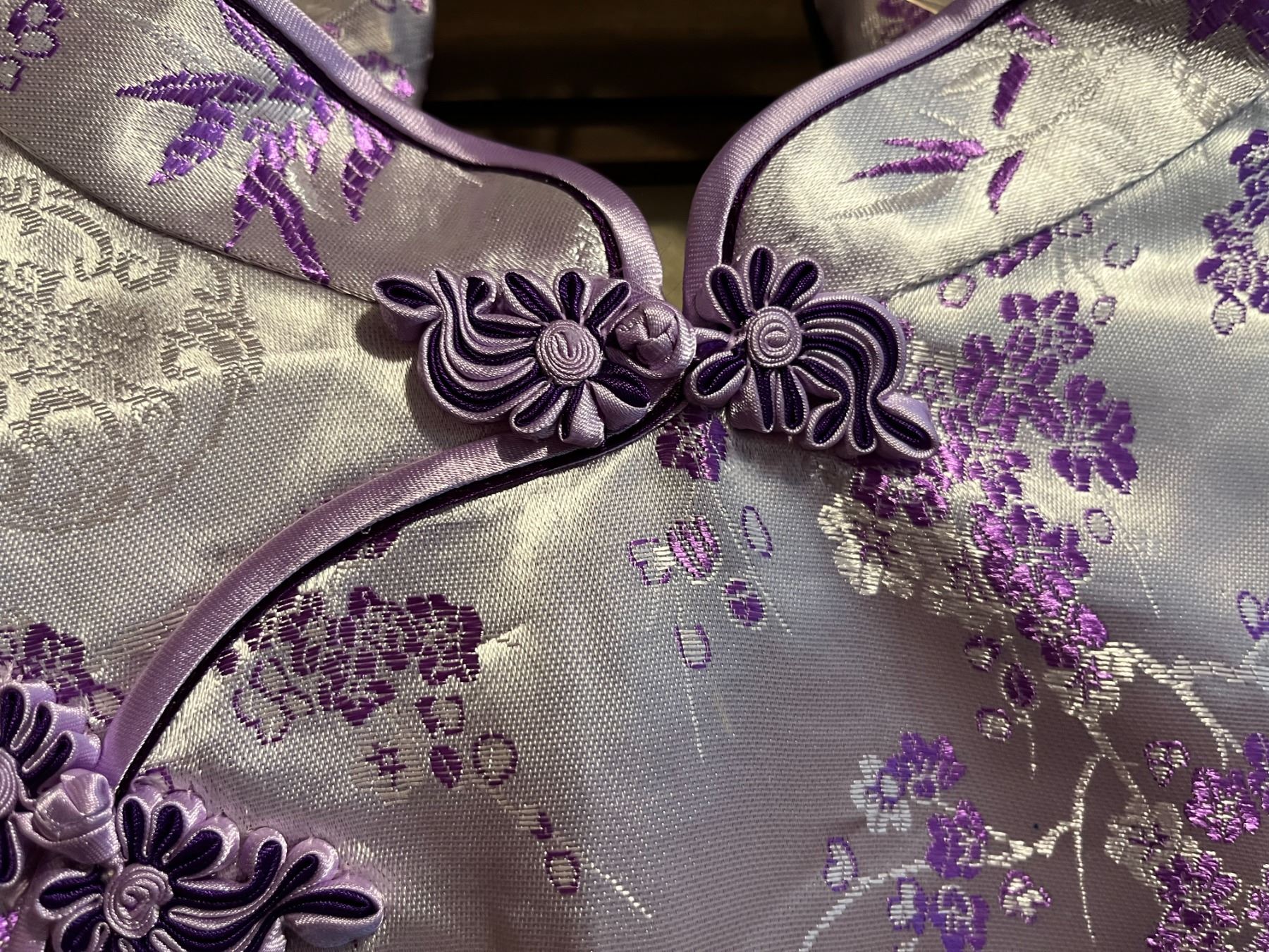 Qty 2 New Asian Dresses w/ Oriental Clasps & Slits: Size XL (35" bust/52"L), Size XXXXL (40"bust/54"L). Please note these fit VERY small