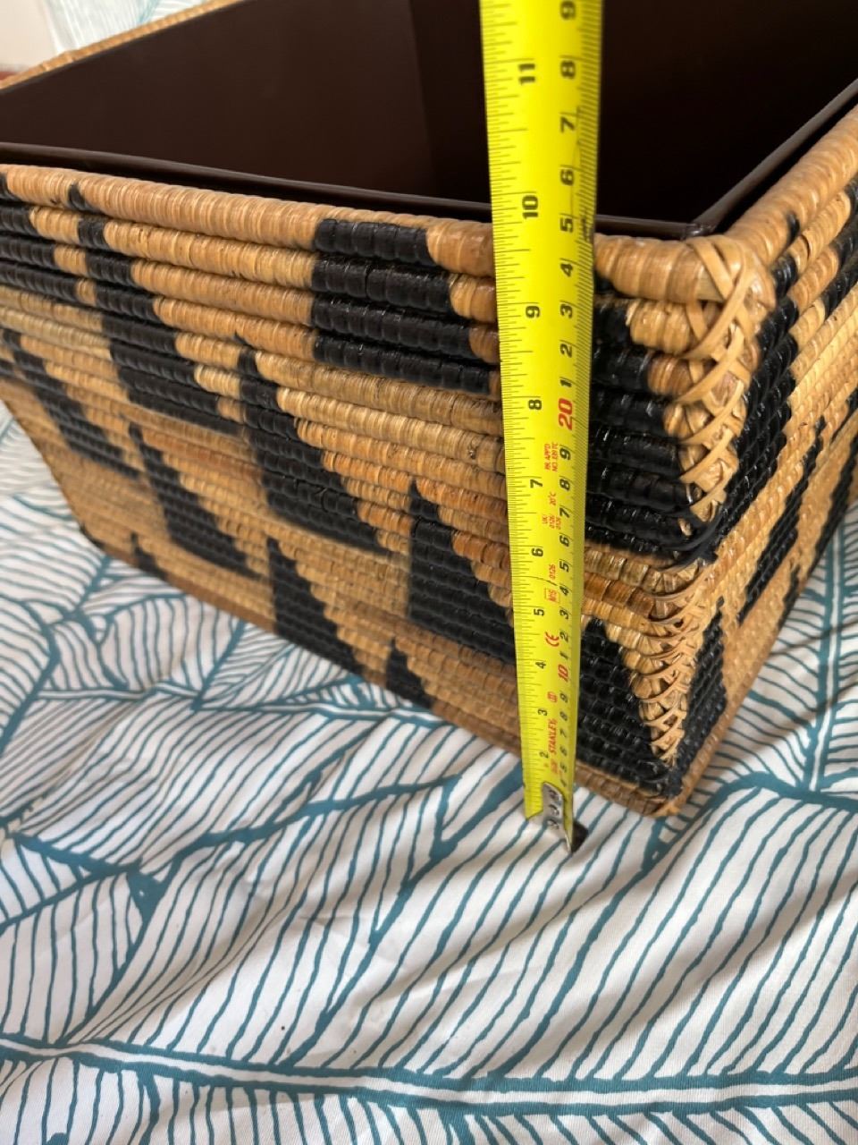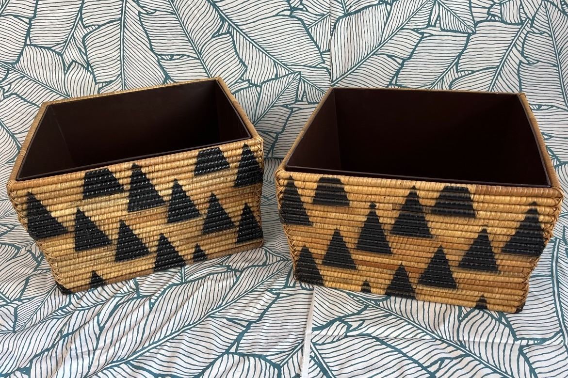 Qty 2 New Natural Woven Baskets, Triangular Design by Pigeon & Poodle 16.5"x16.5"x9.75"H. These are new in the box.