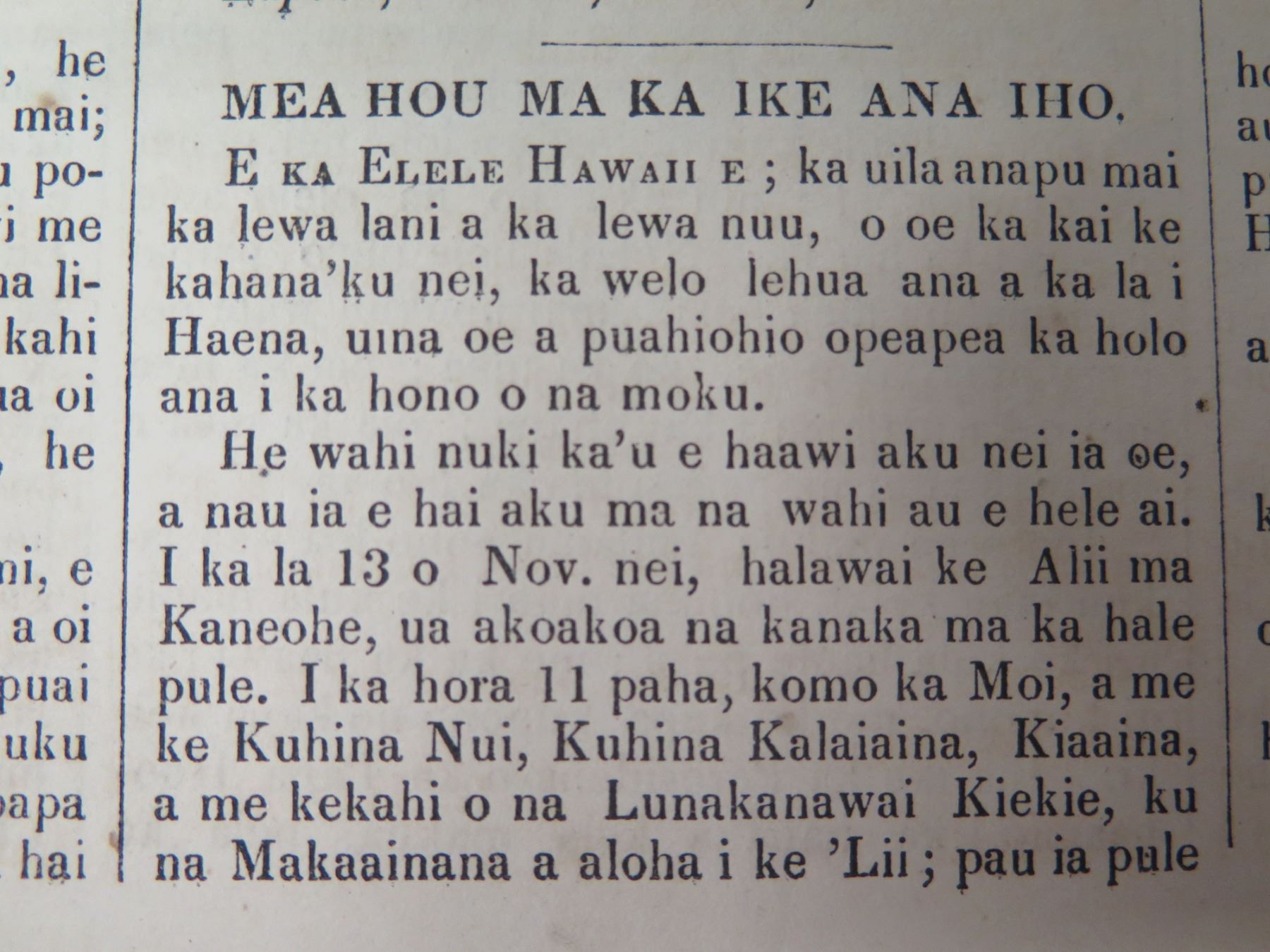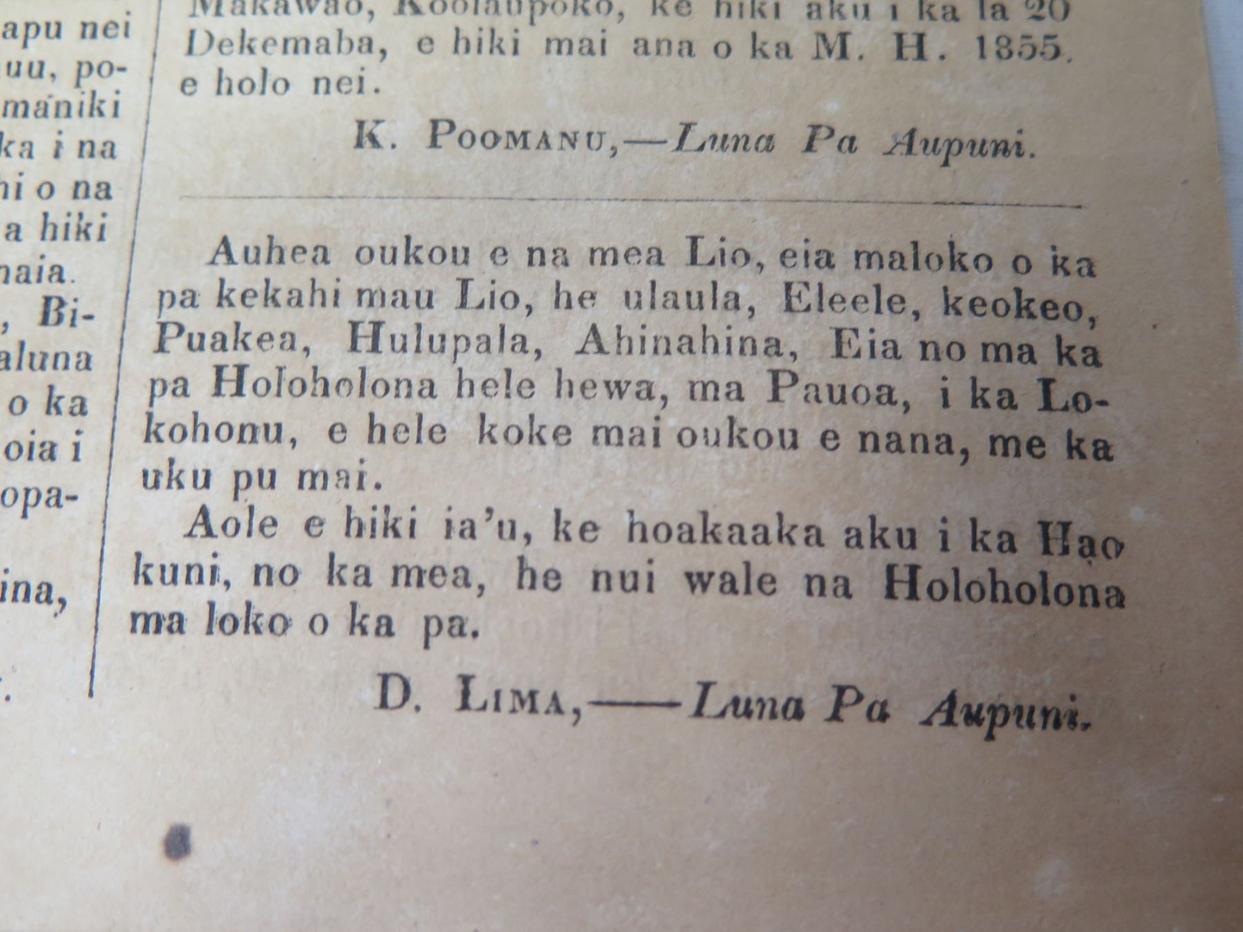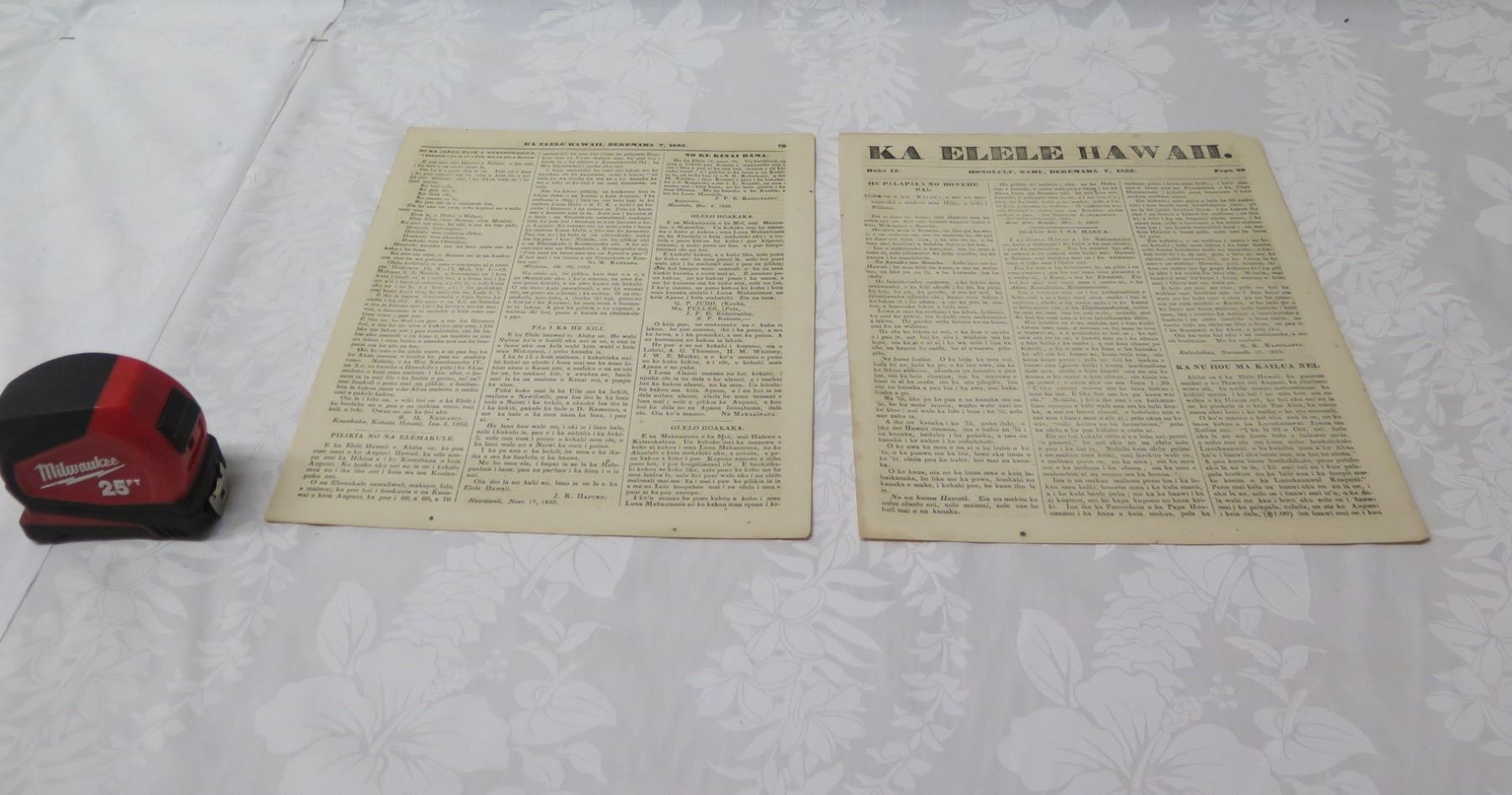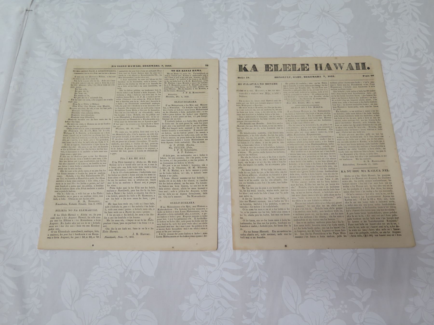 Qty 2 Newspaper Pages Ke Elele Hawaii, Honolulu, Oahu Dekemara 7, 1855