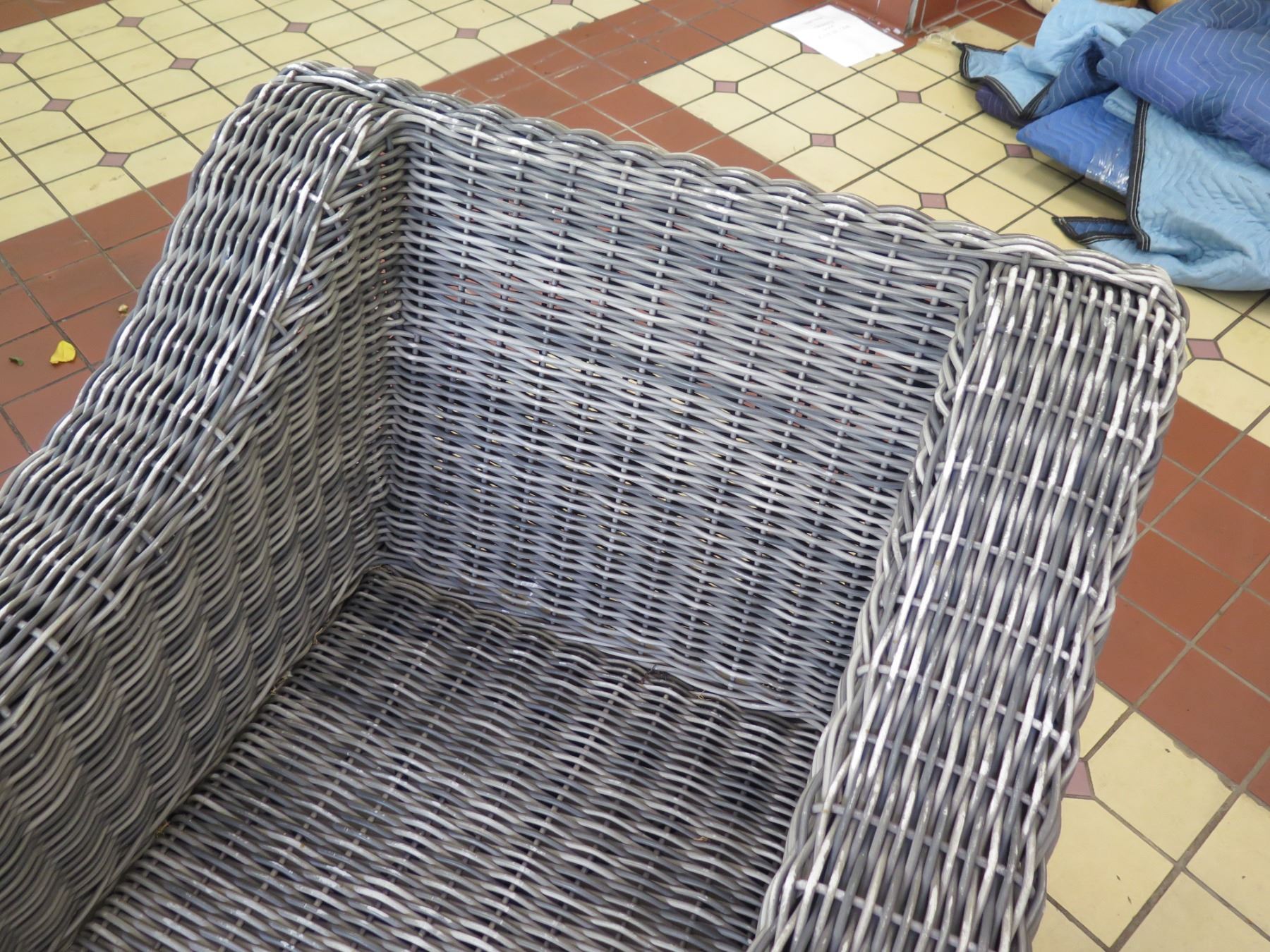 Qty 2 Oversized Synthetic Woven Chairs w/ White Cushion Seats 42" x 38" x 30"H