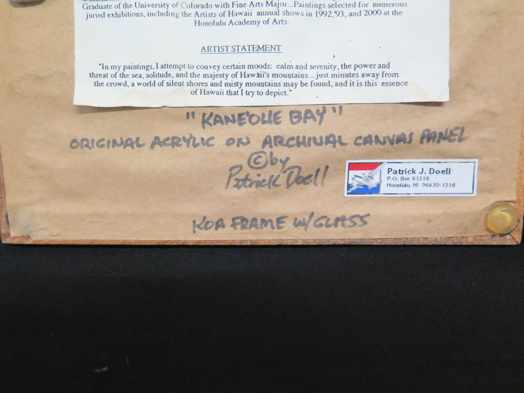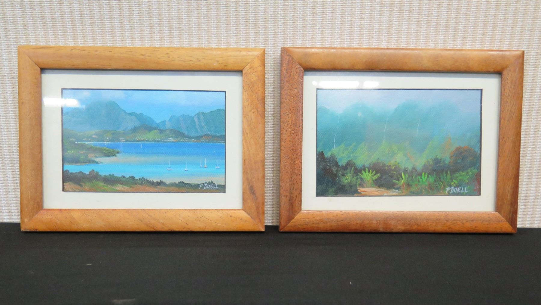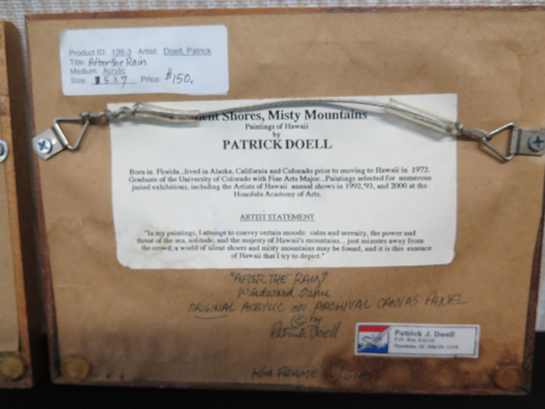 Qty 2 Paintings on Canvas, Oceanscapes by Artist Patrick Dowell, Koa Wood Framed 8" x 6.5"