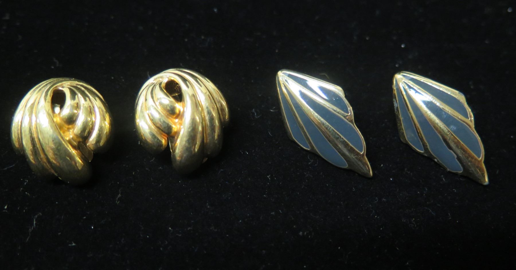 Qty 2 Pair Earrings: Clip-On Marked Chr. Dior Germany & Pierced Trifari