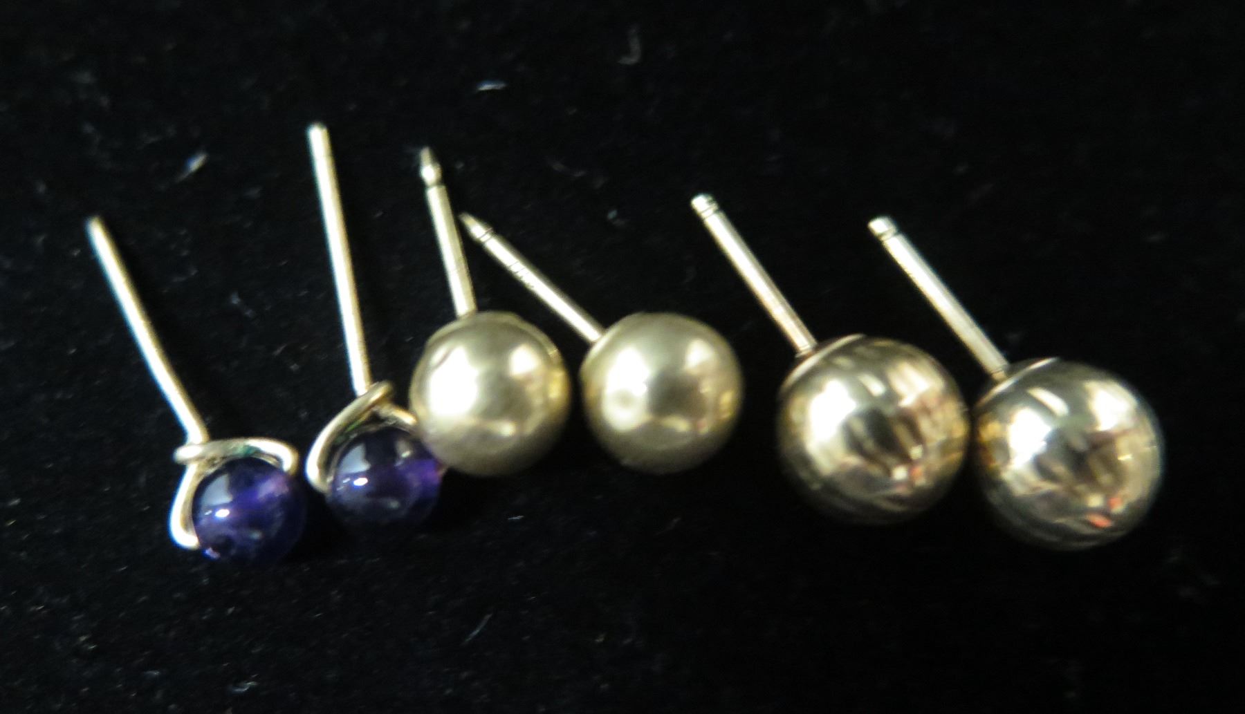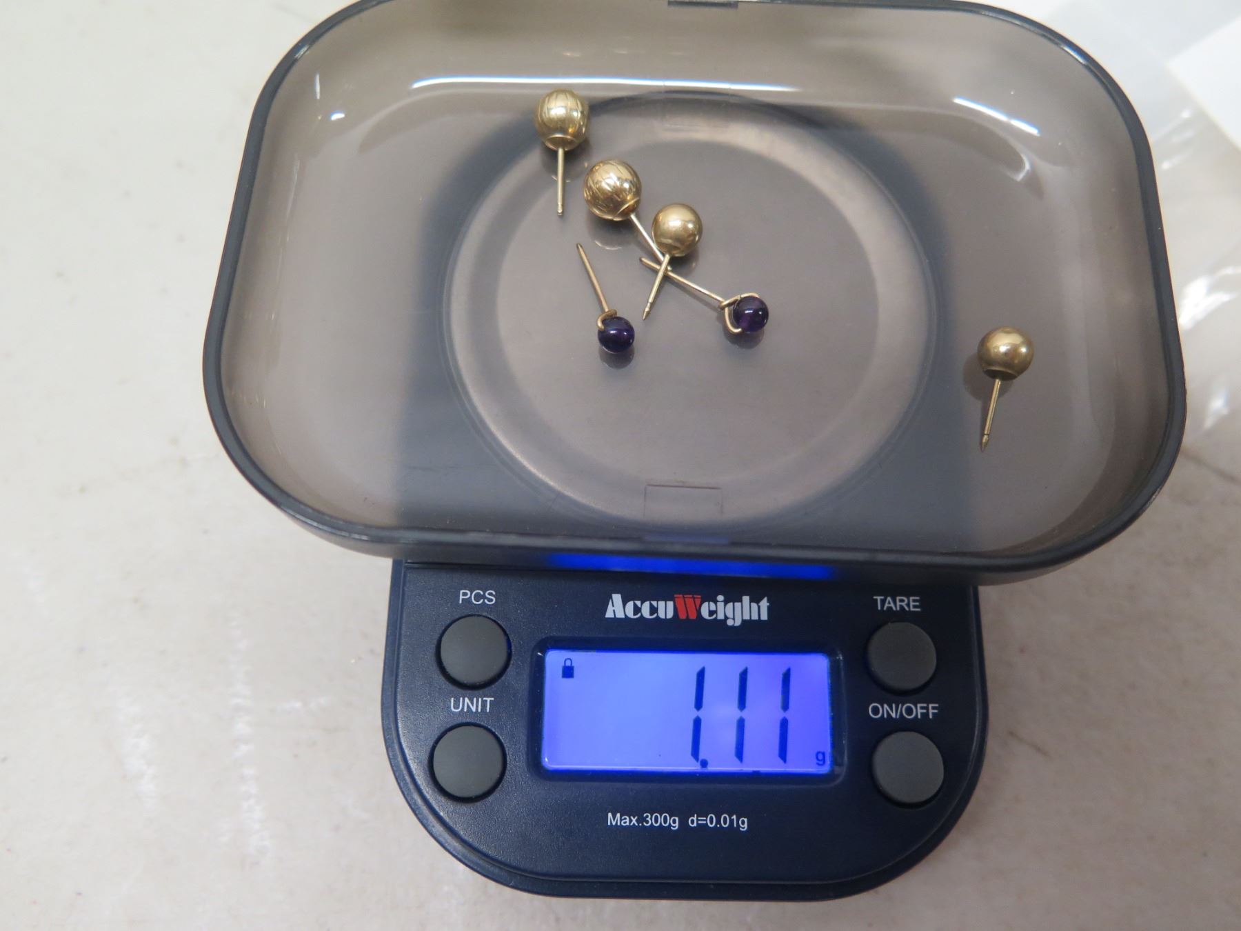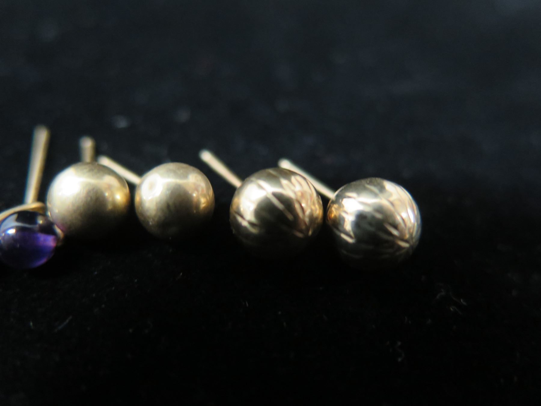Qty 2 Pair Gold 14K Ball Pierced Earrings & 10K Purple Studs 1.11g