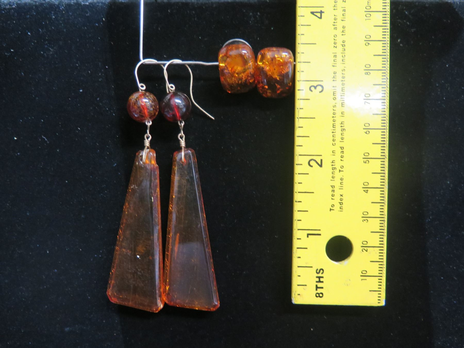 Qty 2 Pair Stone Bead Earrings: Pierced Hook Dangle 3"L & Stud 0.75"L