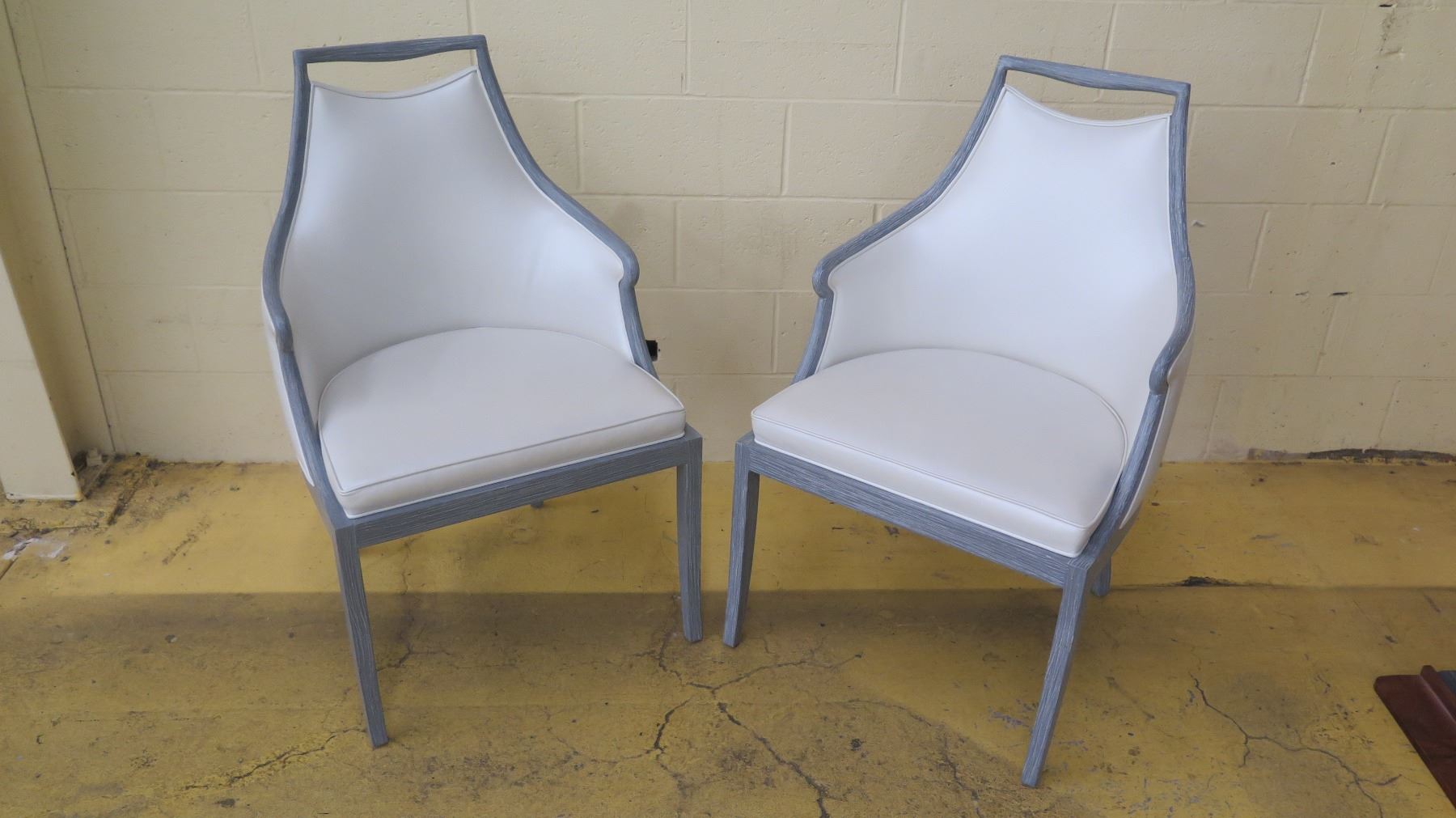 Qty 2 Pale Gray Upholstered Chairs, Gray Wood Frame