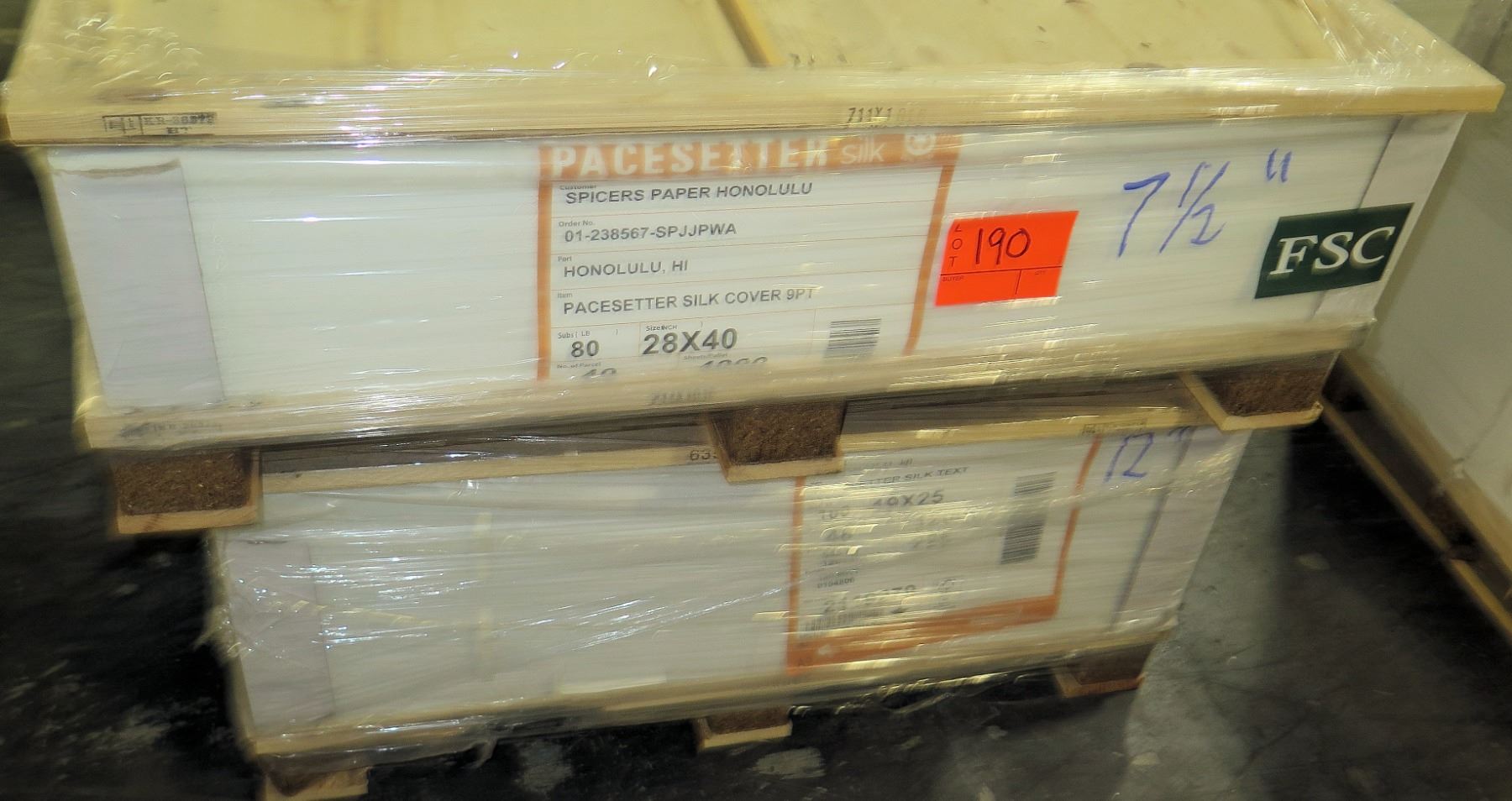 Qty 2 Pallets Pacesetter Silk Cover 28 x 40 & Silk Text 19 x 35 Paper