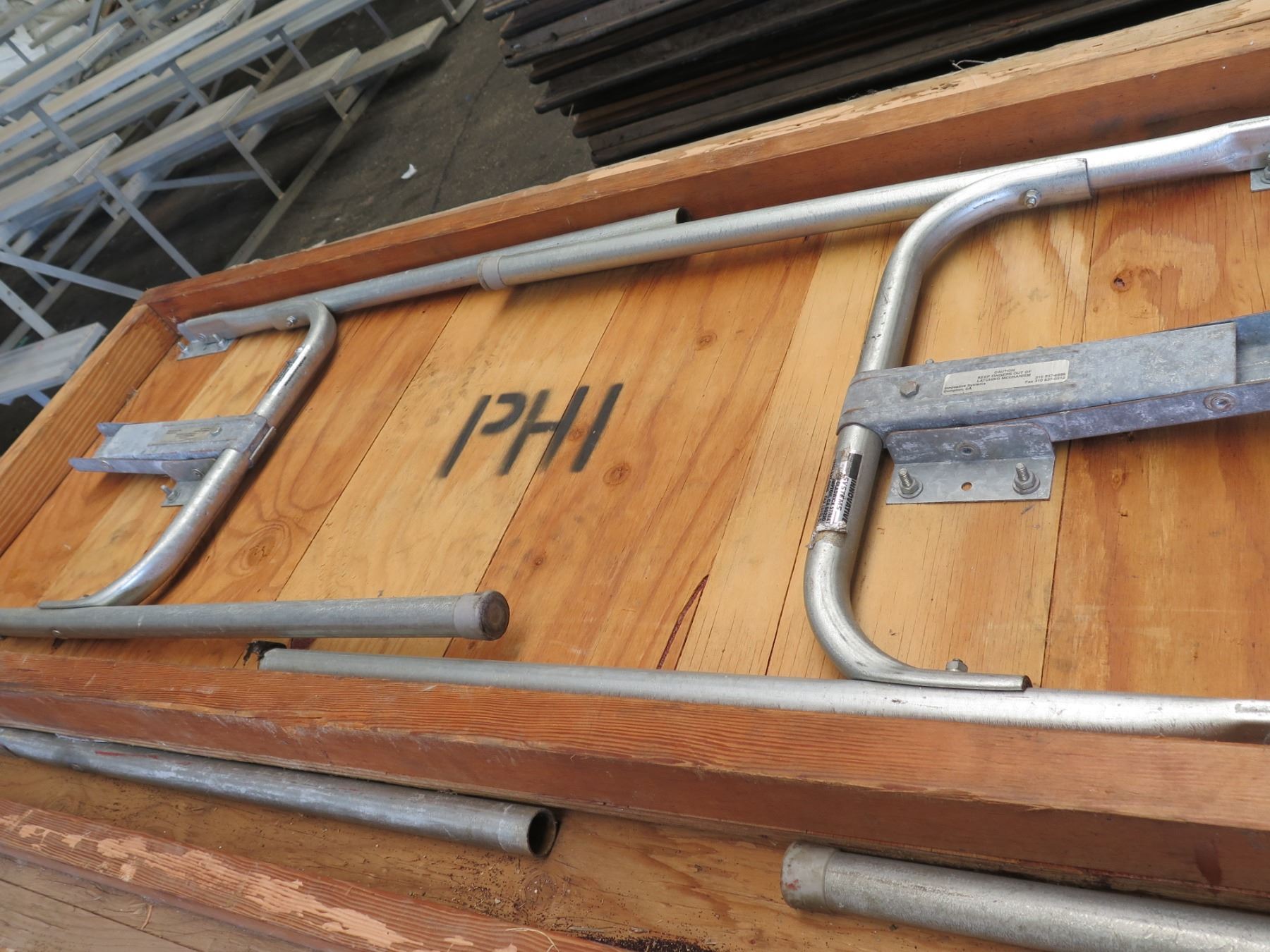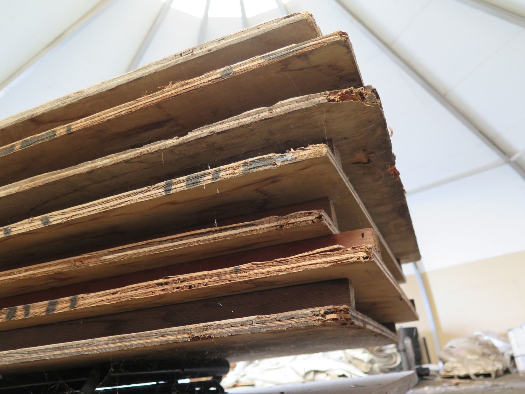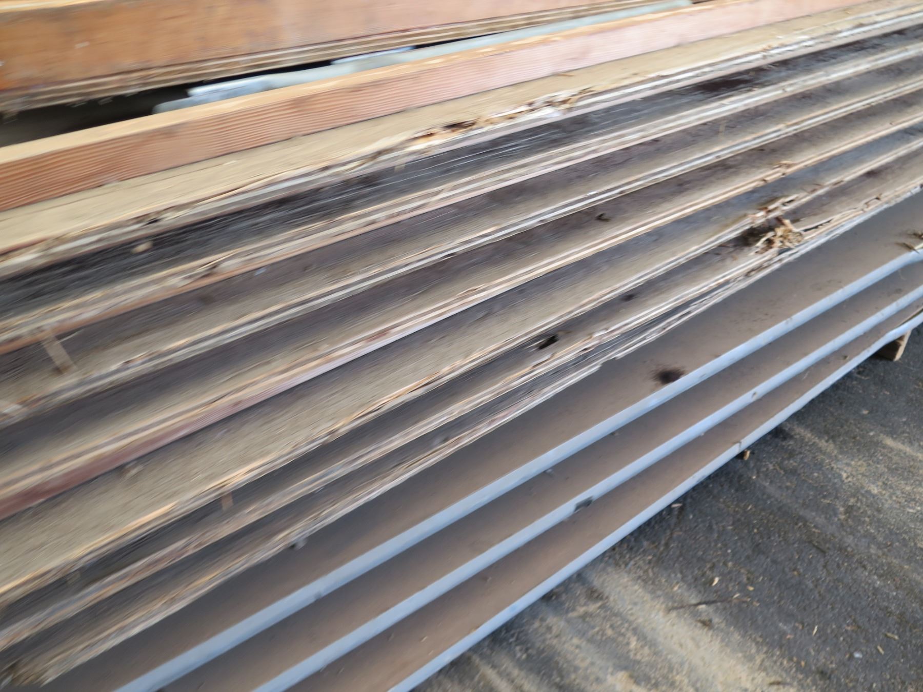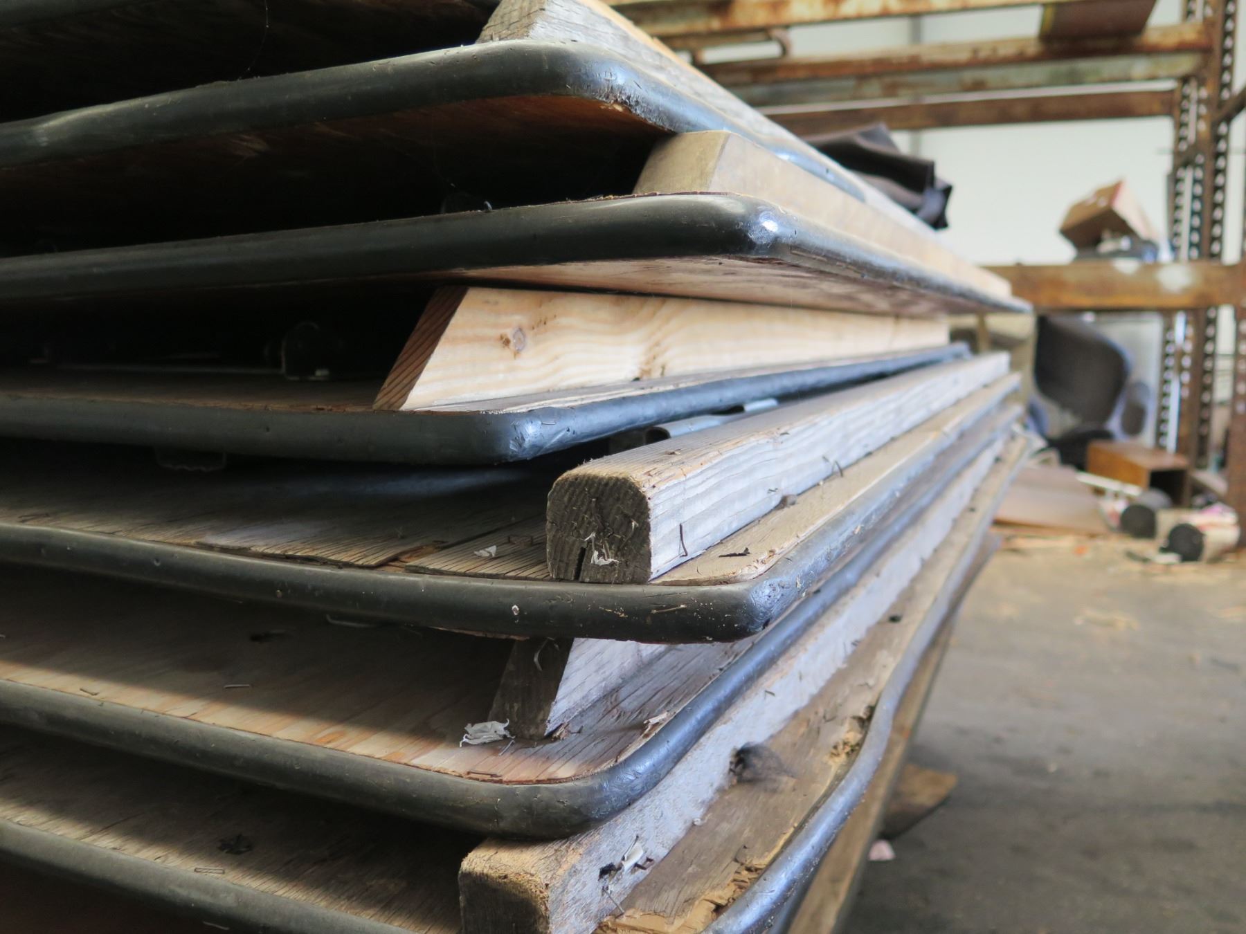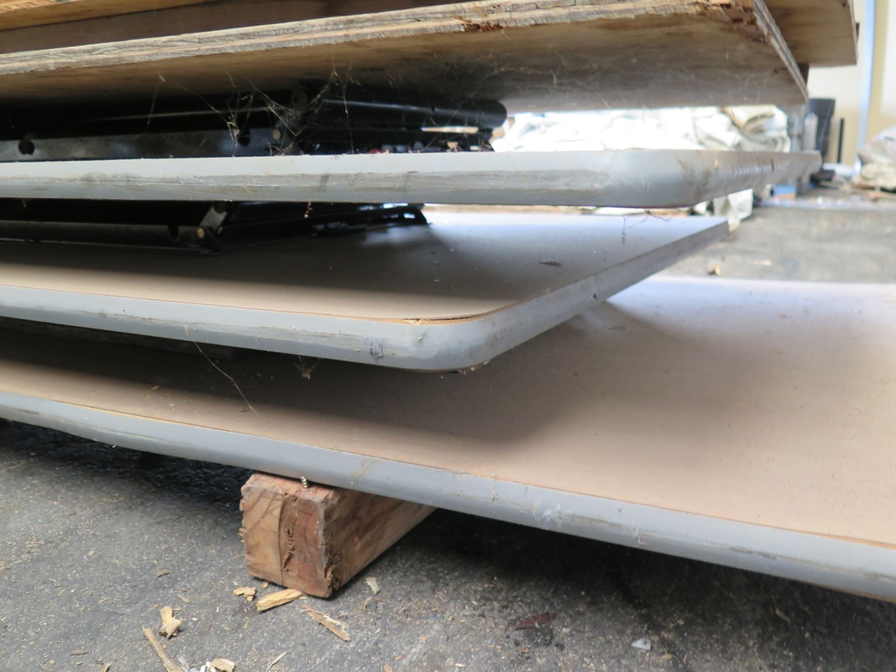 Qty 2 Pallets Wooden Rectangular Folding Tables w/ Metal Legs. May have termites and termite damage.