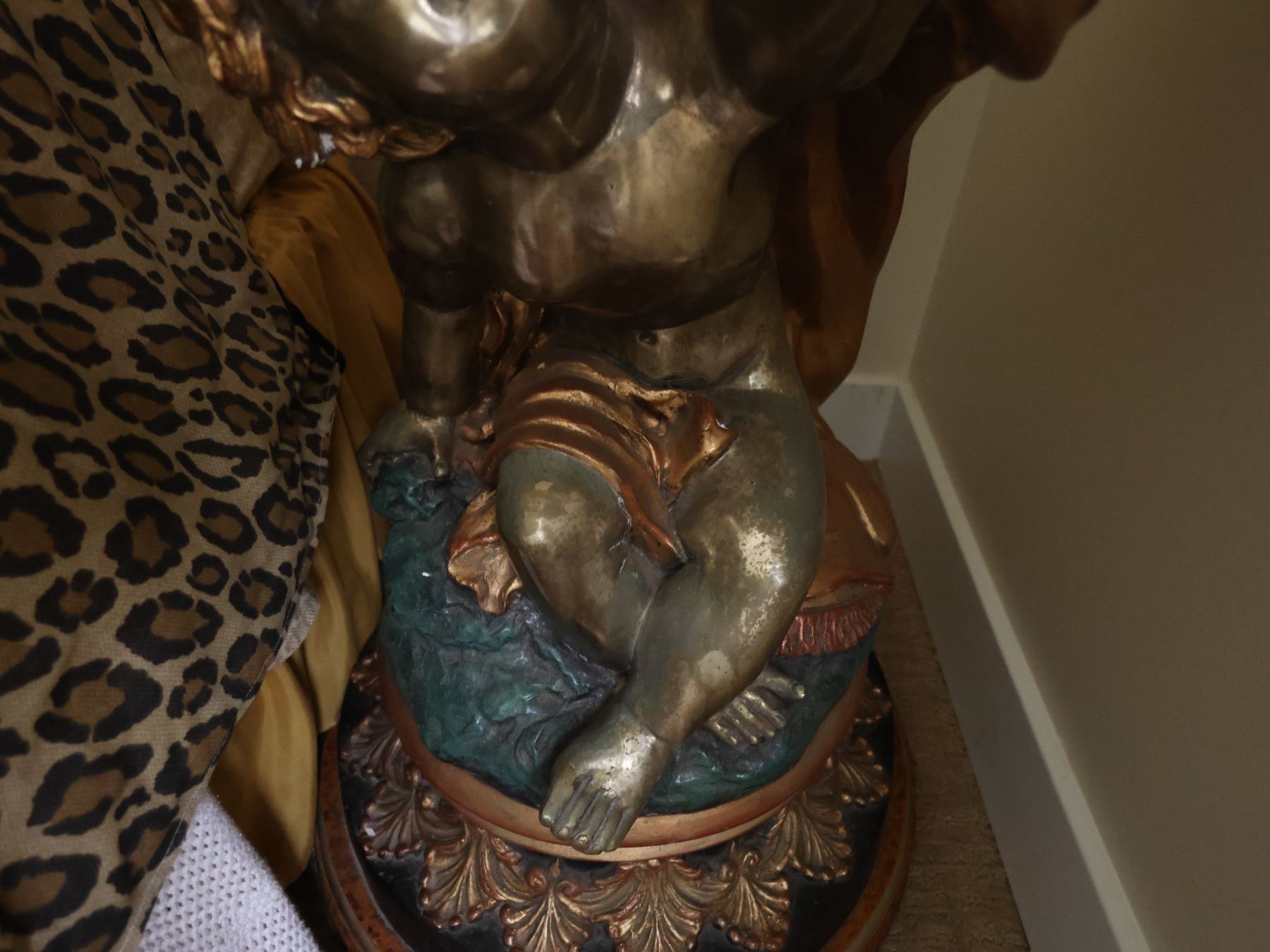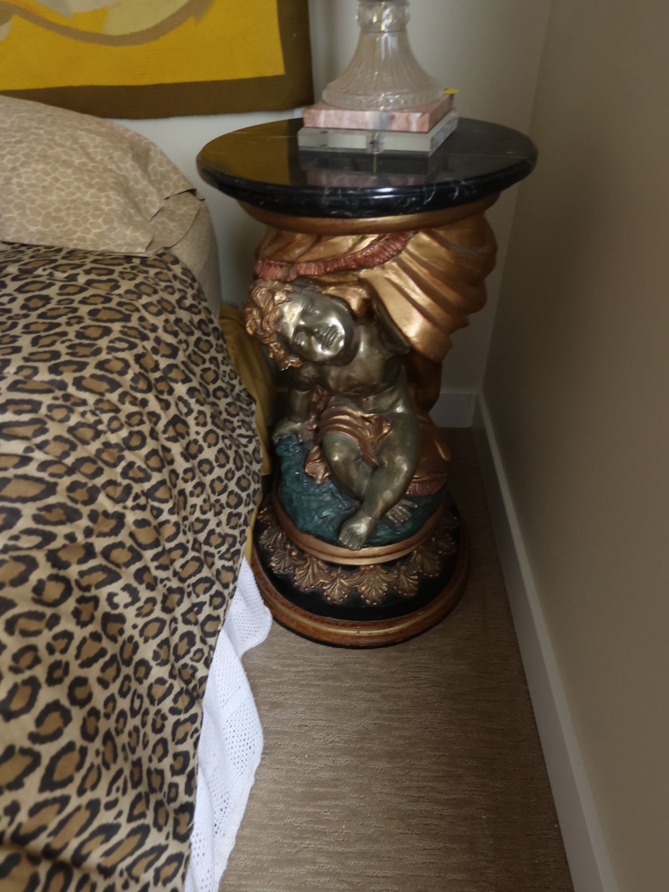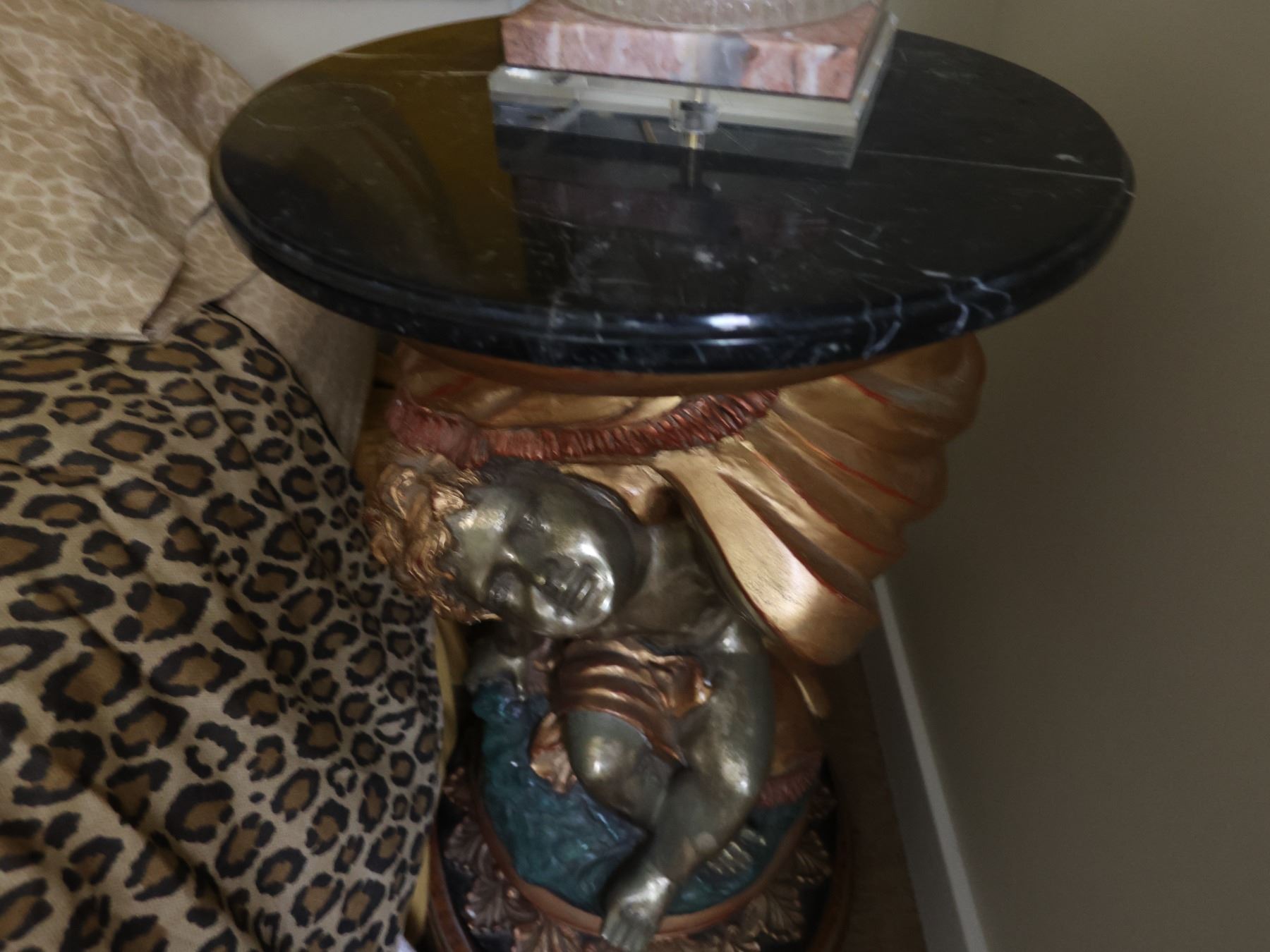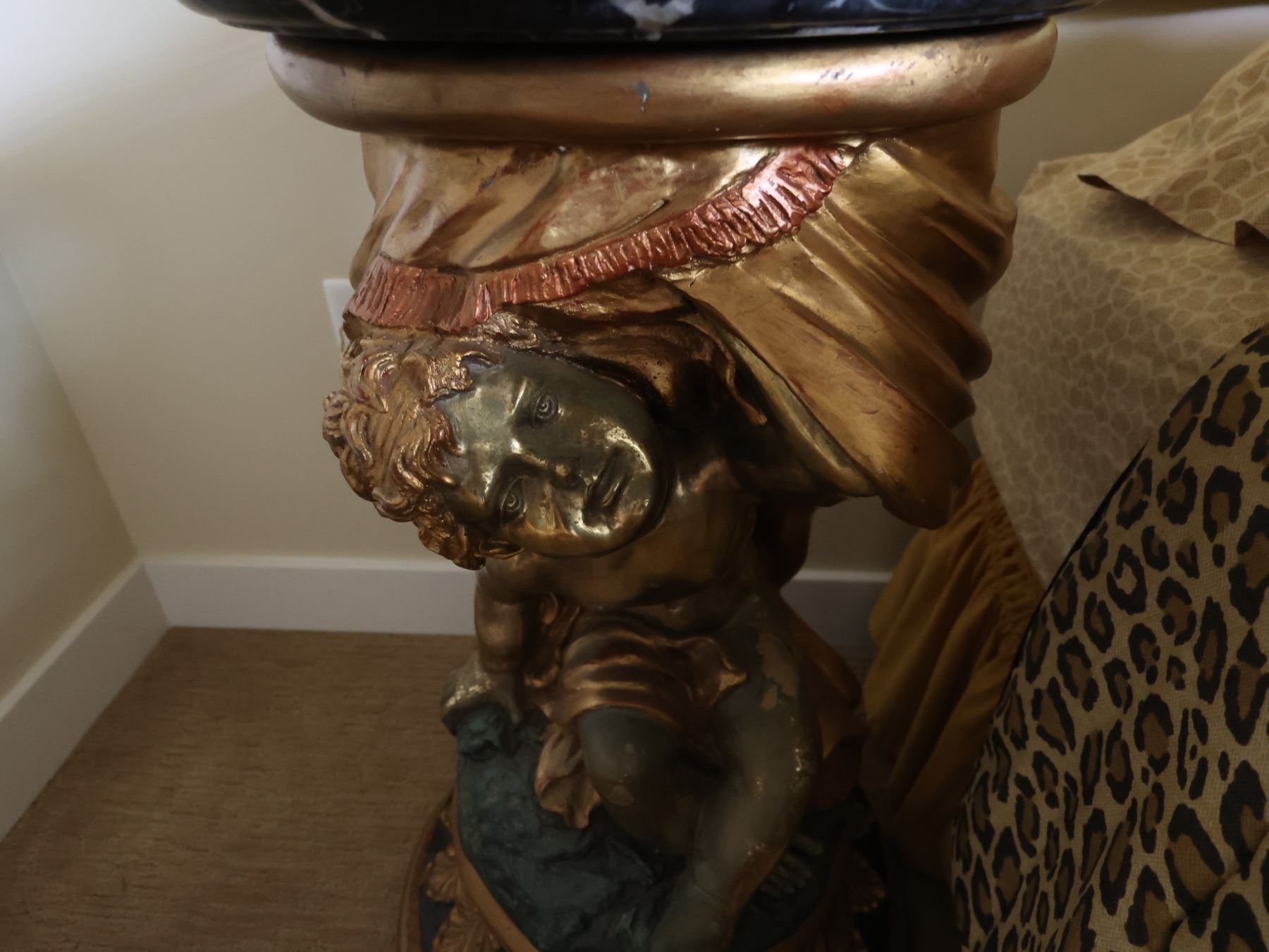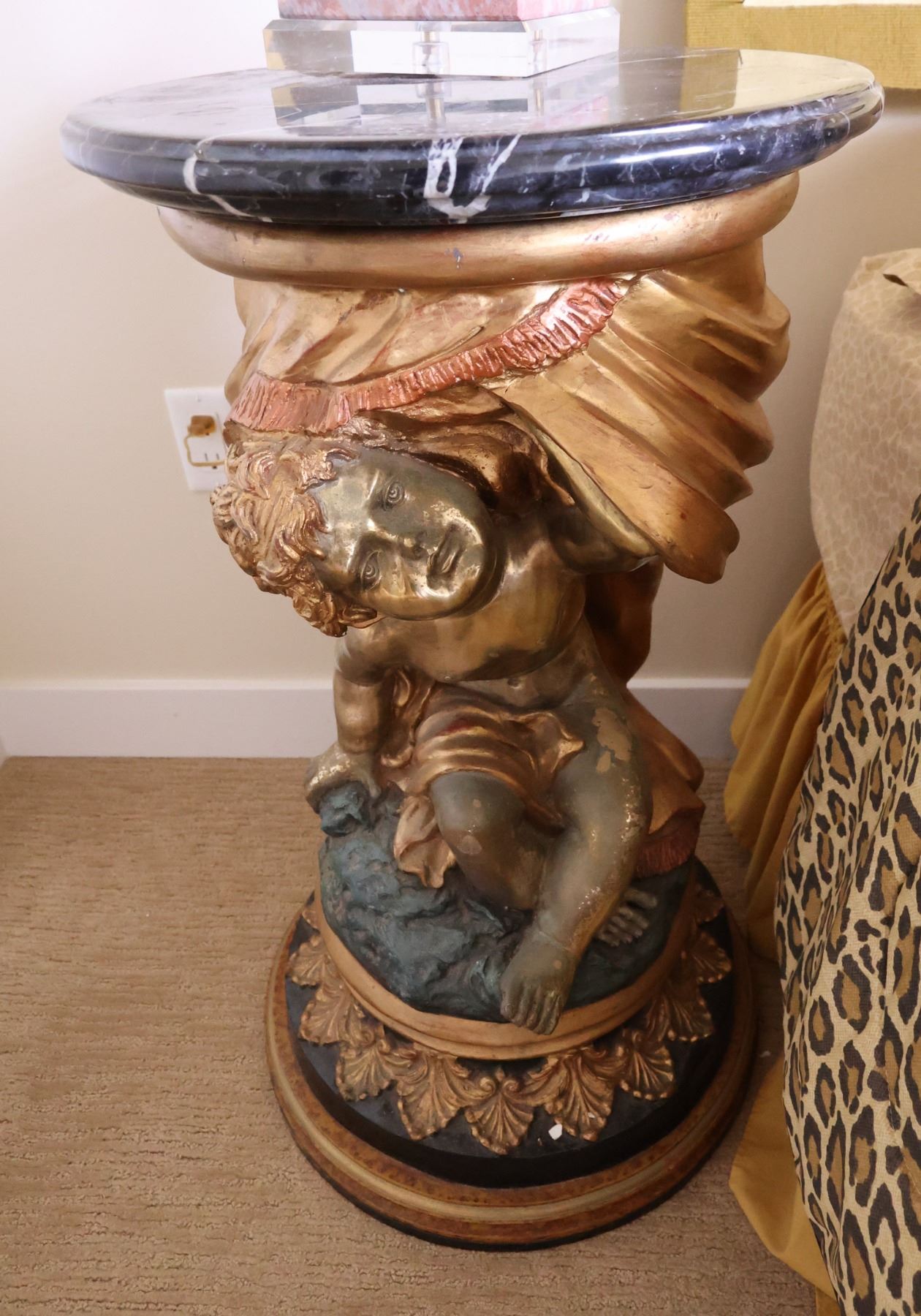 Qty 2 Pedestal Display Stands w/ Cherub Bases & Marble Tops 16" x 32"
