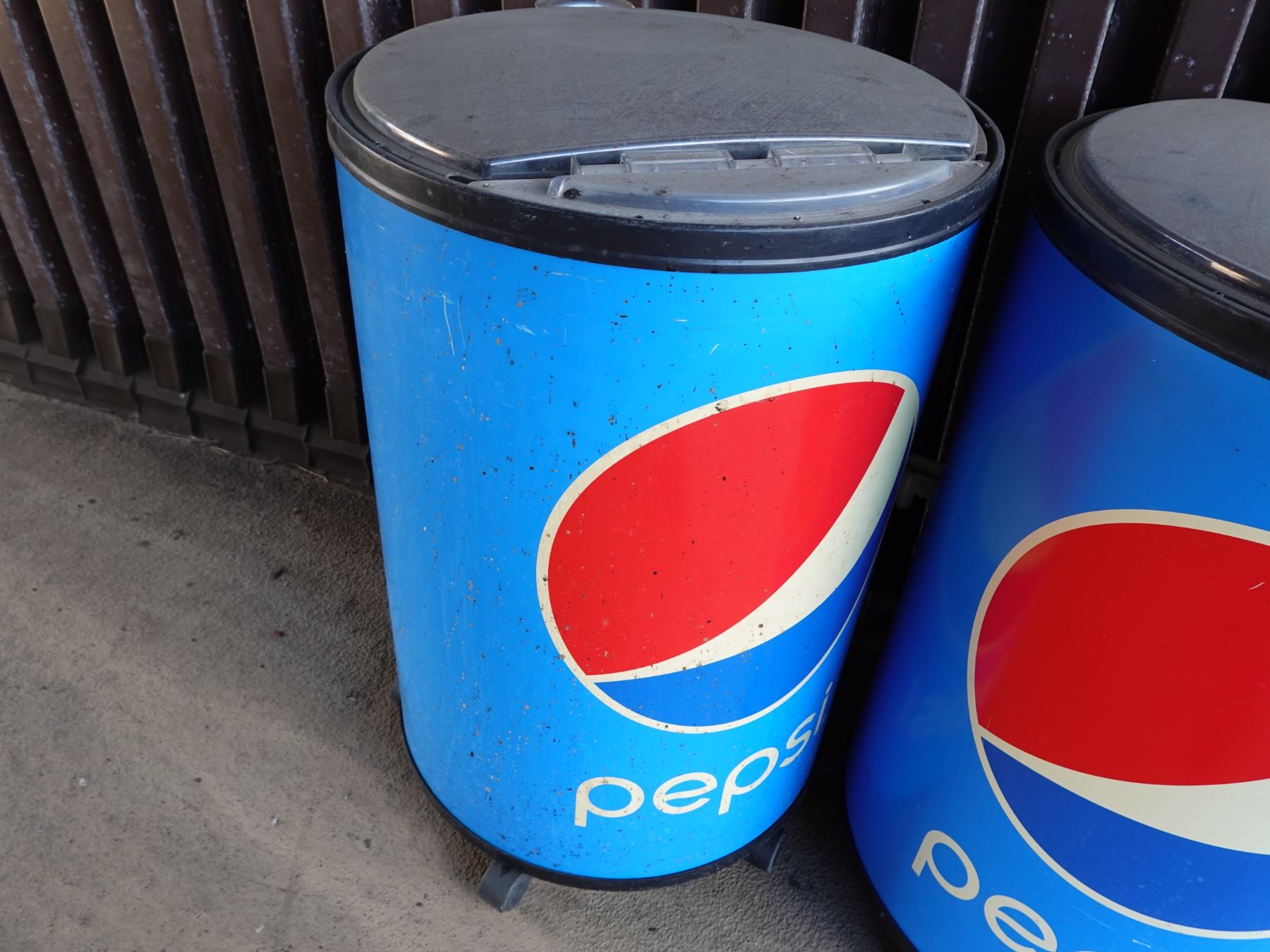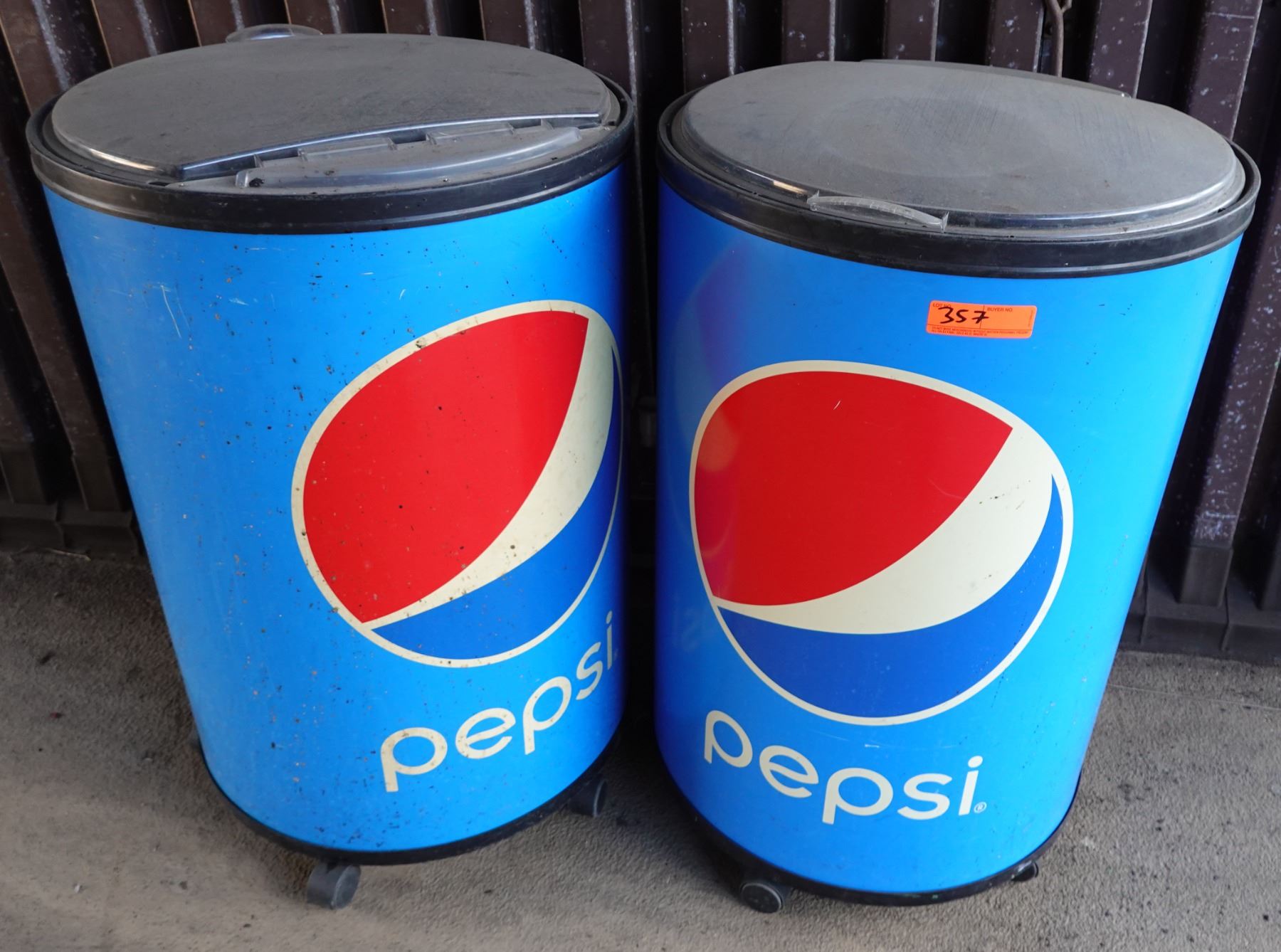 Qty 2 Pepsi Rolling Ice Barrel Beverage Coolers 22"Dia, 36"H.