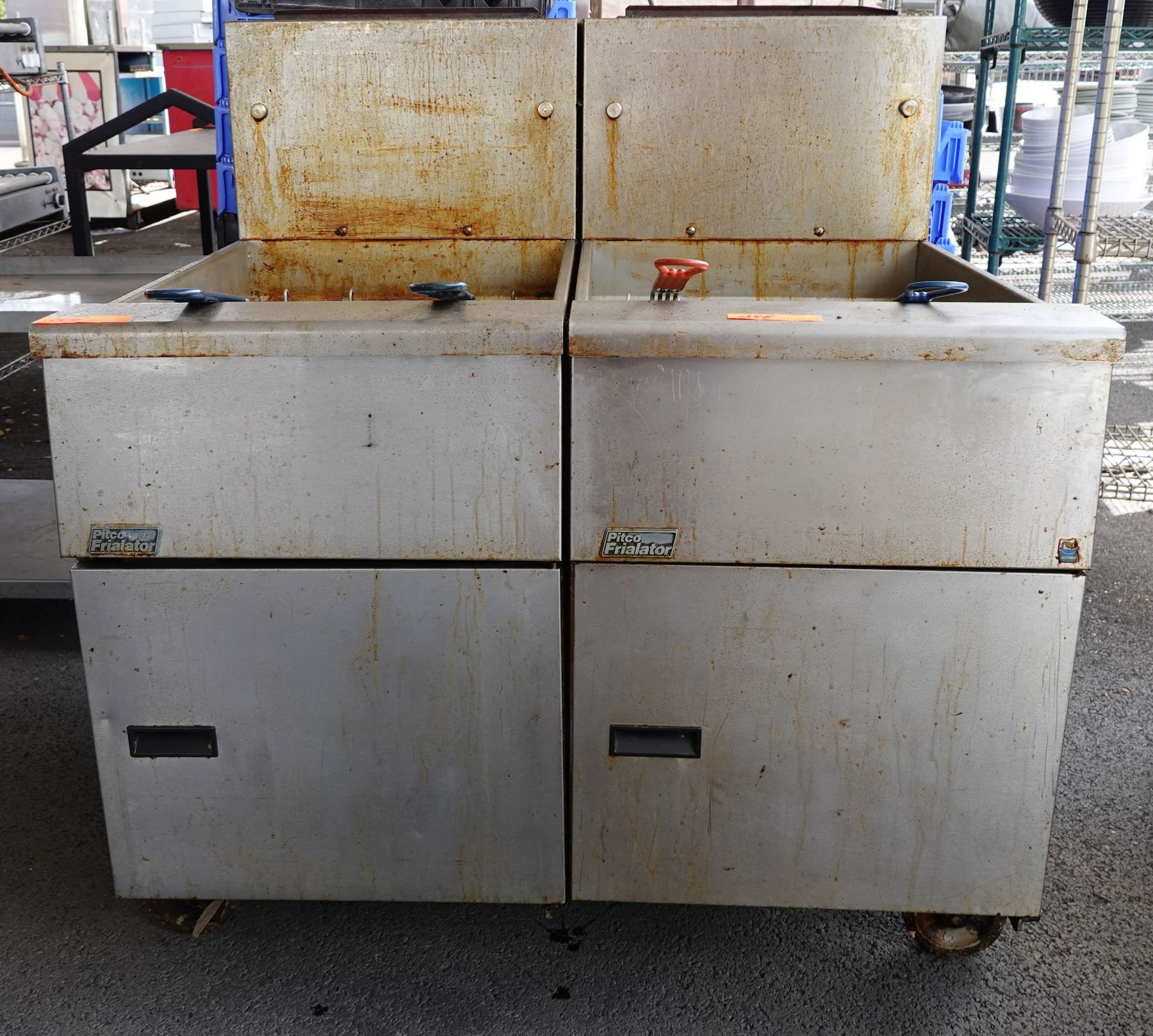 Qty 2 Pitco Frialator Commercial 2-Basket Deep Fryers.