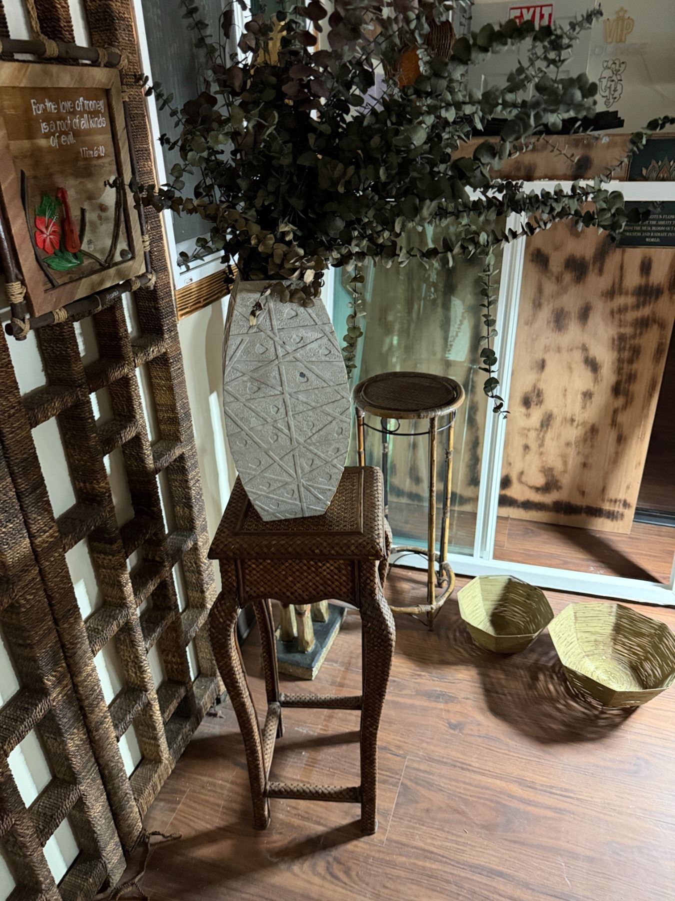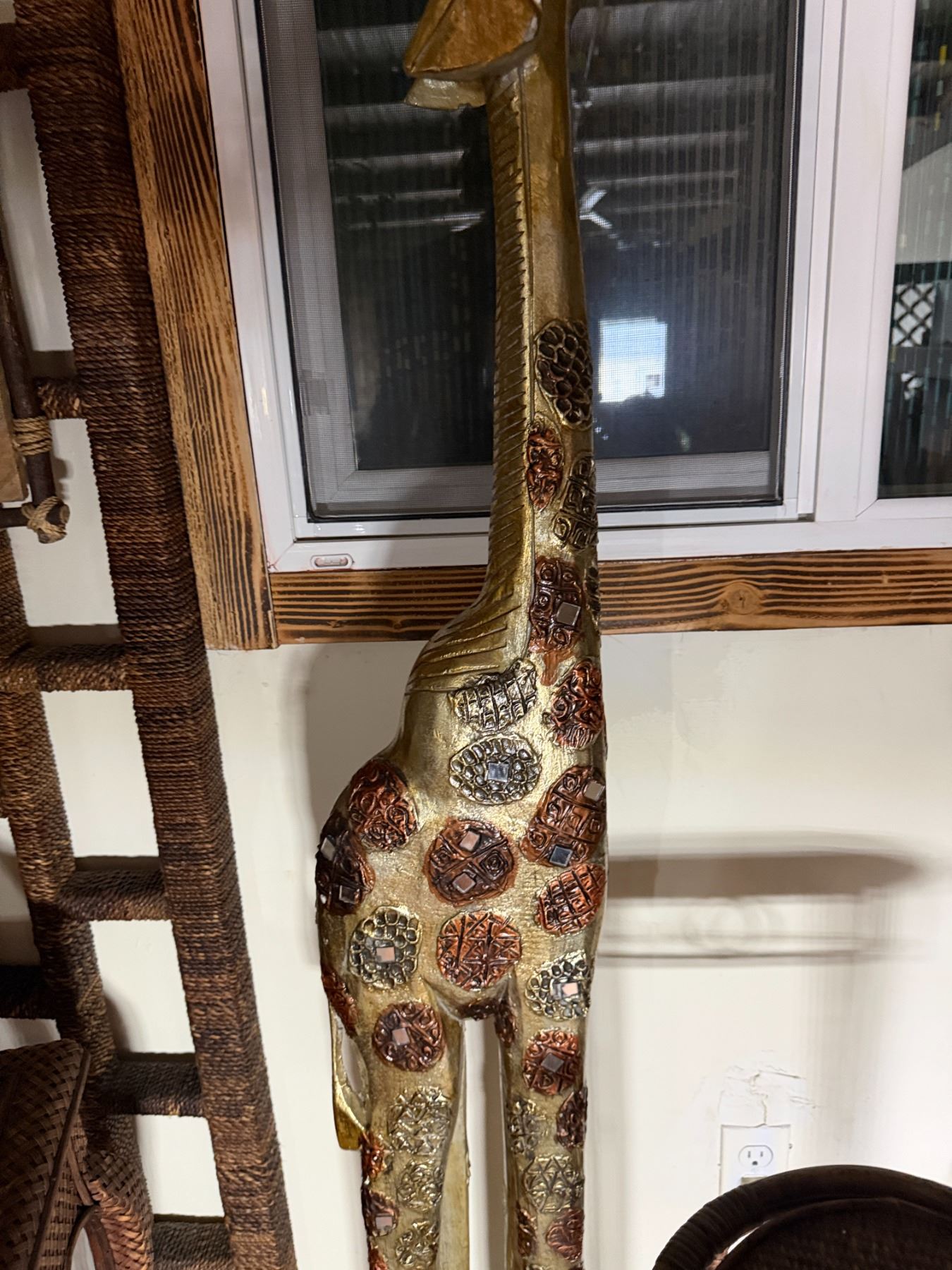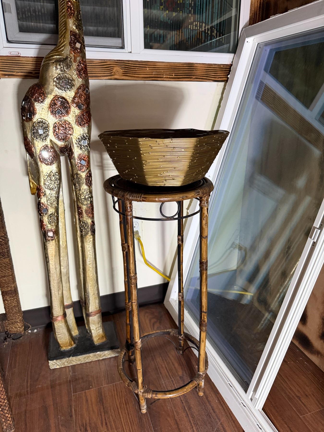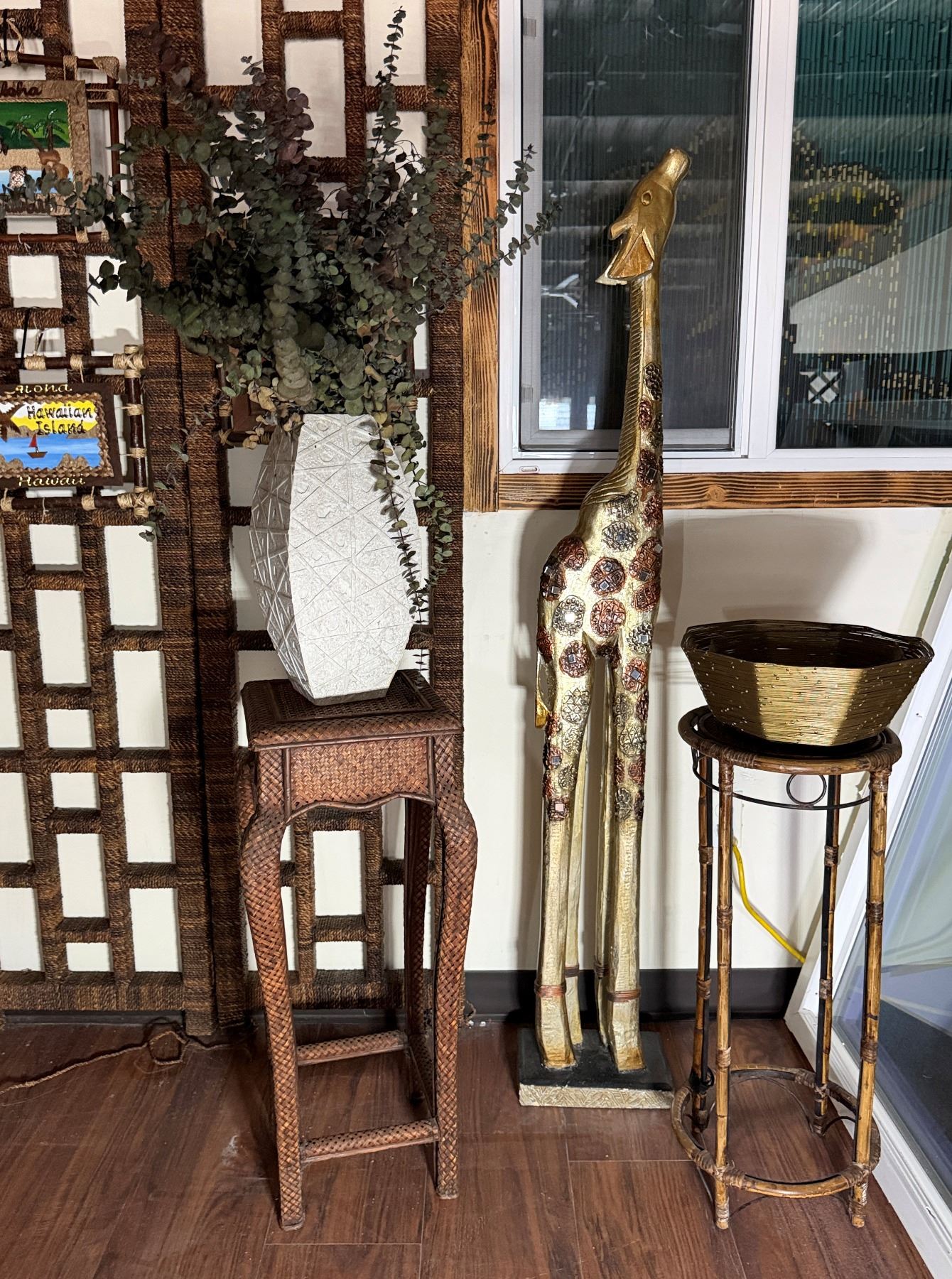Qty 2 Plant Stands, Artificial Potted Plant, Bowl & Giraffe Statue, Misc Sizes