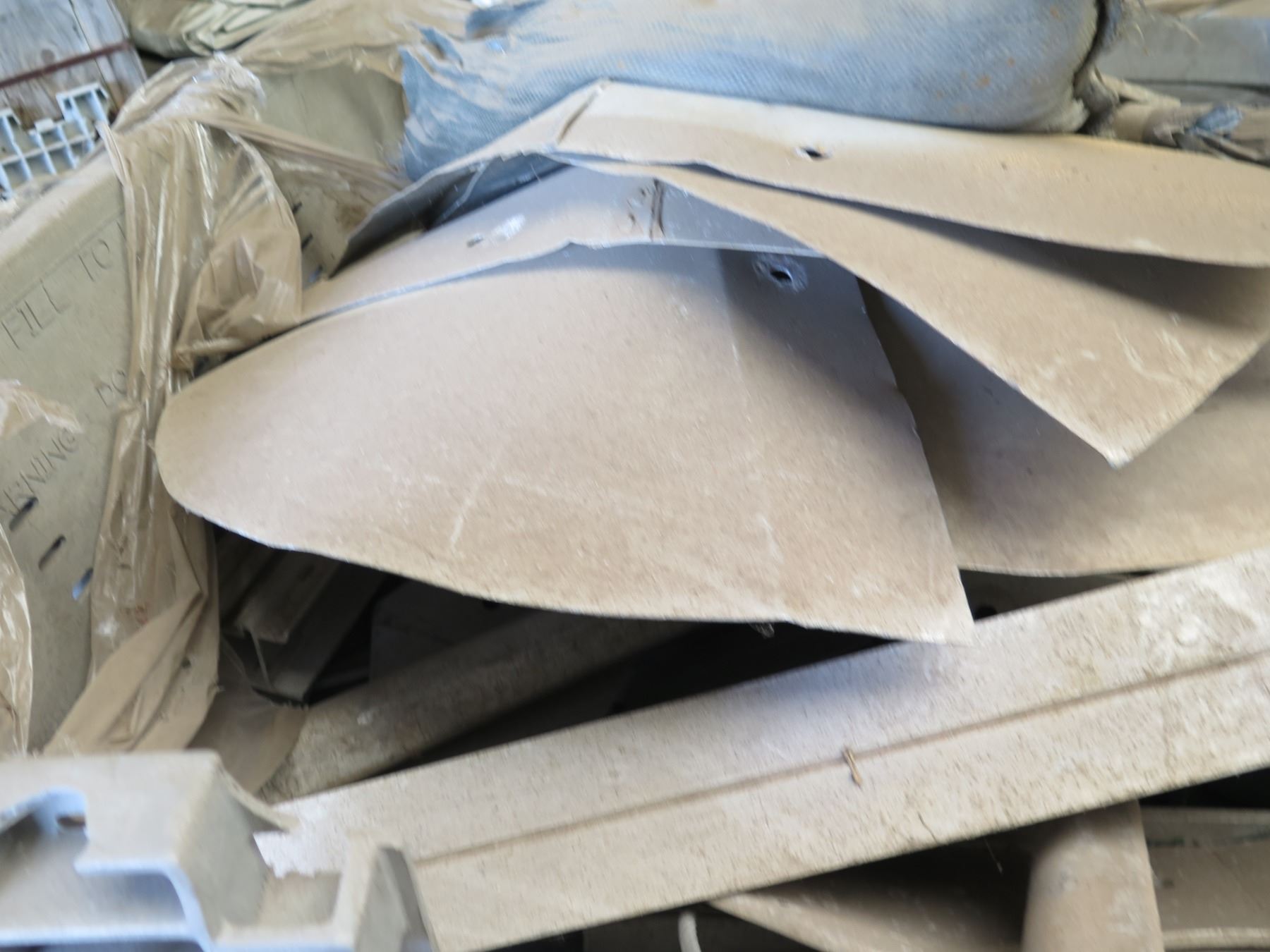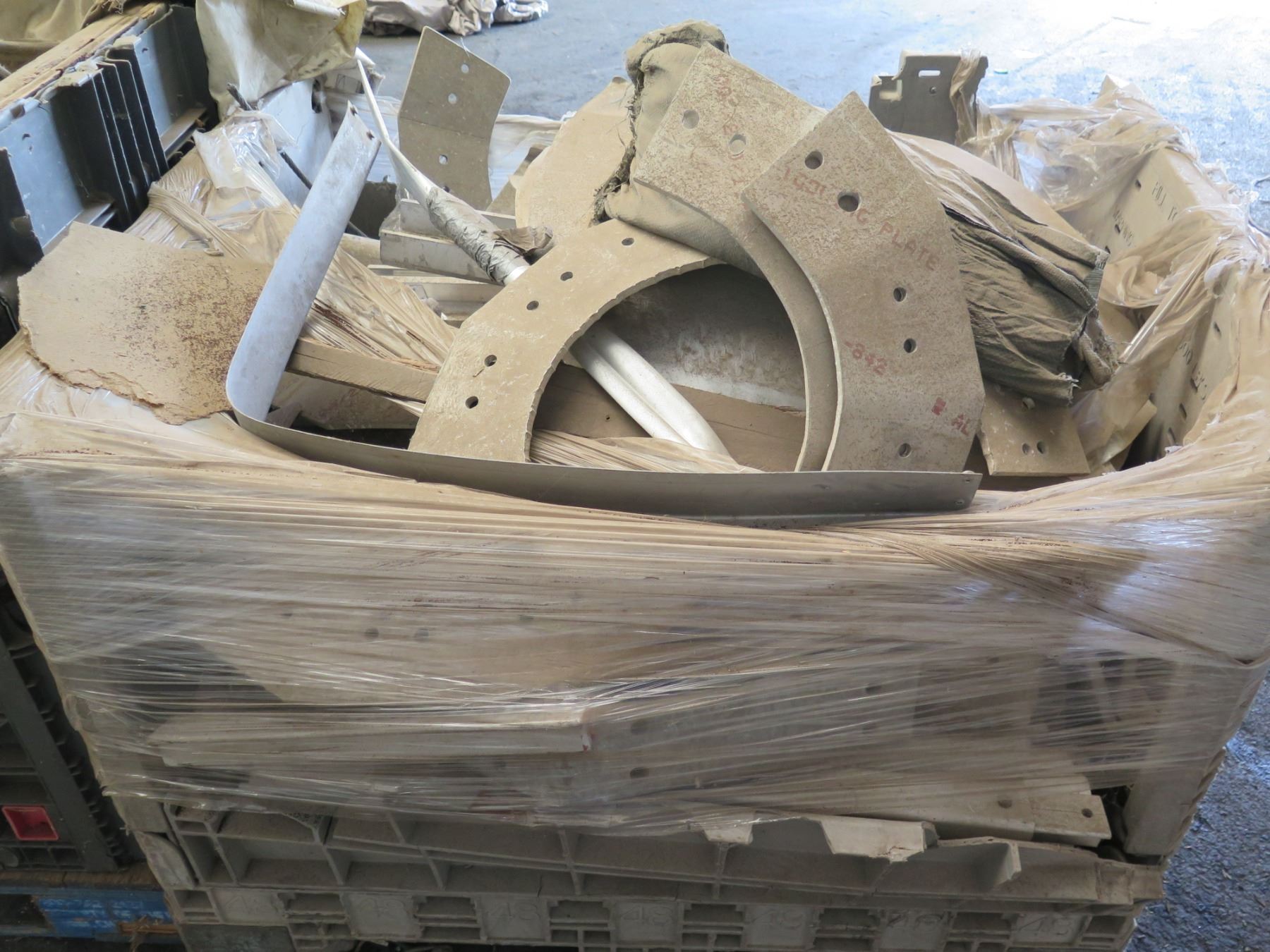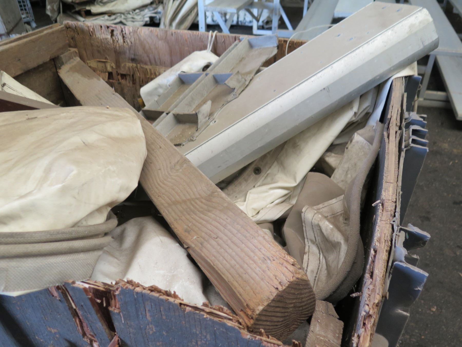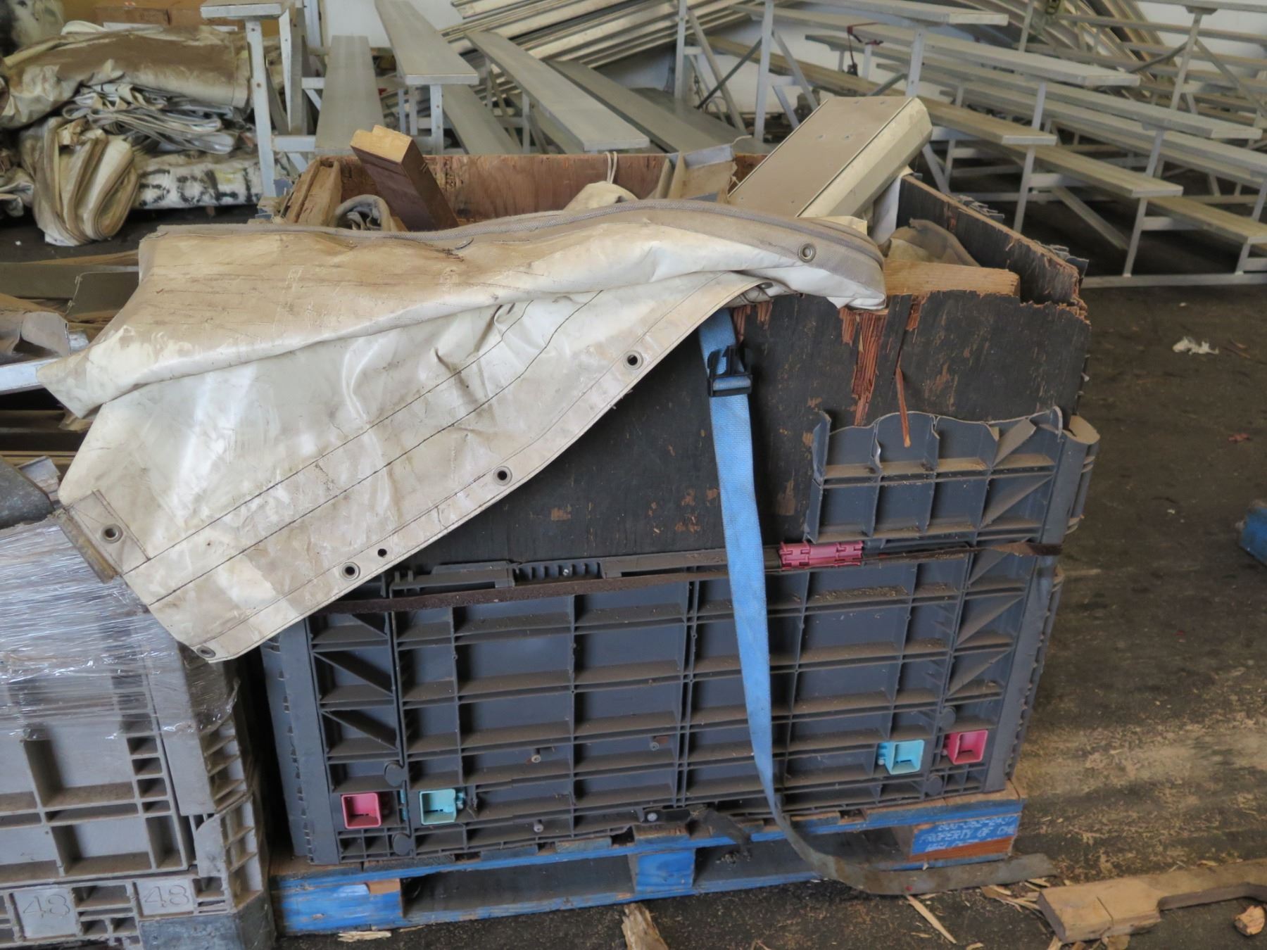 Qty 2 Plastic Bins Curved Metal 1000 G Plates, Poles, Fittings, Tarps, etc