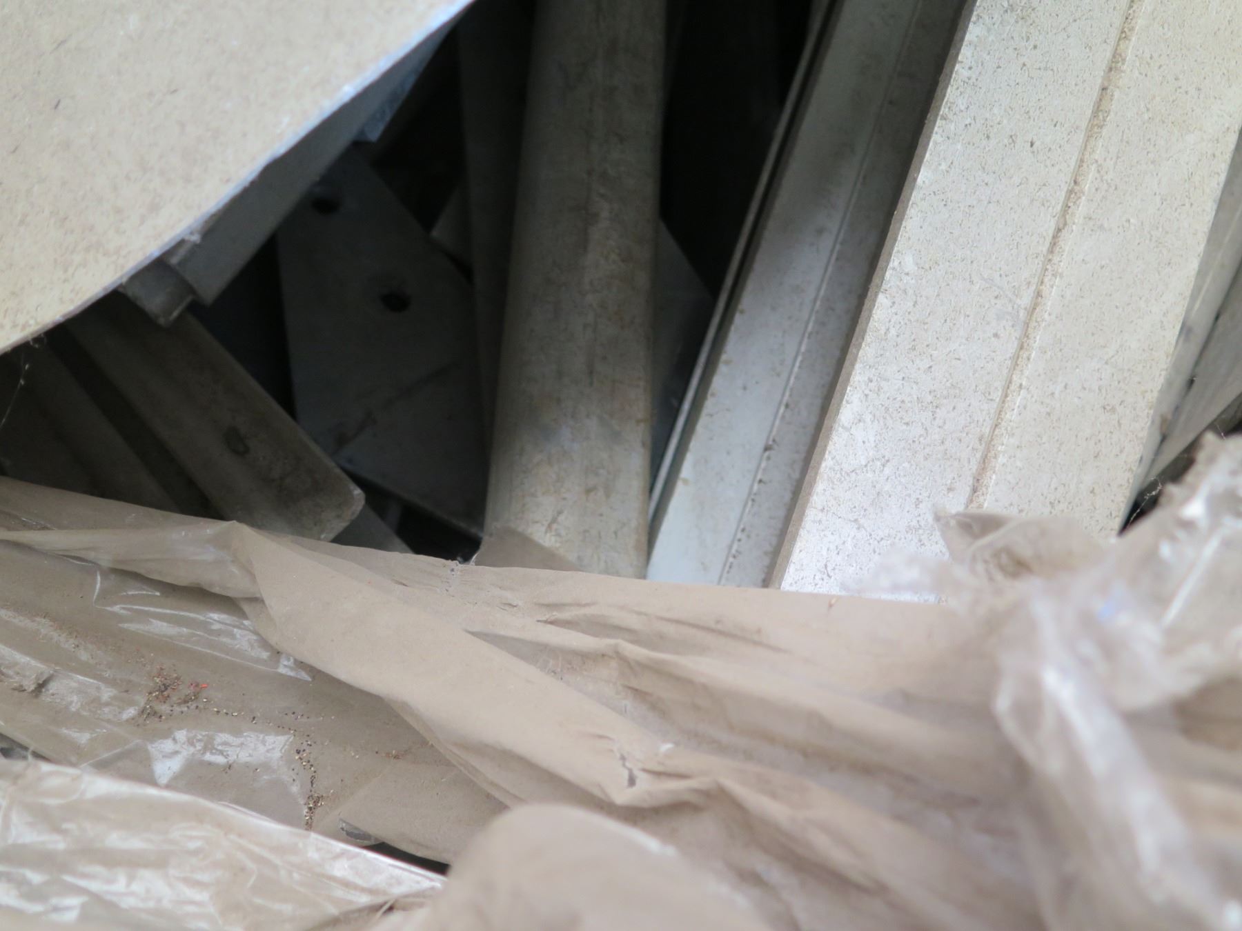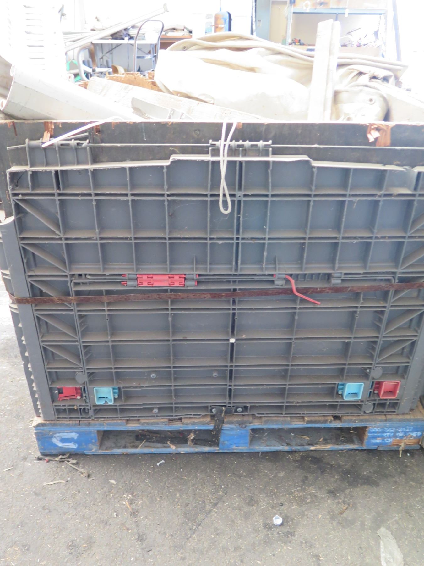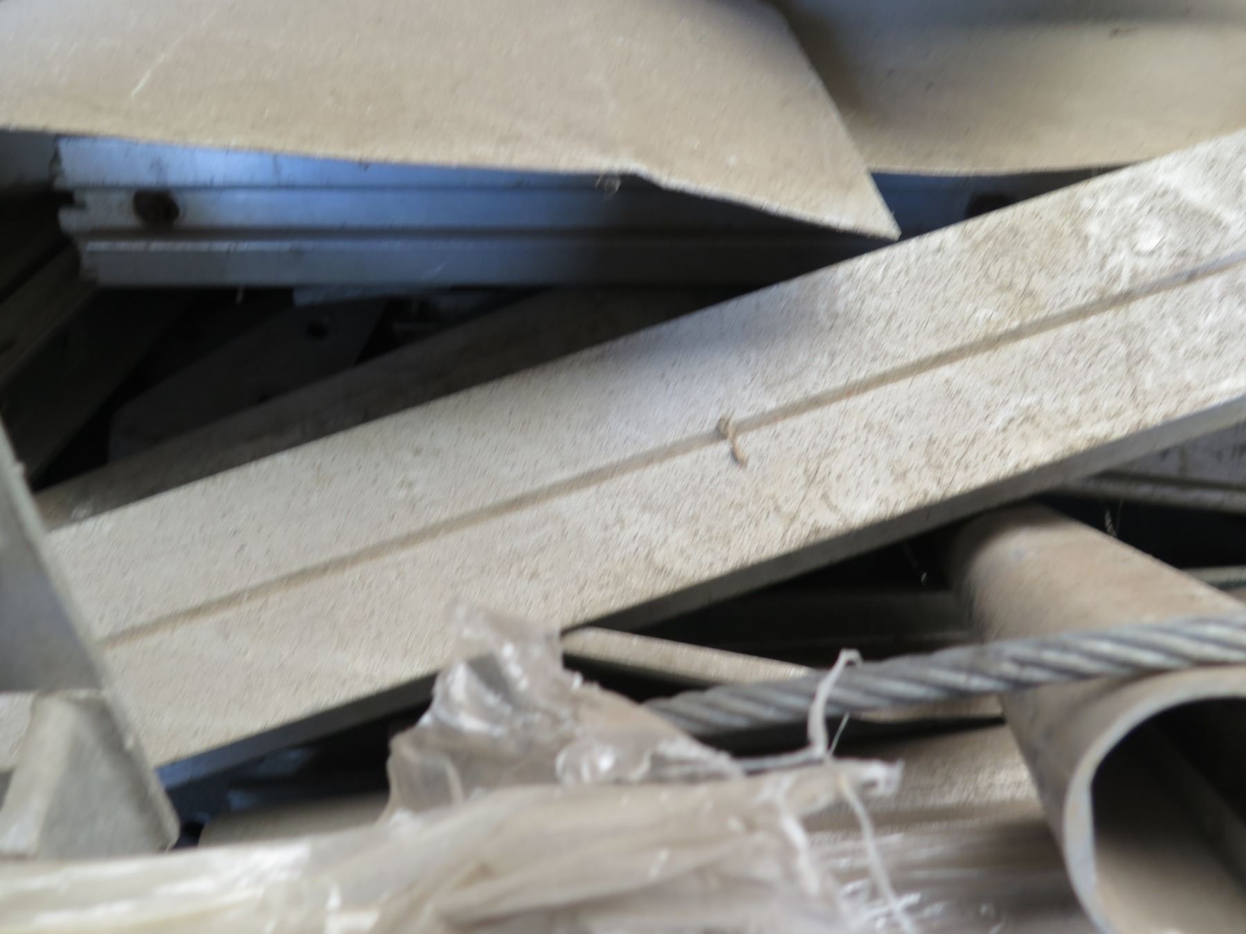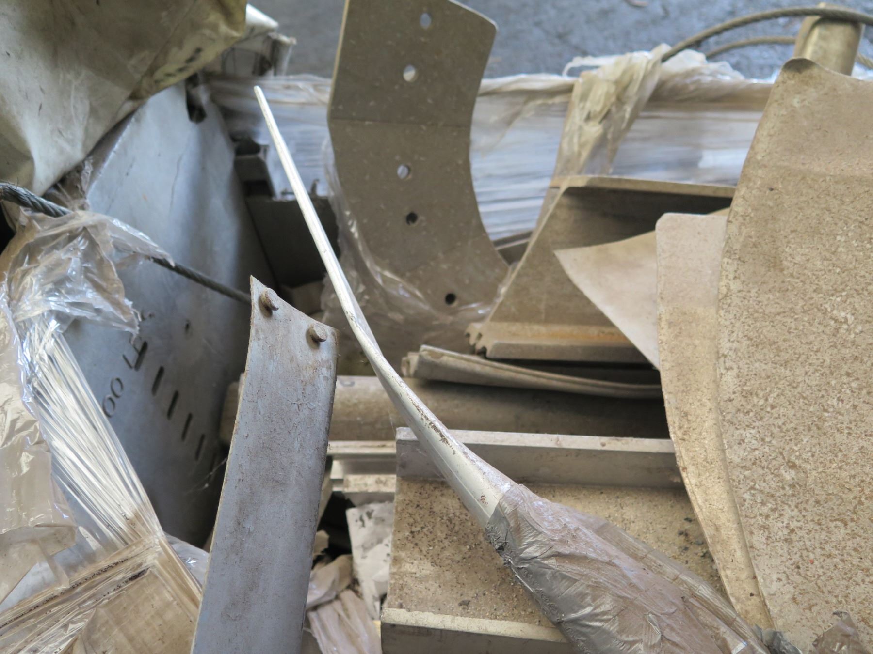 Qty 2 Plastic Bins Curved Metal 1000 G Plates, Poles, Fittings, Tarps, etc