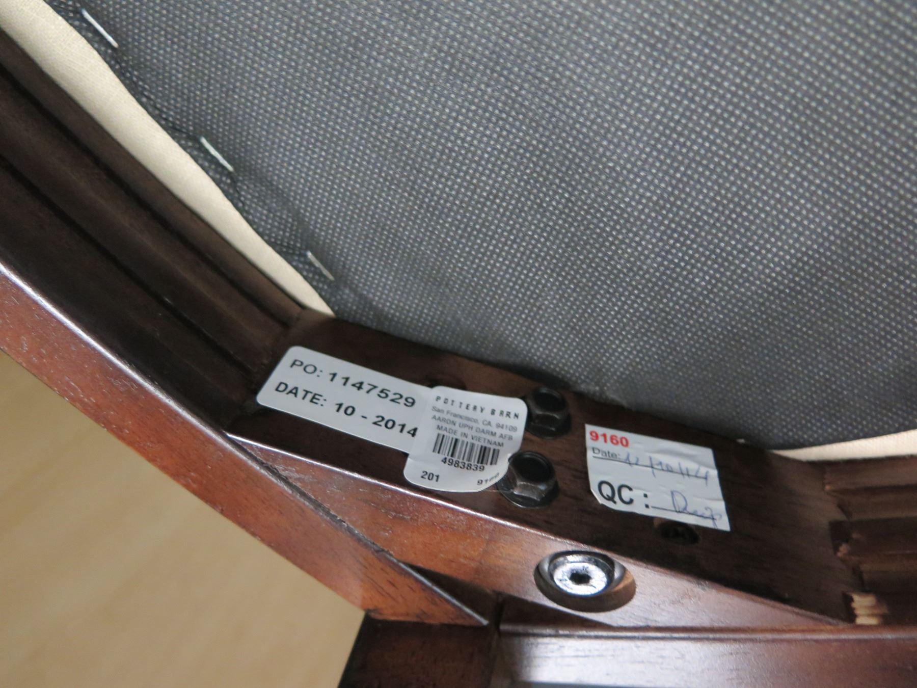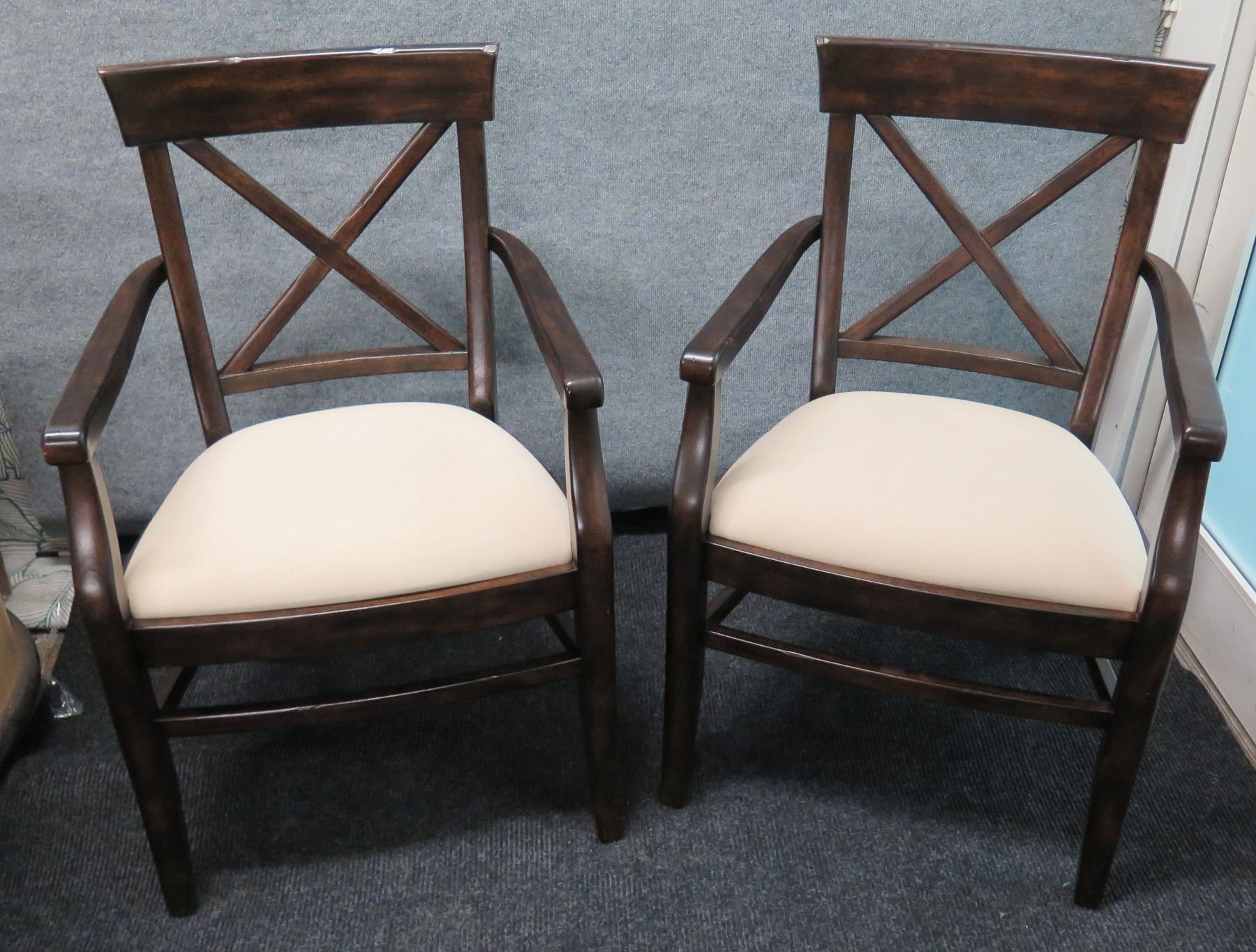 Qty 2 Pottery Barn Wooden Armchairs w/ Upholstered Seats 23"x16"x35"H