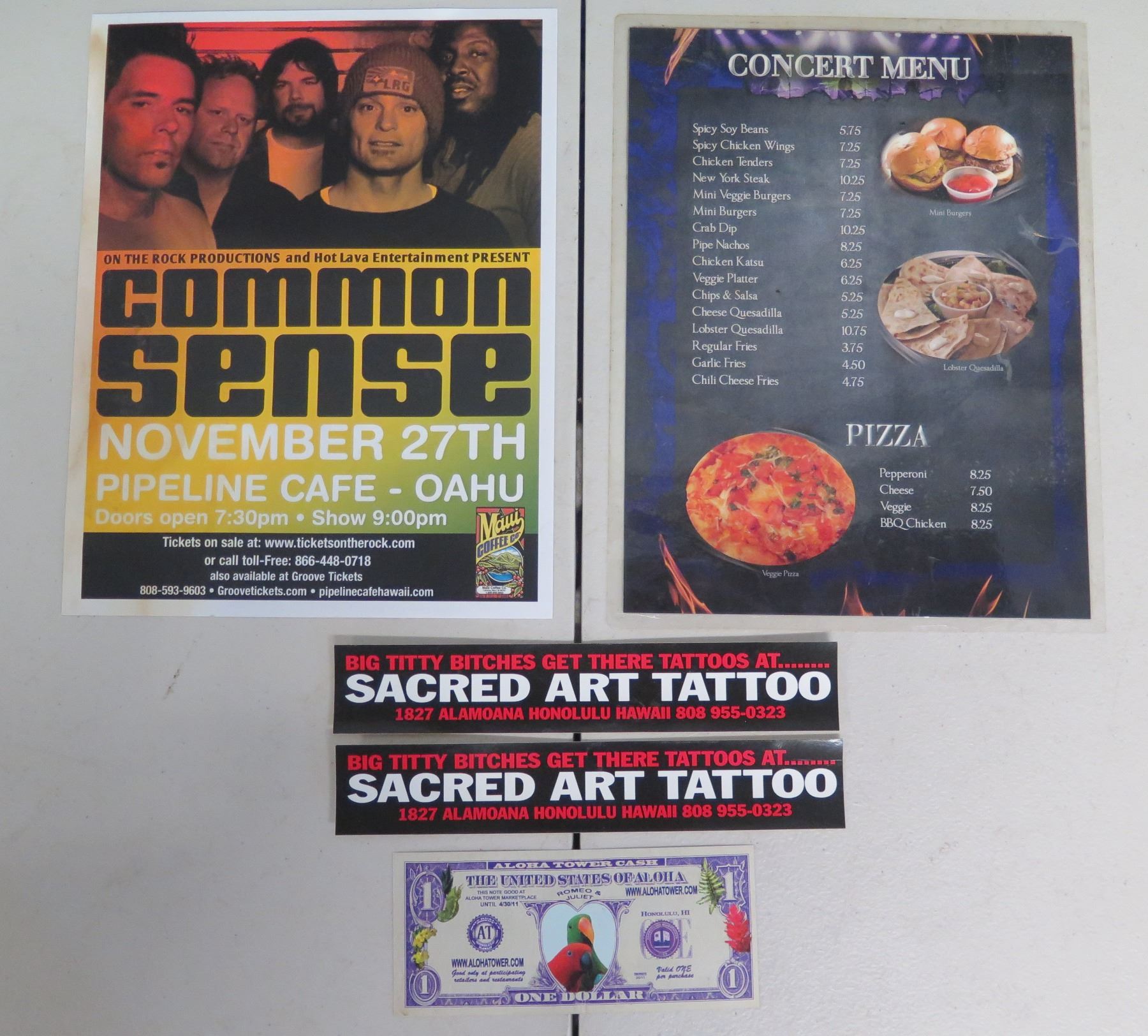 Qty 2 Promos: Common Sense & Pipeline Cafe w/ 2 Bumper Stickers & Dollar Bill