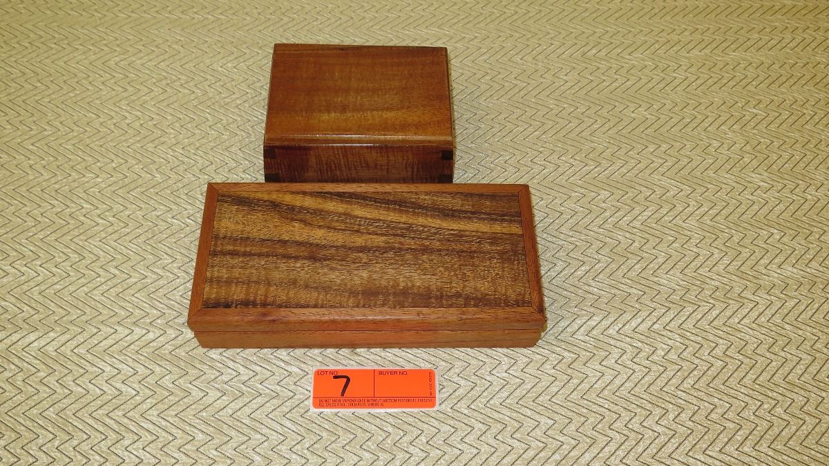 Qty 2 Rectangular Curly Koa Wood Boxes w/ Lids