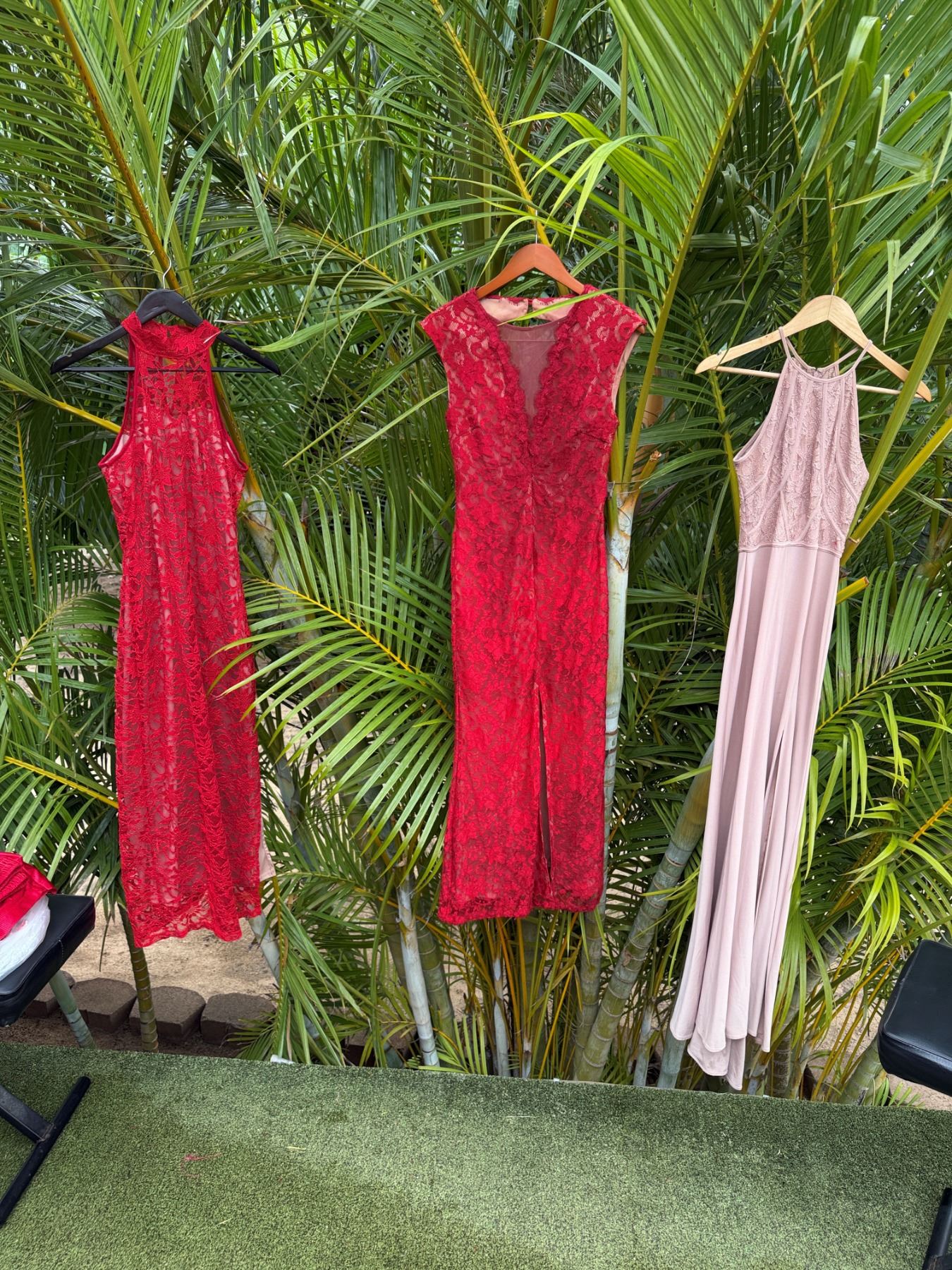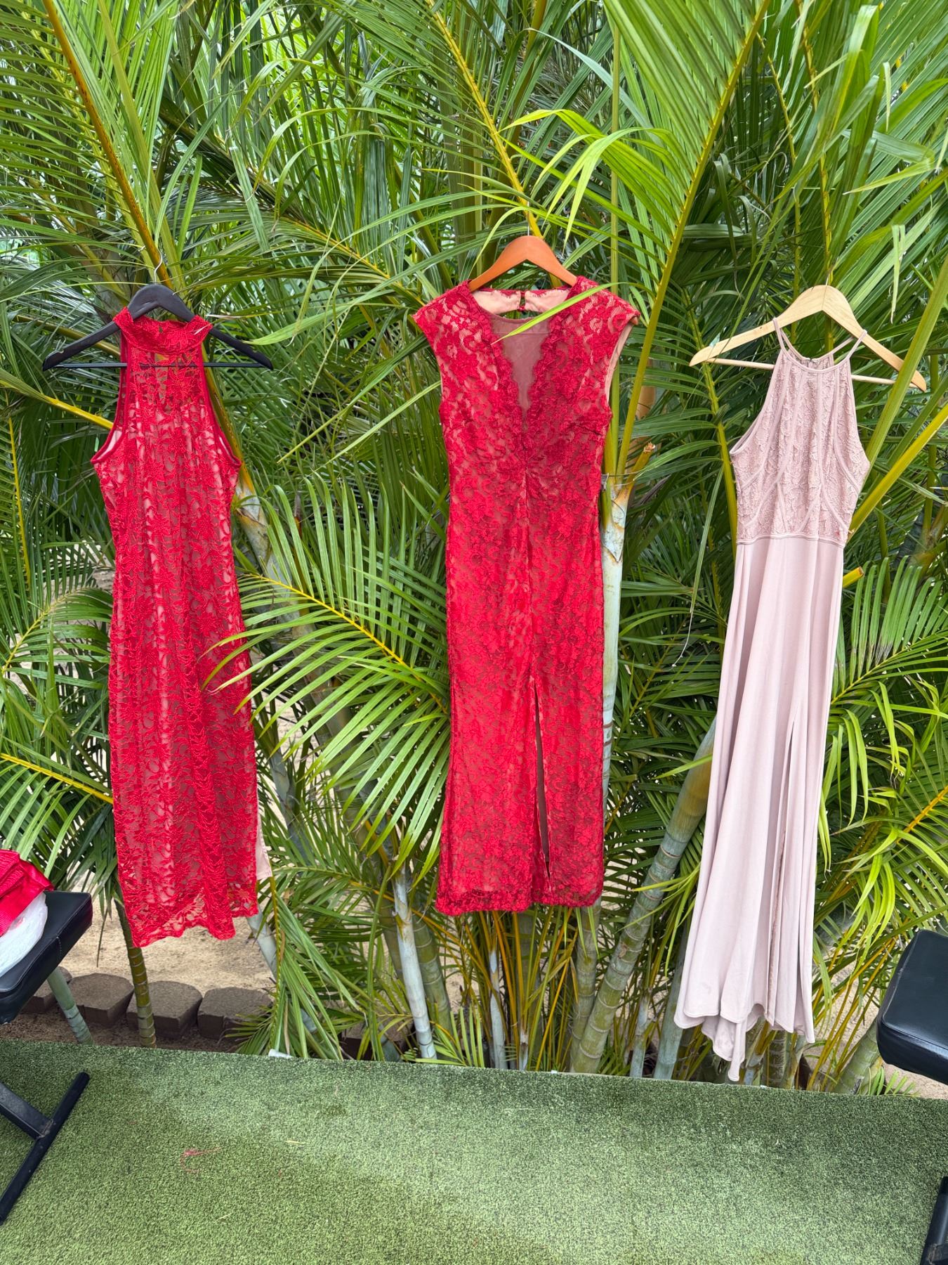 Qty 2 Red Floral Dresses & 1 Pink w/ Lace
