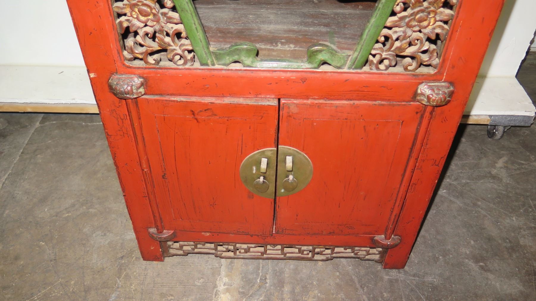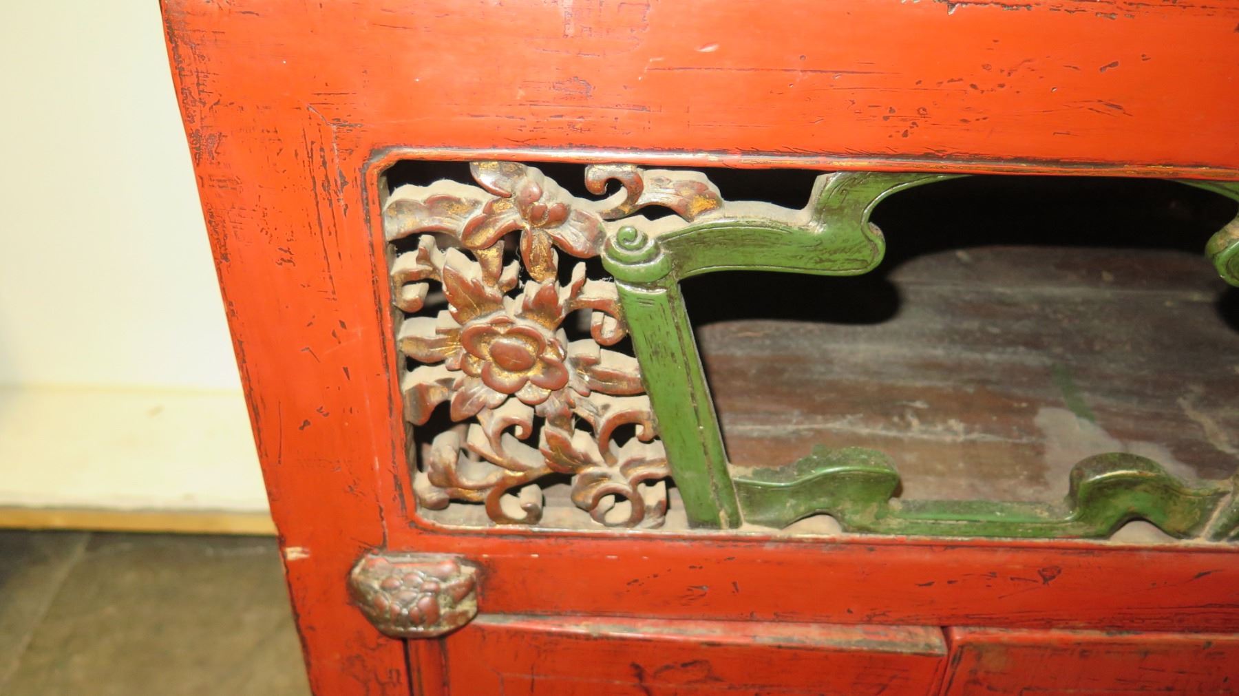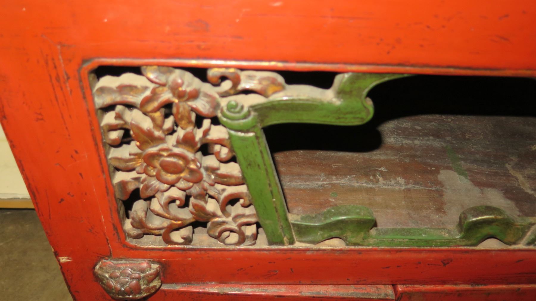 Qty 2 Red Lacquered 2-Door Wooden Oriental Cabinets (End Tables)