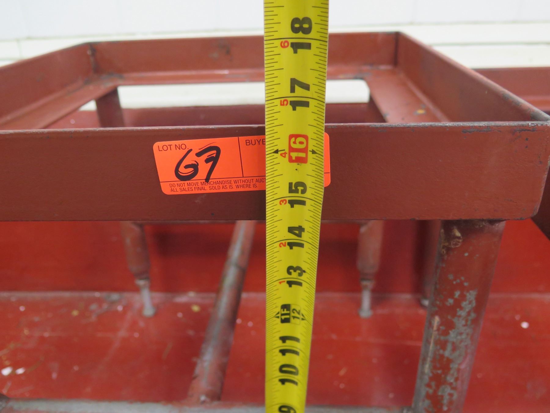 Qty 2 Red Metal Table Frames - 16"x16"x16"H and 20"x20"x15"H