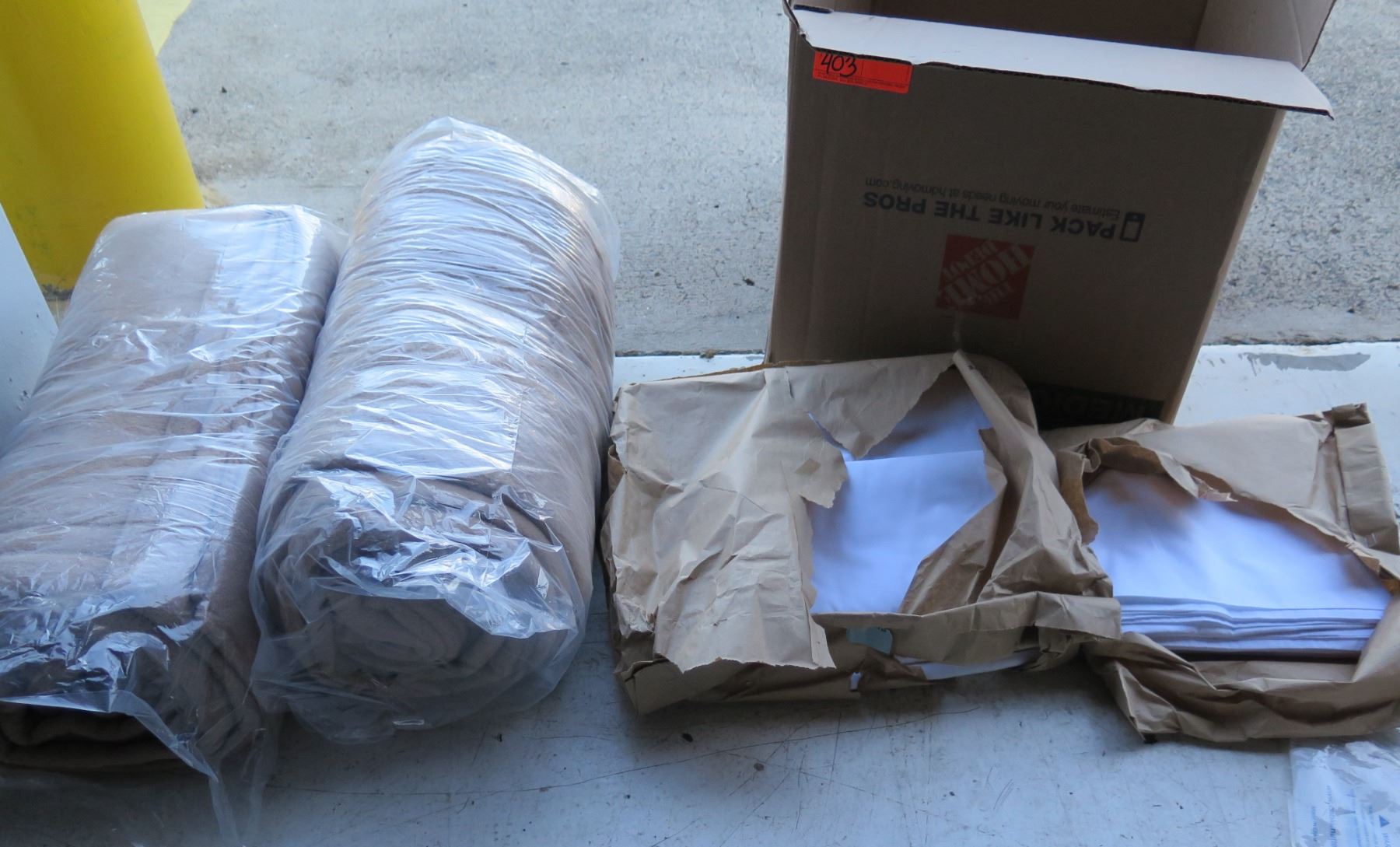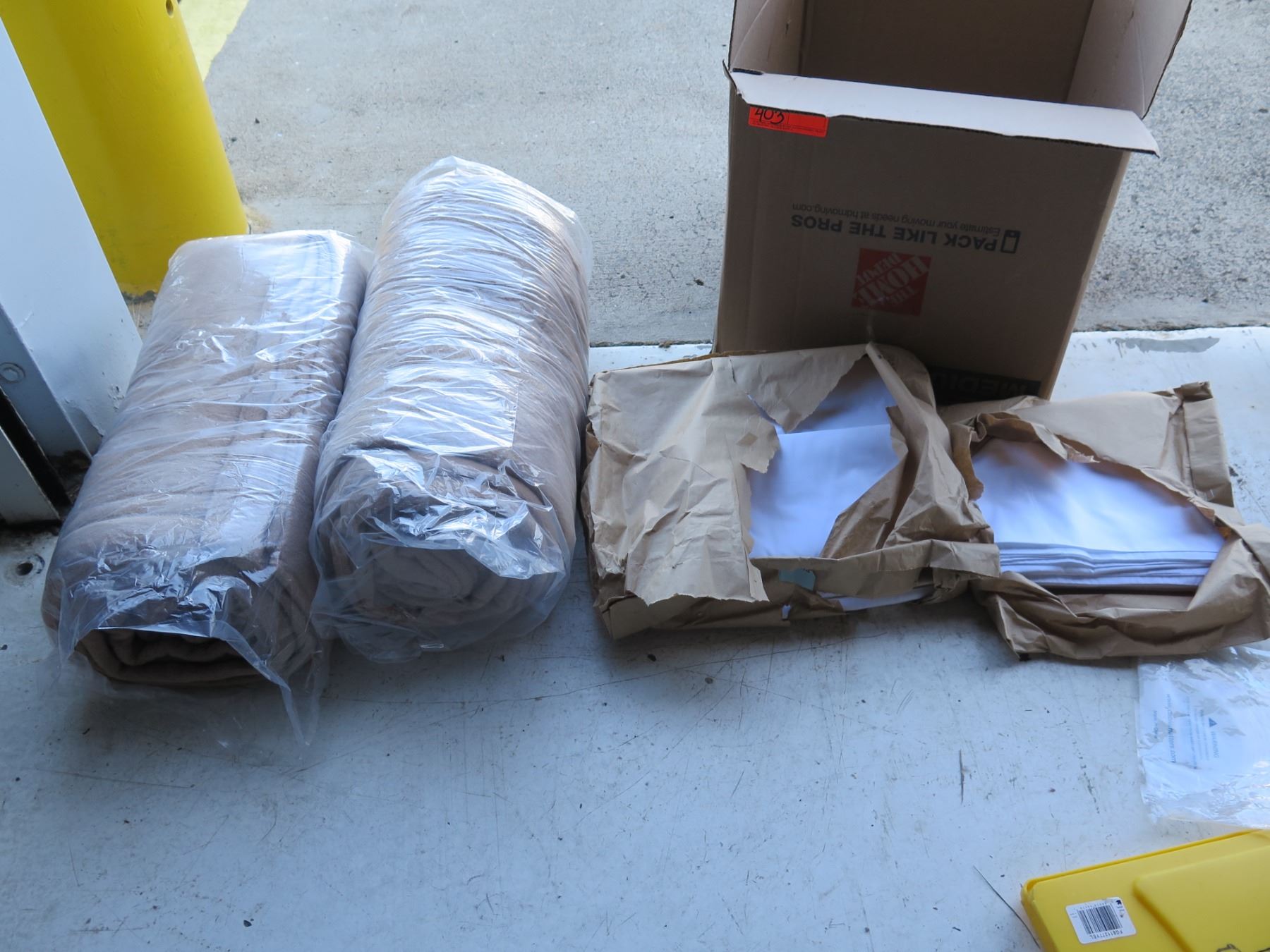 Qty 2 Rolled Blankets, Multiple Cover Pads, Paper Towels, etc