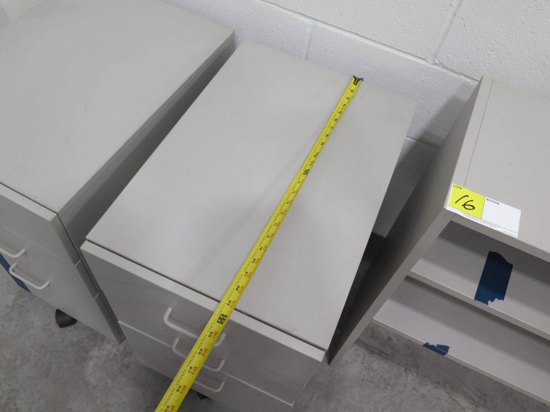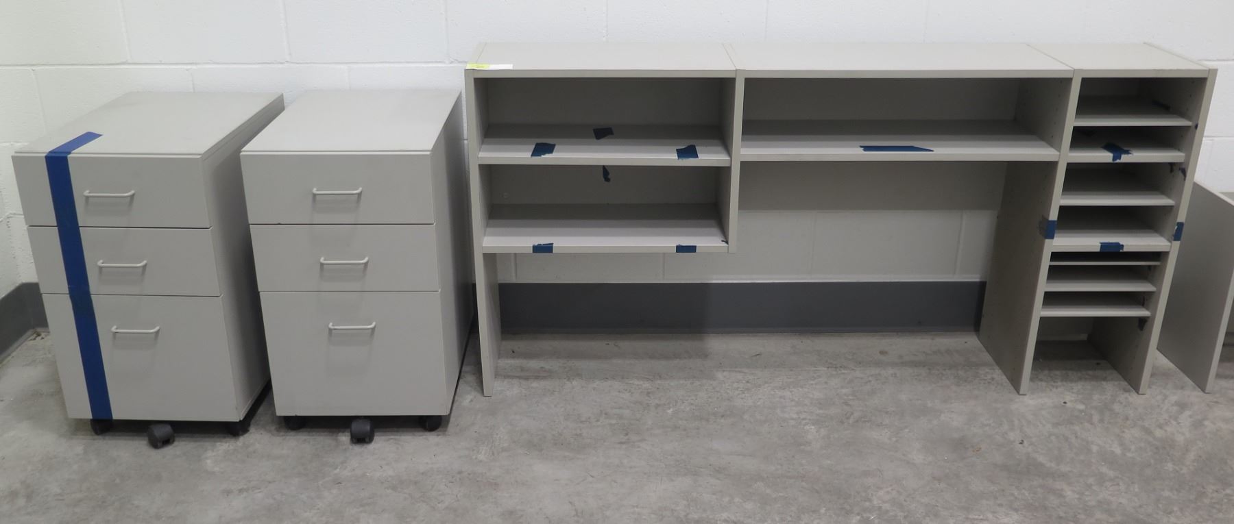 Qty 2 Rolling 3-Drawer Cabinets 24" x 16" x 28"H & Multi-Compartment Shelf Organizer 66" x 13" x 20"H