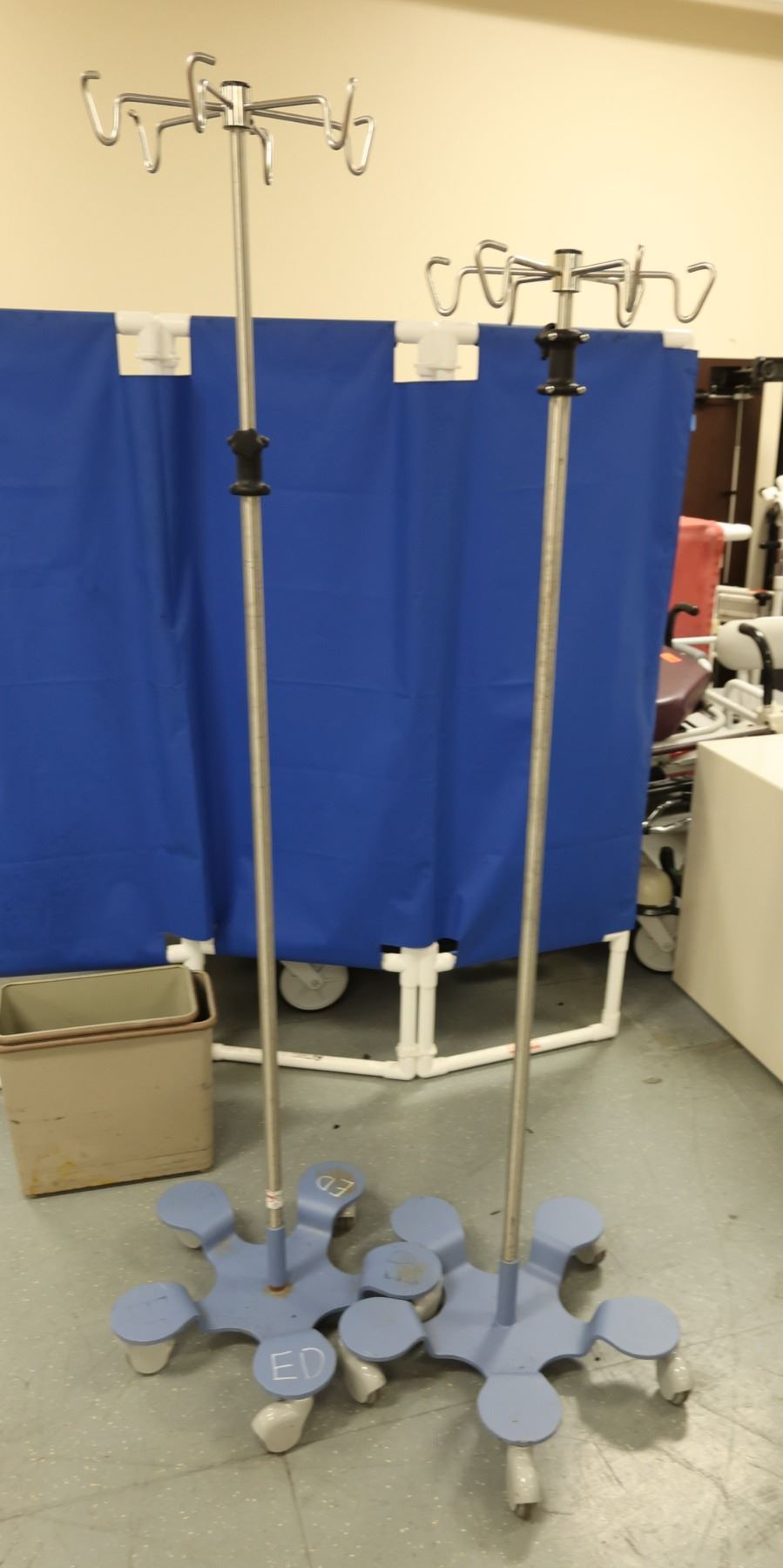 Qty 2 Rolling Medical Equipment IV Pole Stands.