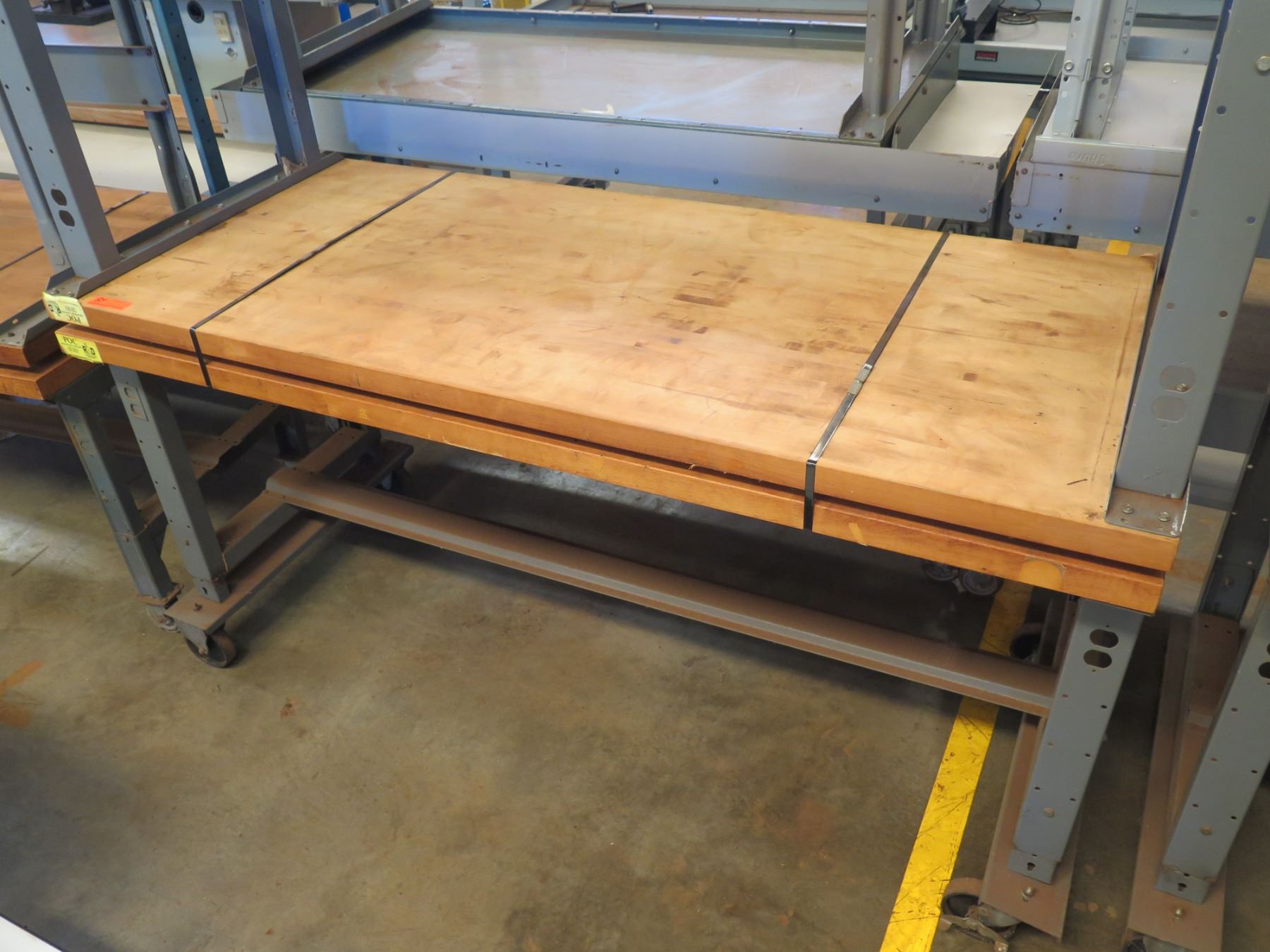 Qty 2 Rolling Metal & Wood Work Table