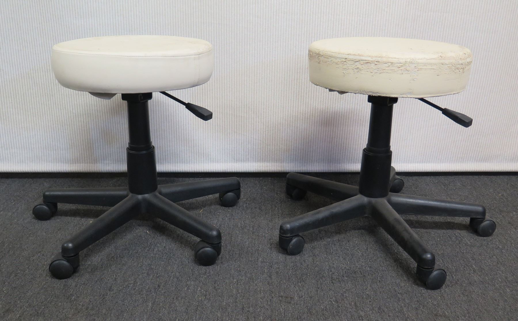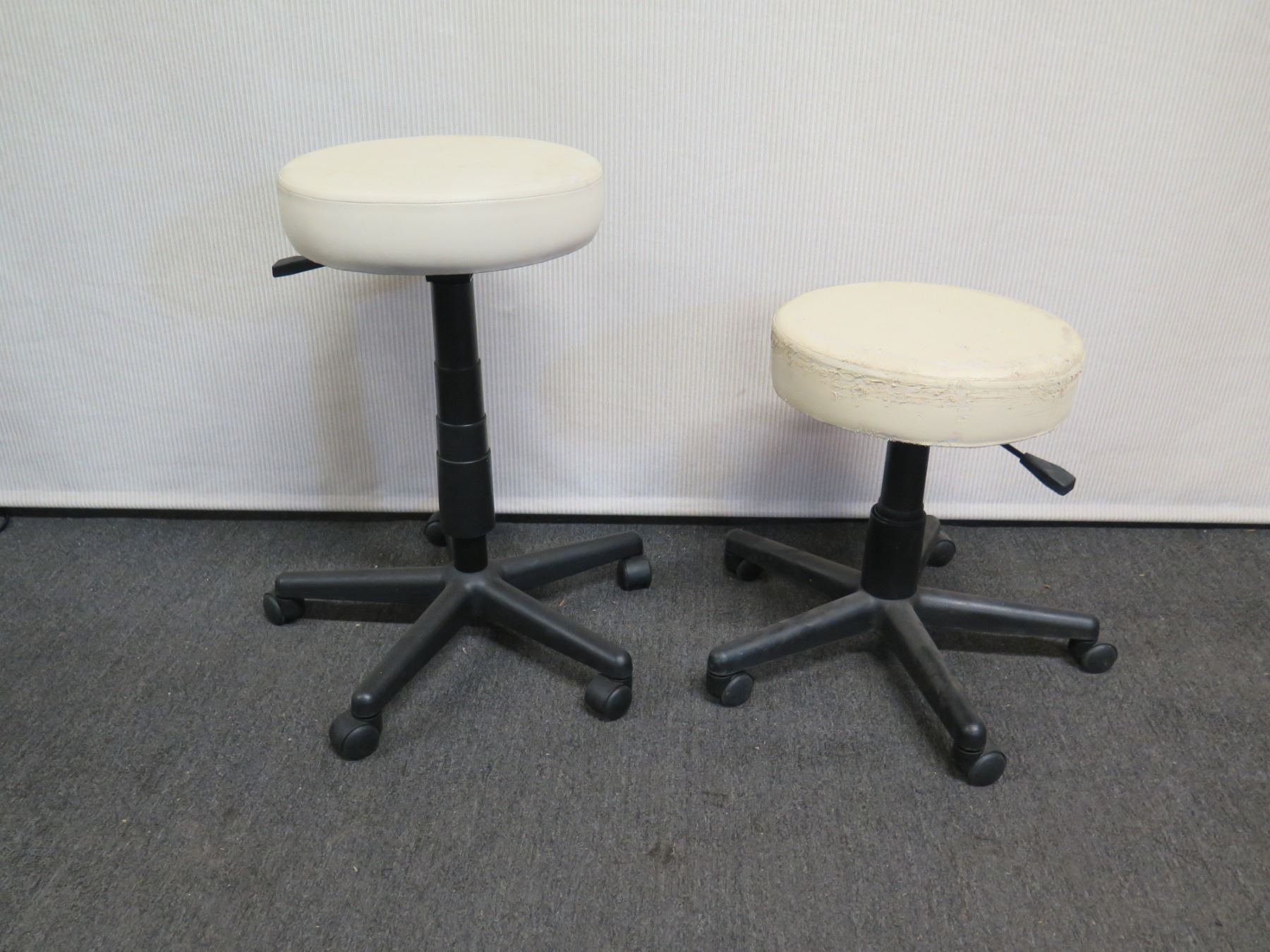 Qty 2 Round Adjustable-Height Stools 15" Dia, 20-28"H, Modern, Minimalist
