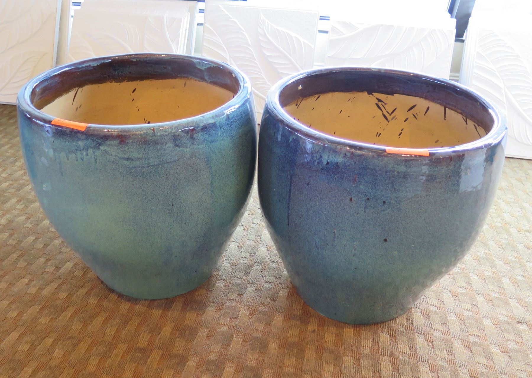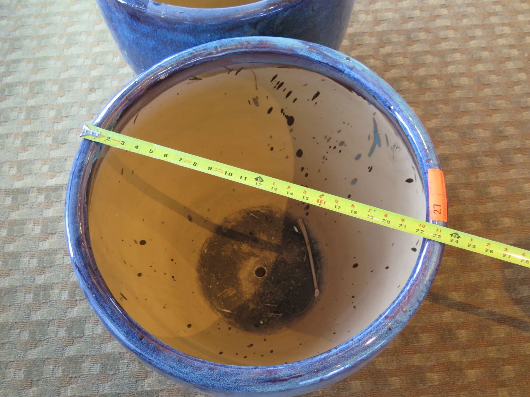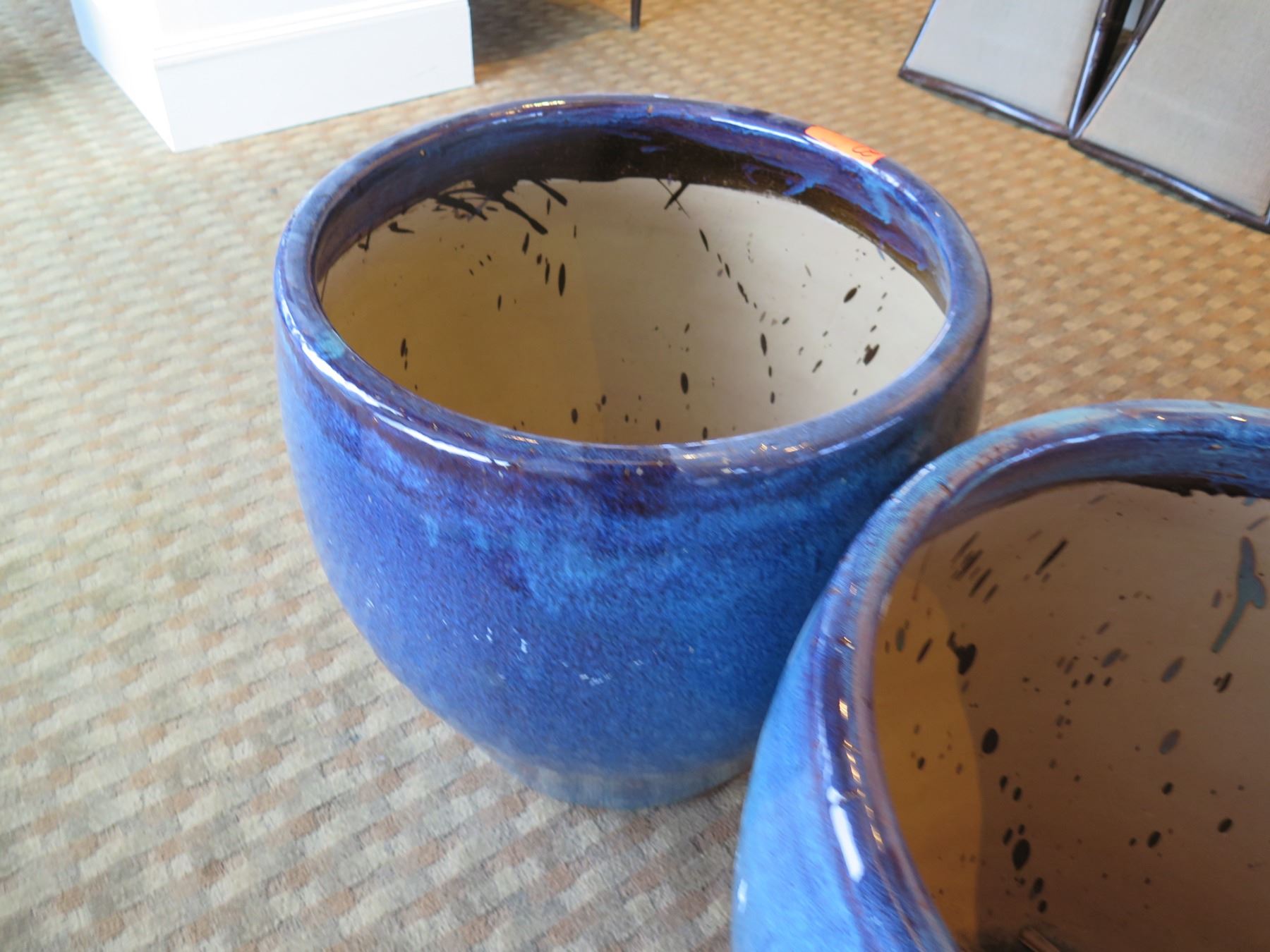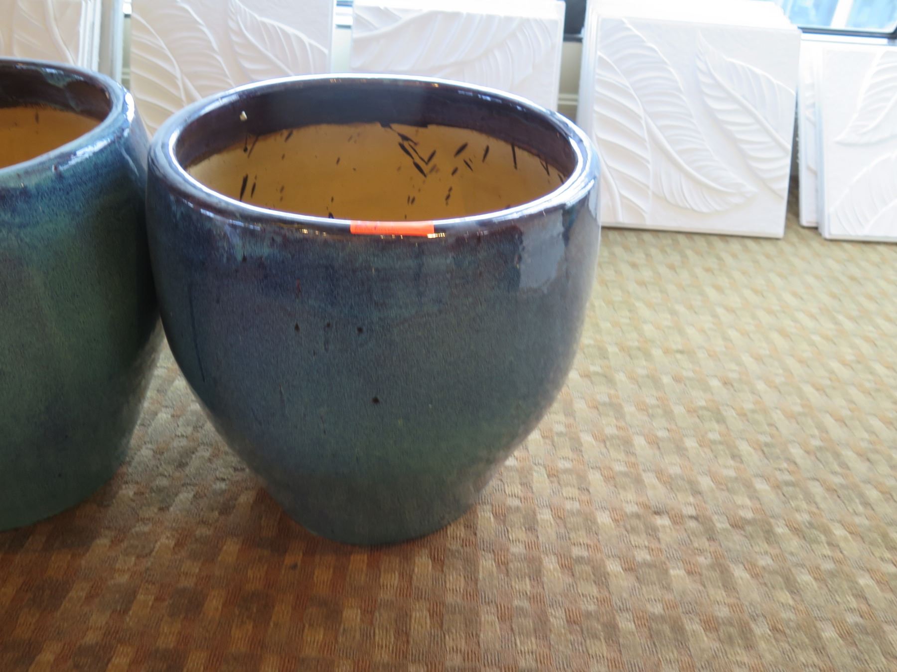 Qty 2 Round Blue Ceramic Planters 23" Diameter x 24"H