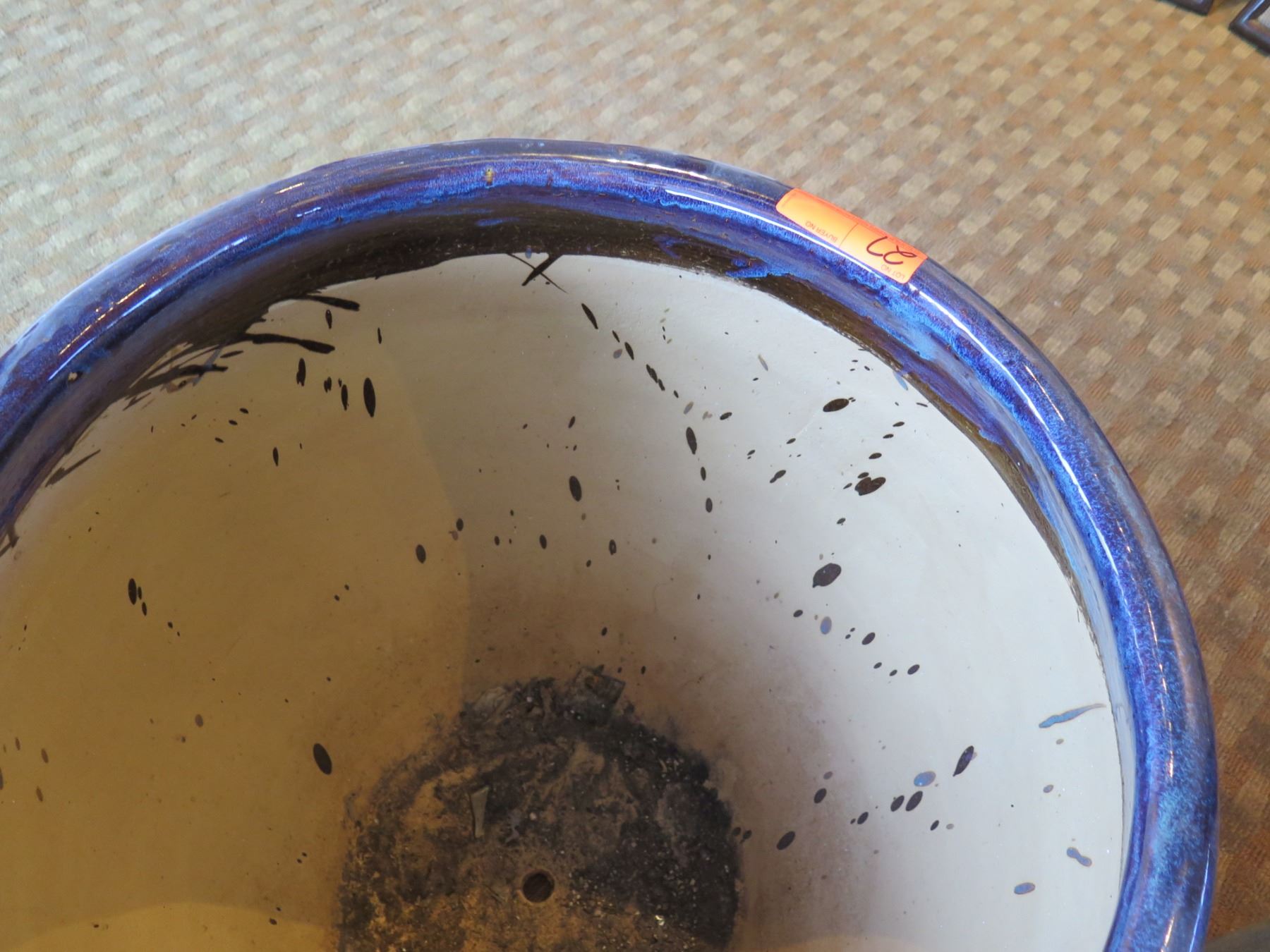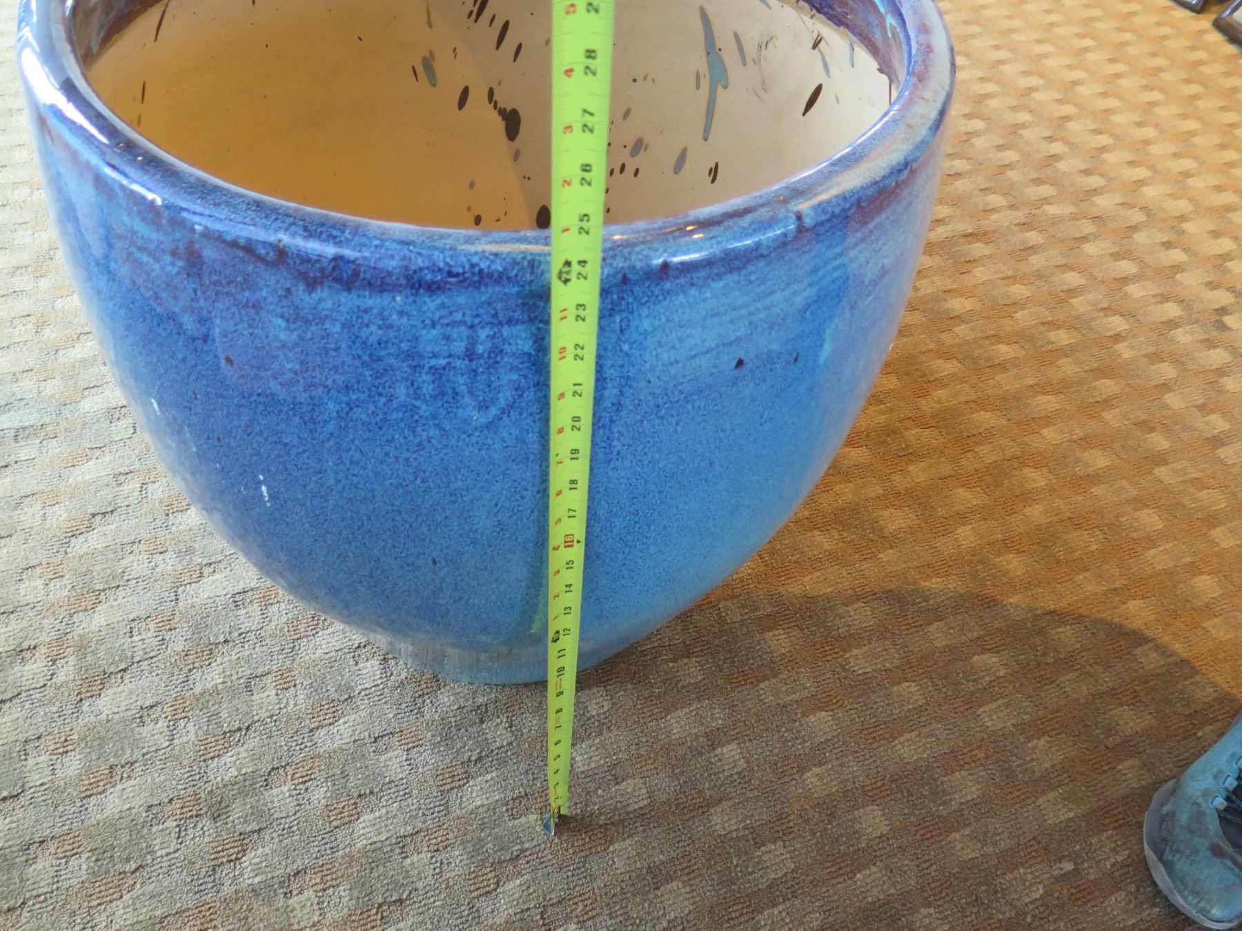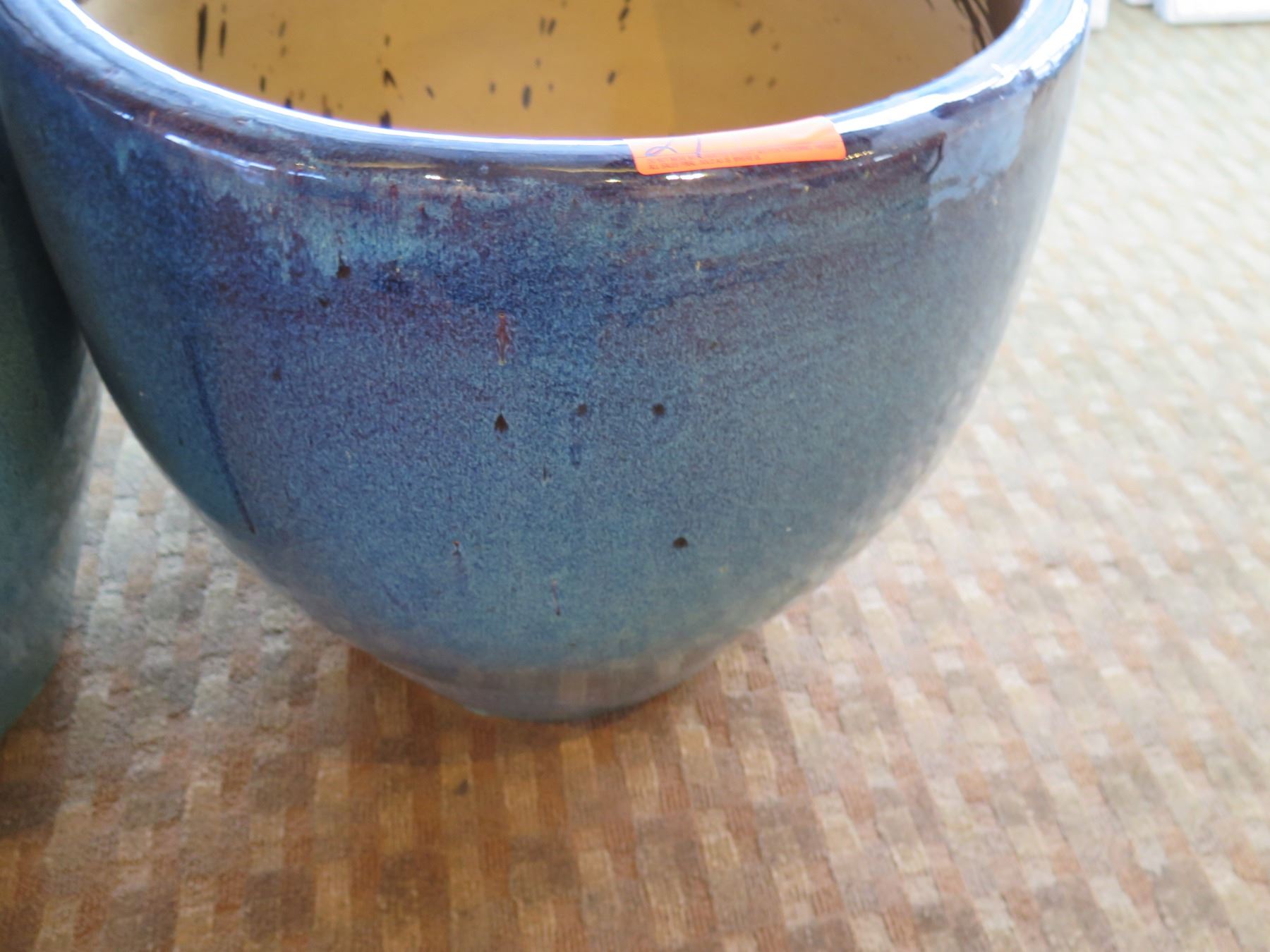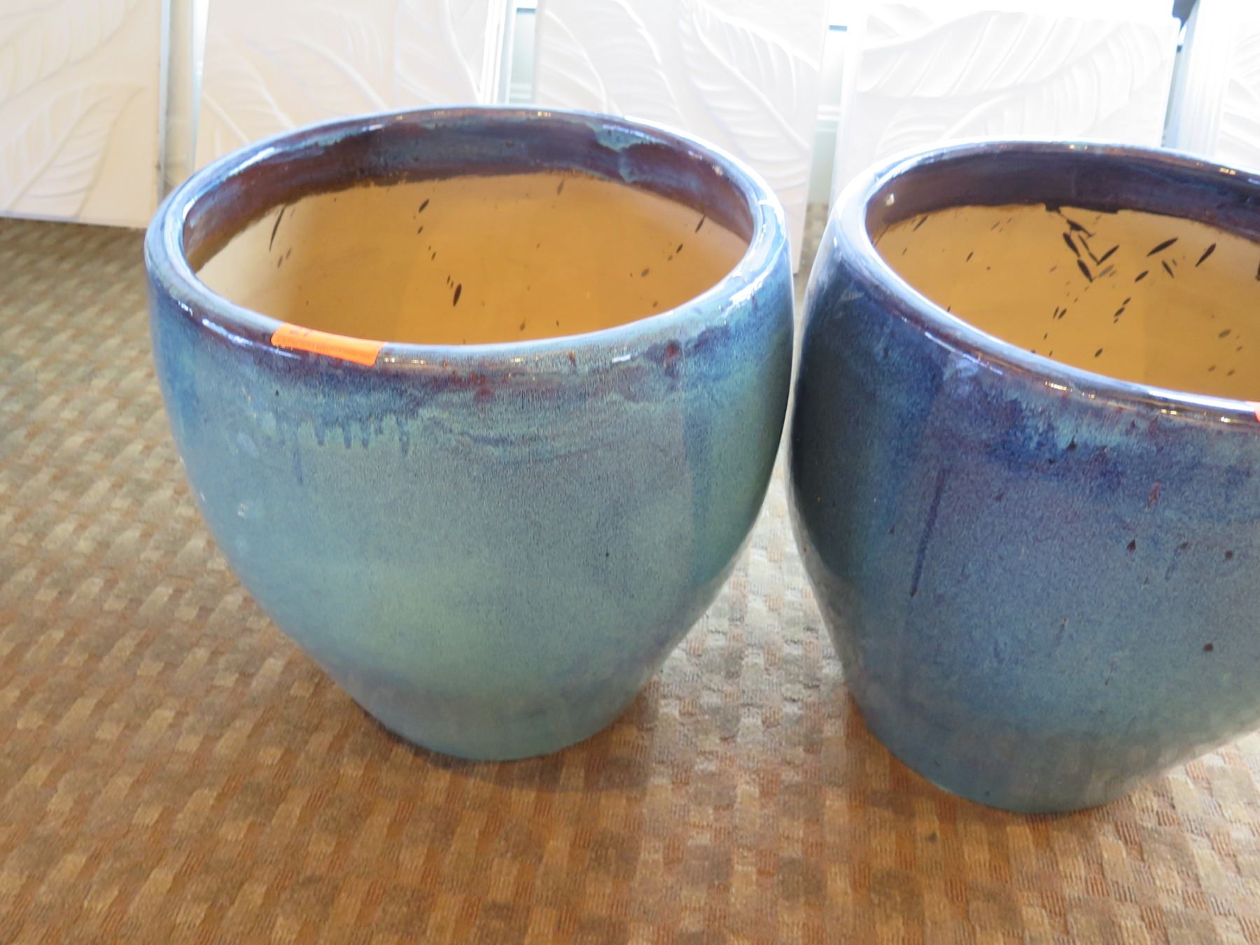Qty 2 Round Blue Ceramic Planters 23" Diameter x 24"H