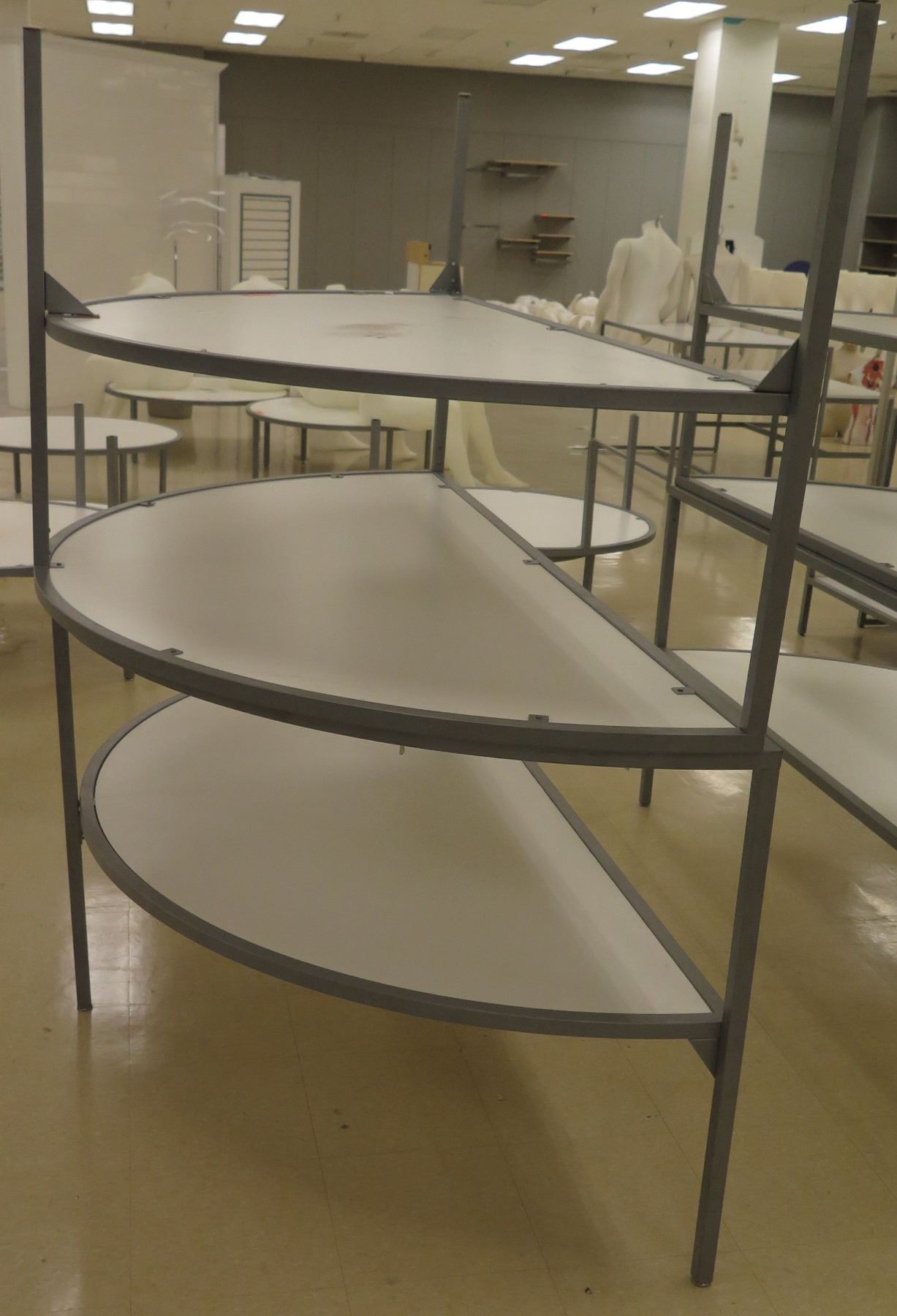 Qty 2 Round Half Tables w/ Shelf Below 72"L x 33.5"H each