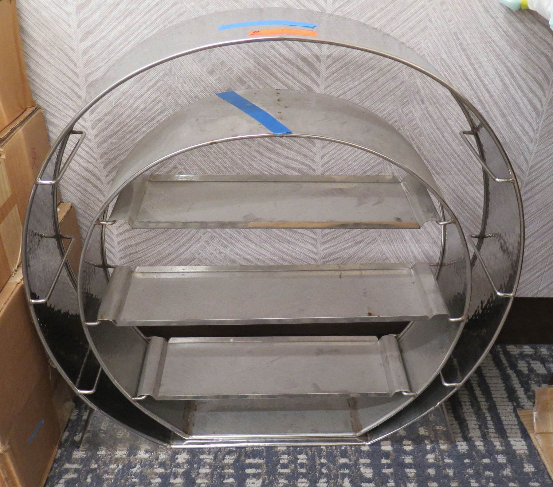 Qty 2 Round Metal Display Shelving Units 25" & 30"H