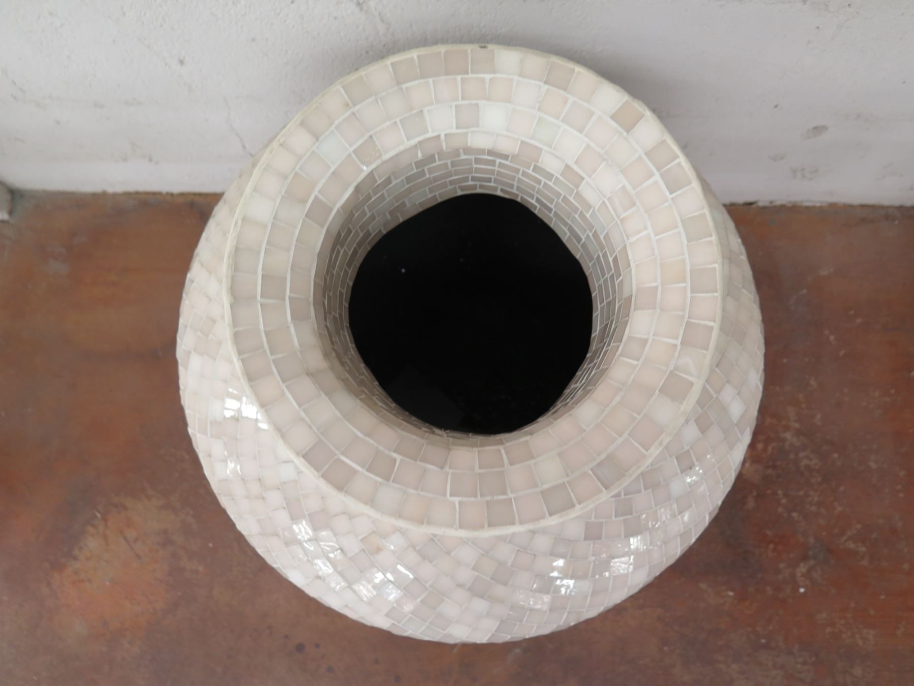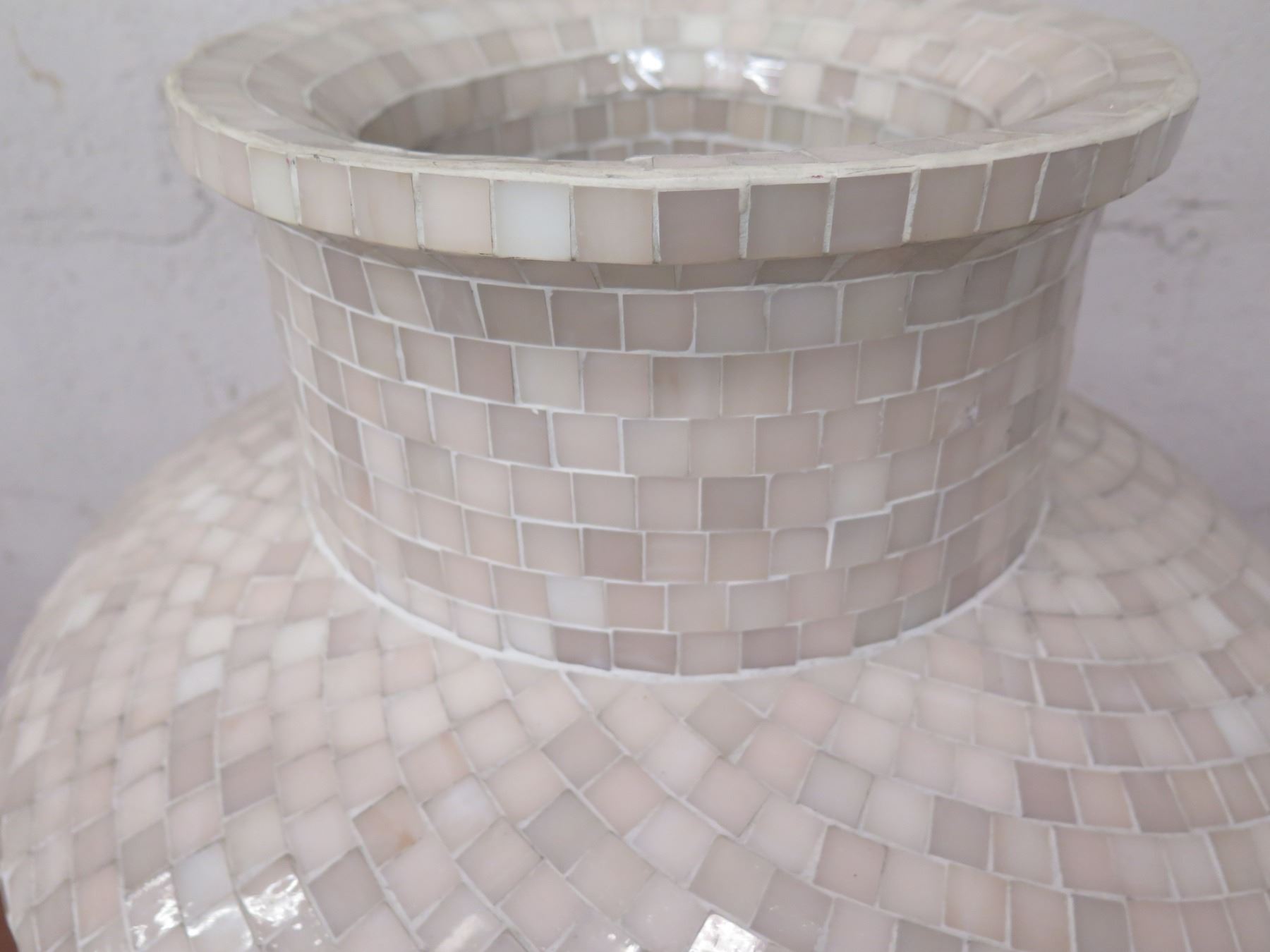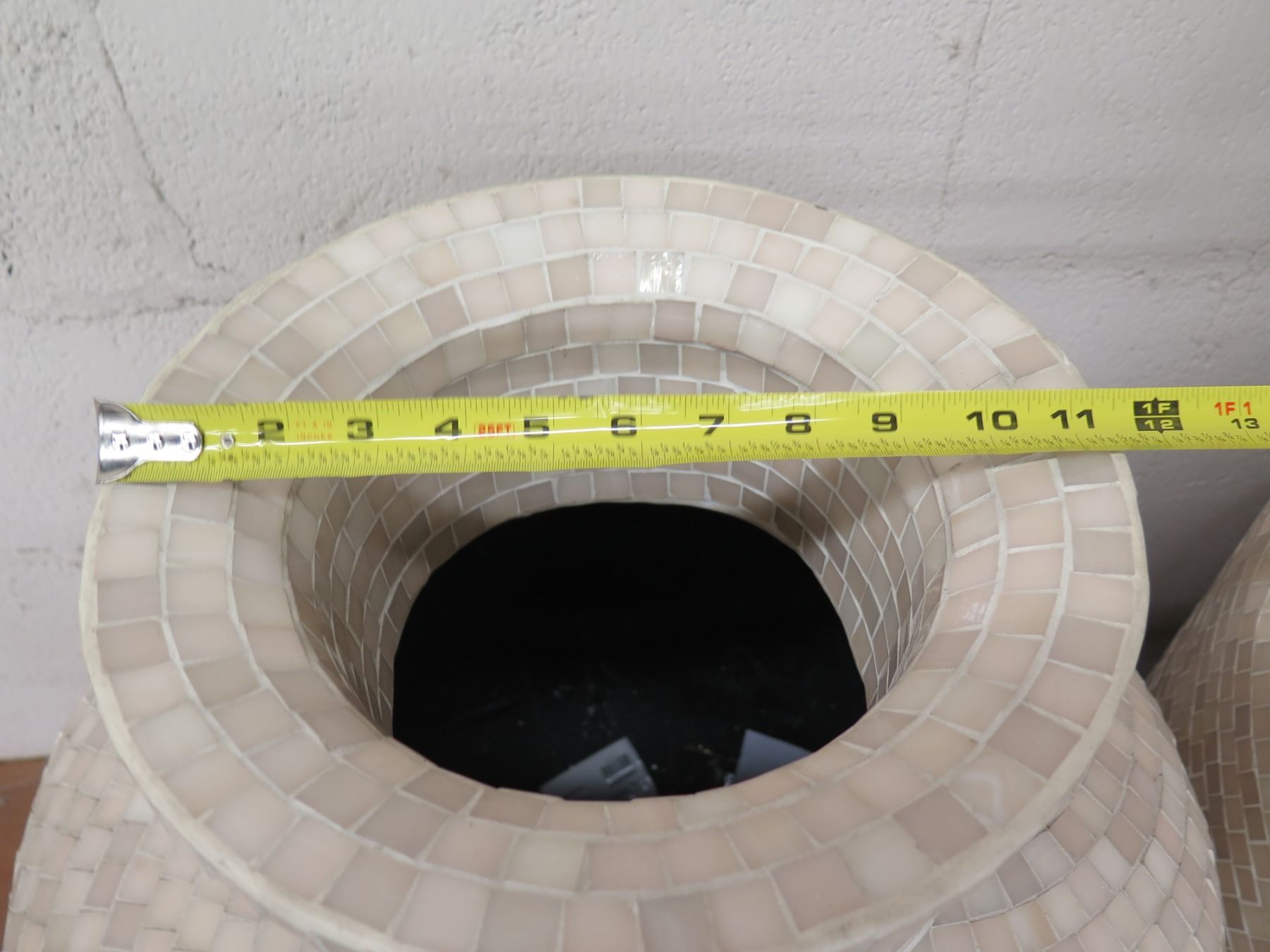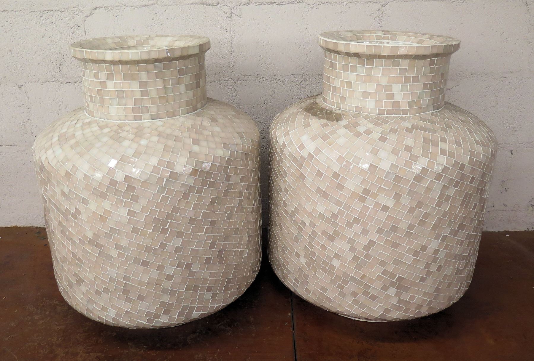 Qty 2 Round Mother of Pearl Mosaic-Tiled Vases 11"D x 25" Tall