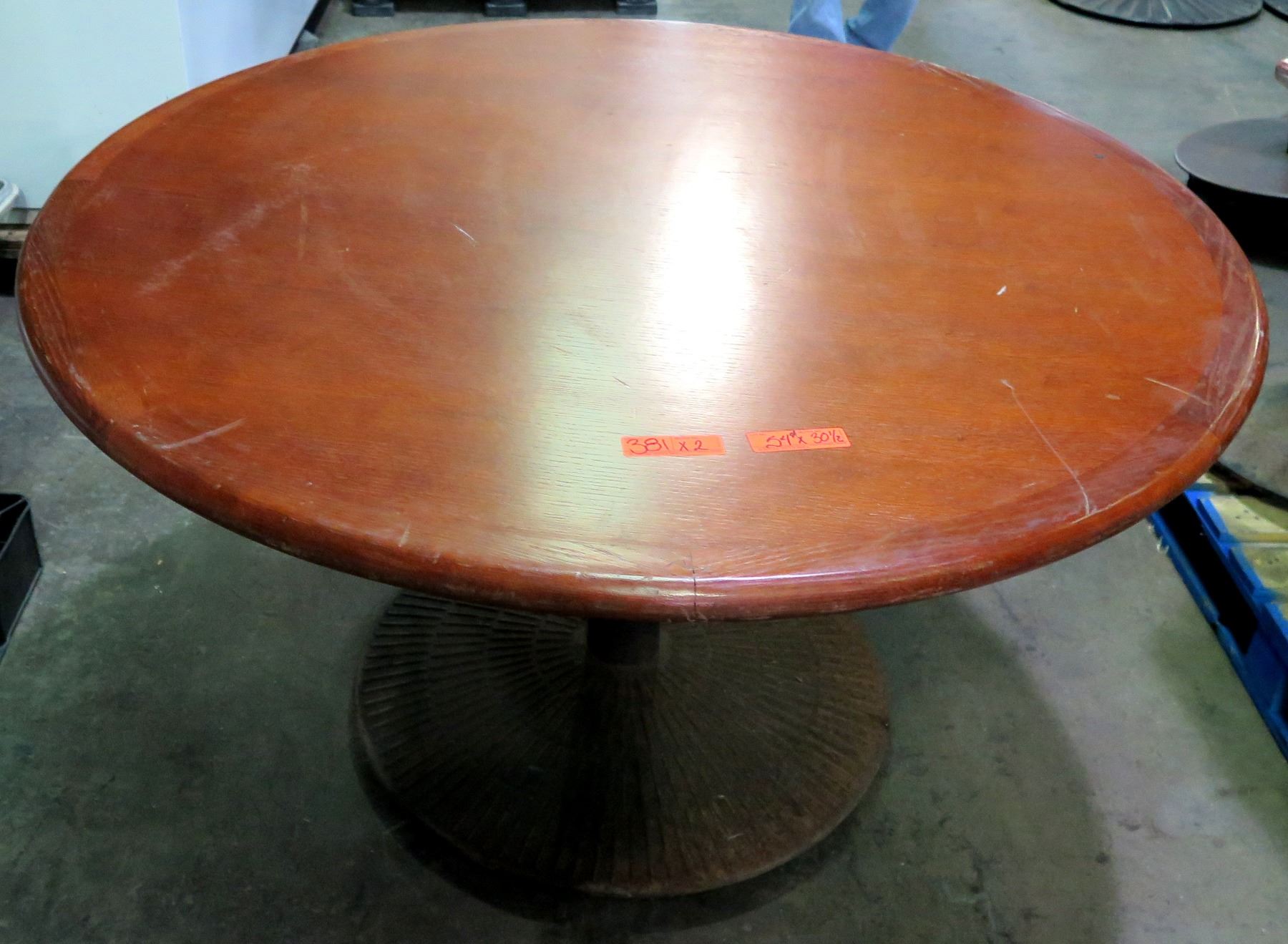Qty 2 Round Wood Tables on Metal Pedestal Base 54" x 30"H