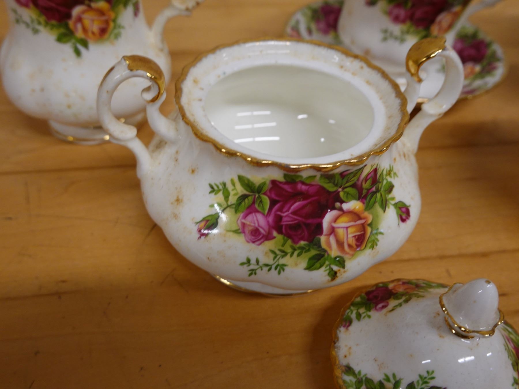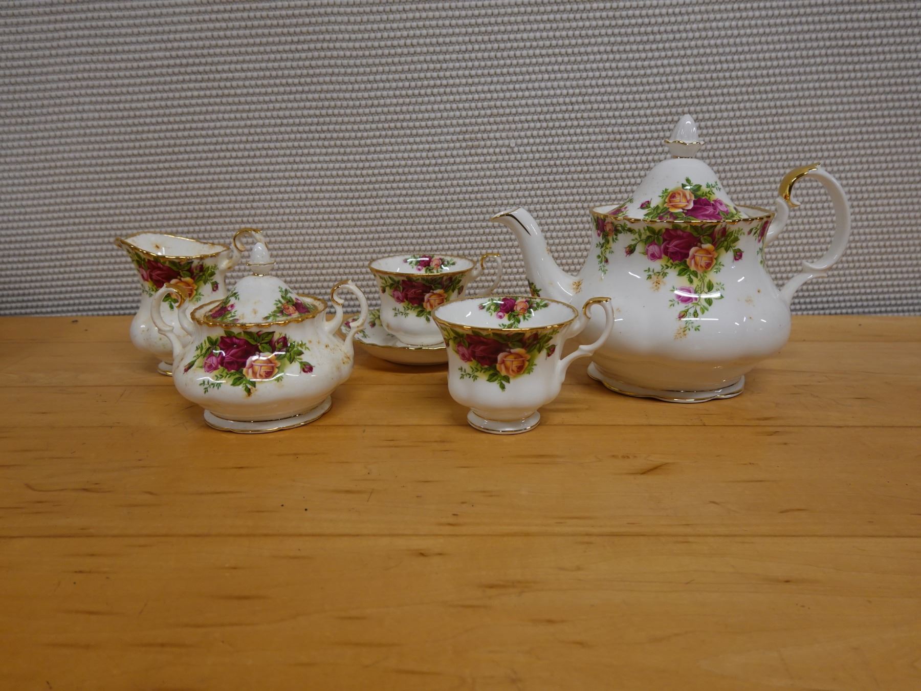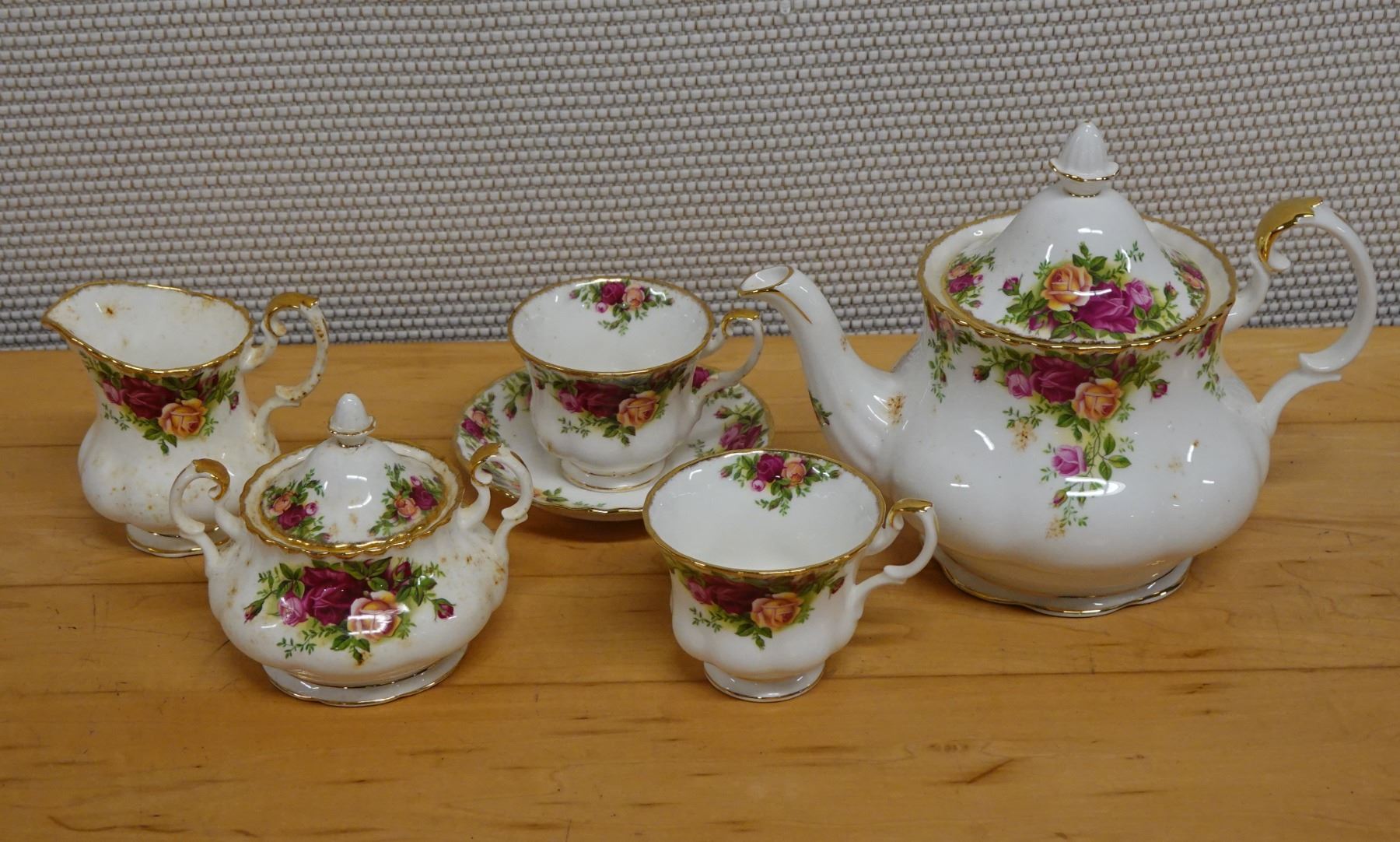 Qty 2 Royal Albert Old Country Roses Fine China Tea Cups w/ 1 Saucer, Creamer, Sugar Bowl & Tea Pots, Misc Sizes