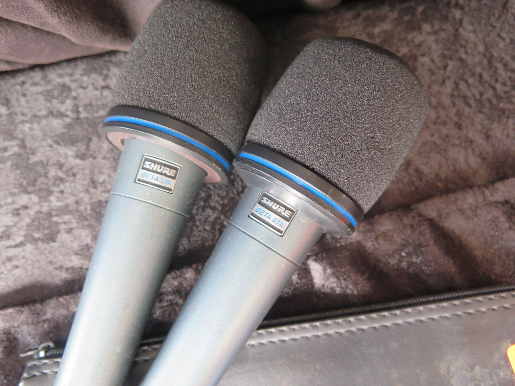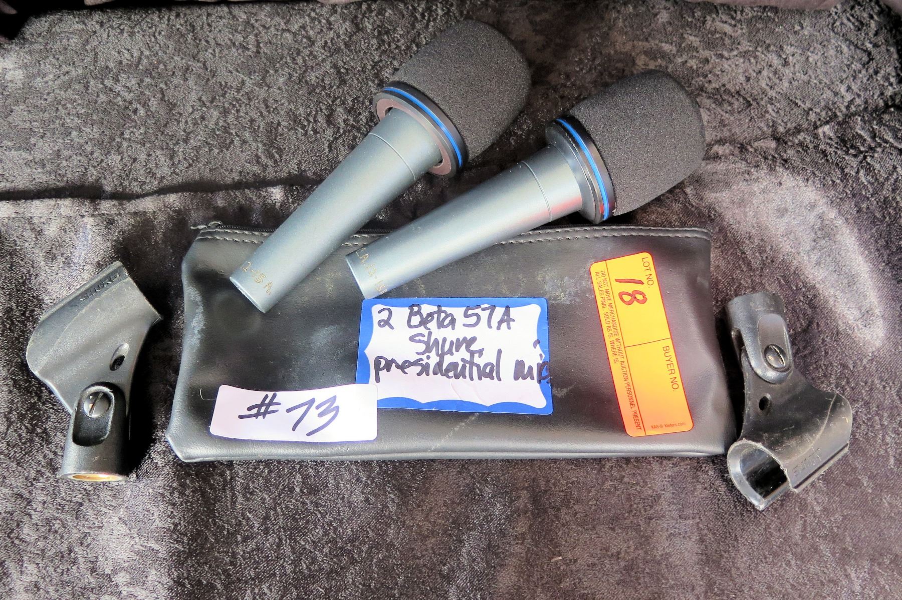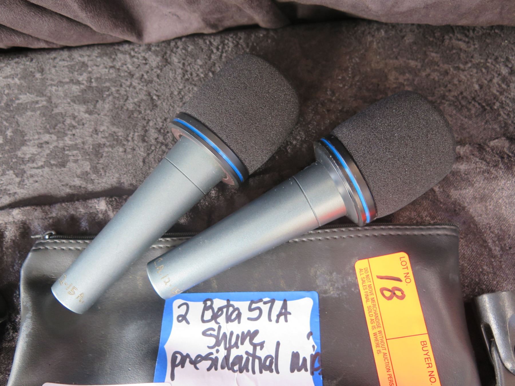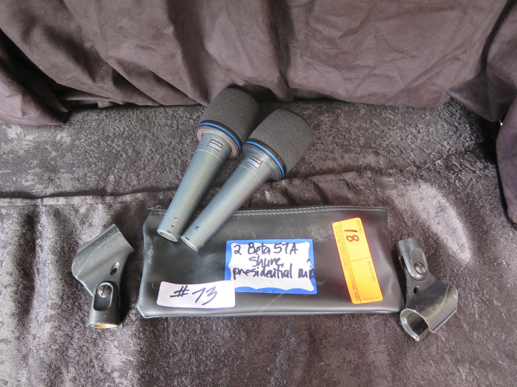 Qty 2 SHURE Beta57 Presidential Microphones w/ Mic Clips & Windscreens https://www.shure.com/en-US/products/microphones/beta_57a