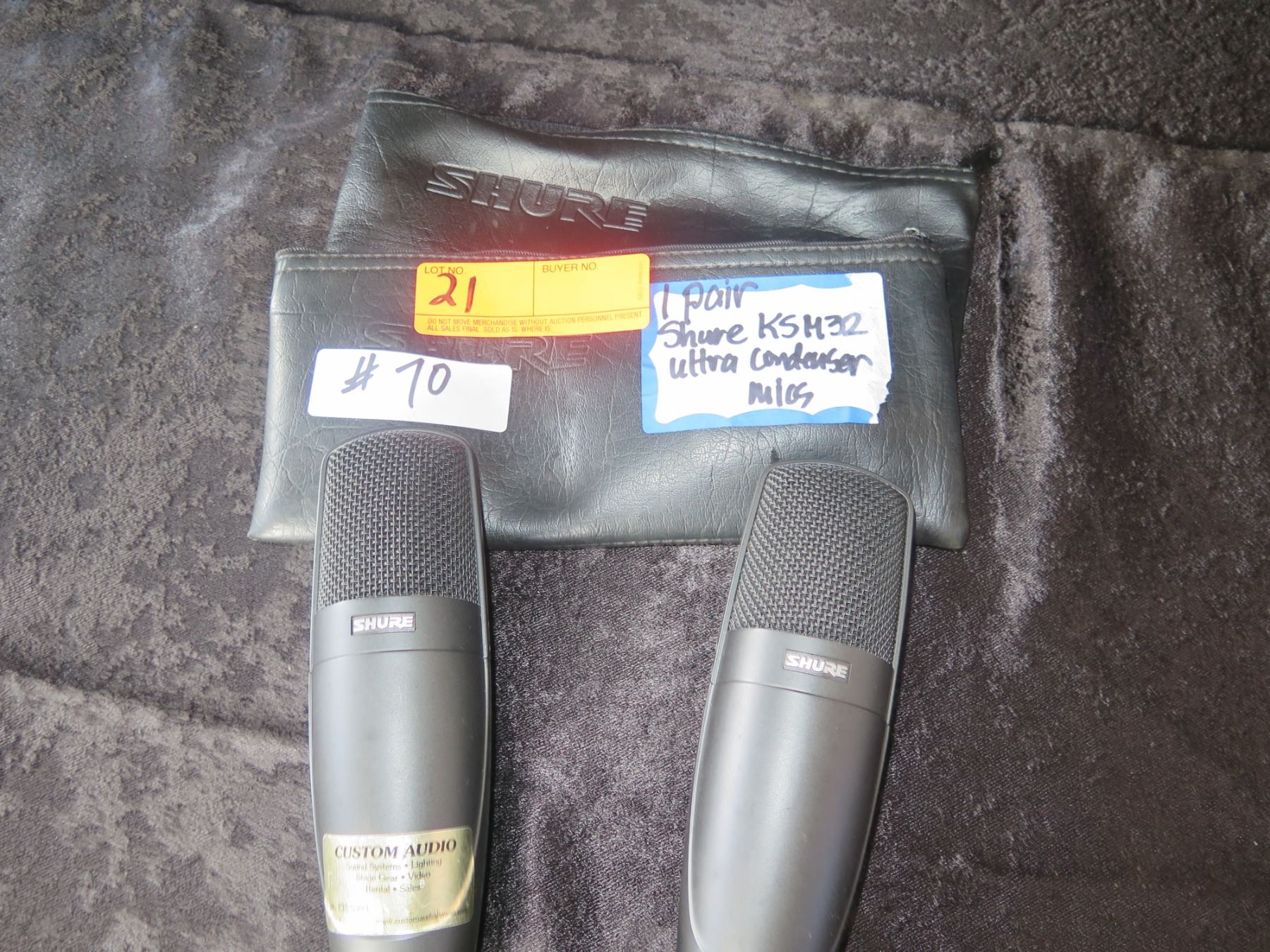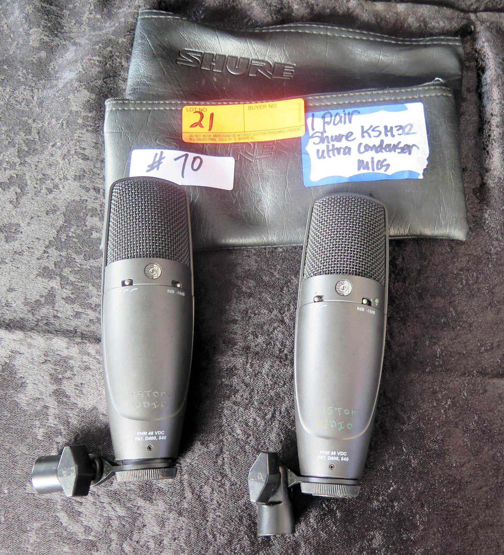 Qty 2 SHURE KSM32 Cardioid Condenser Studio/Live Mics w/ Clips