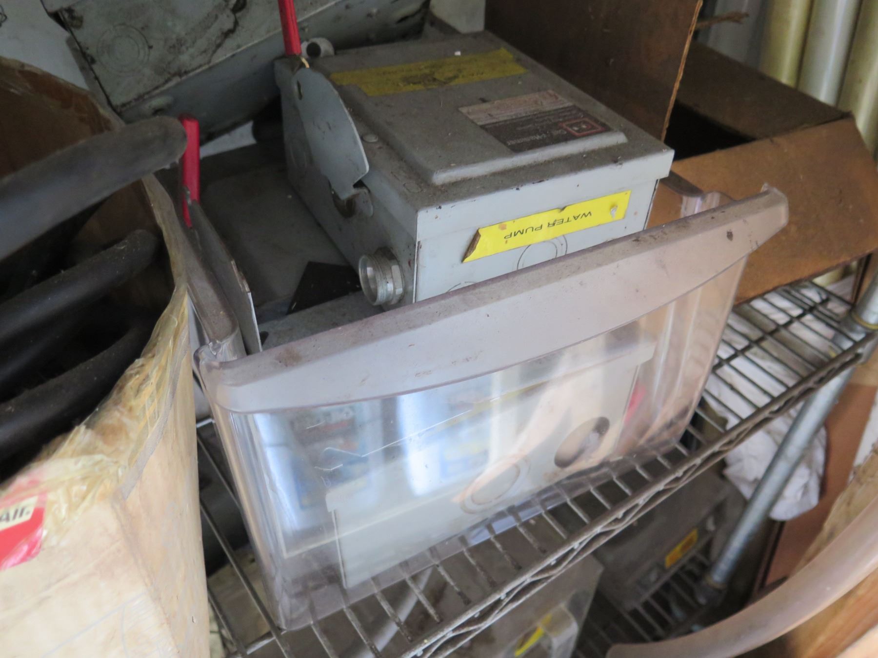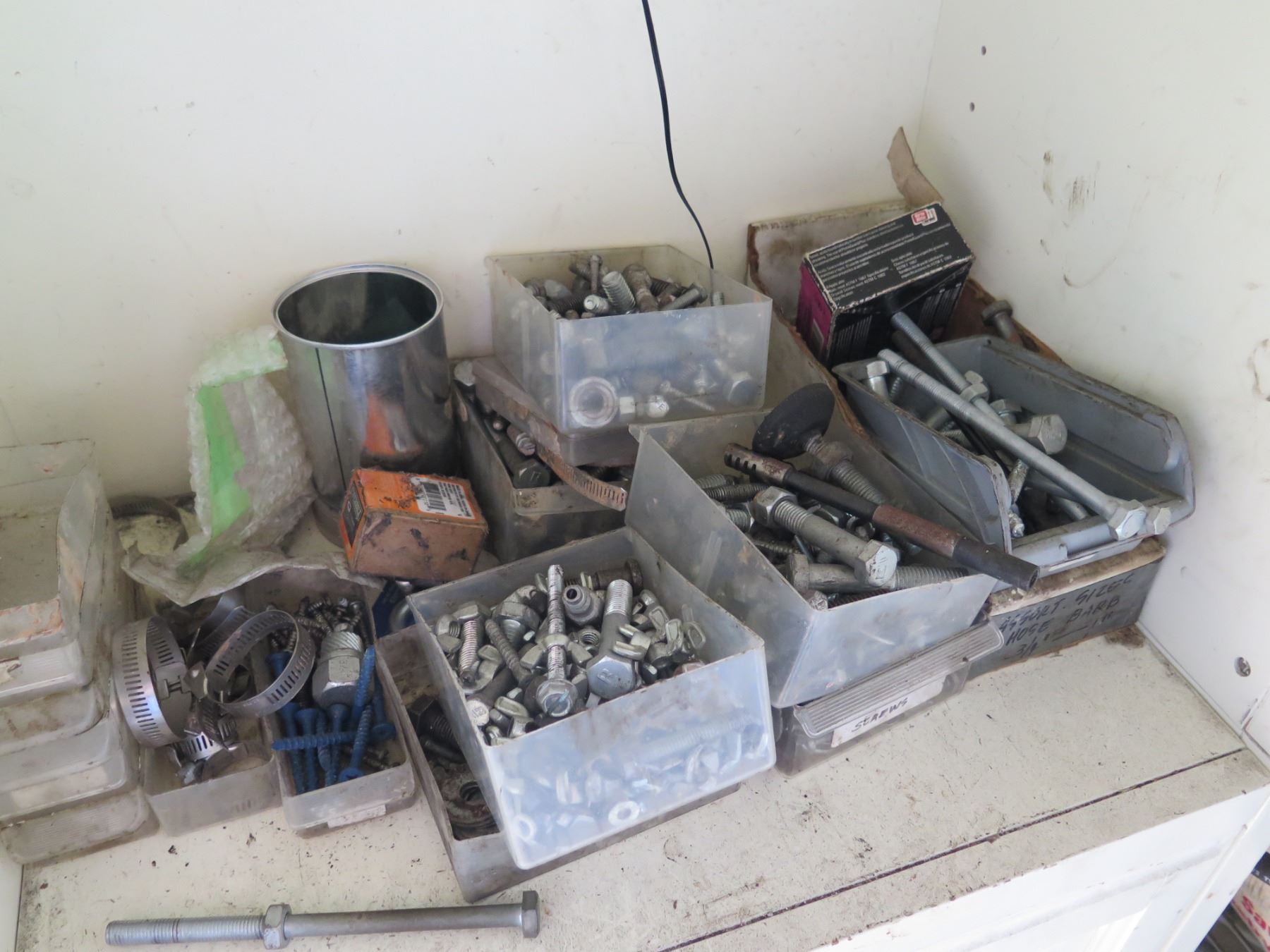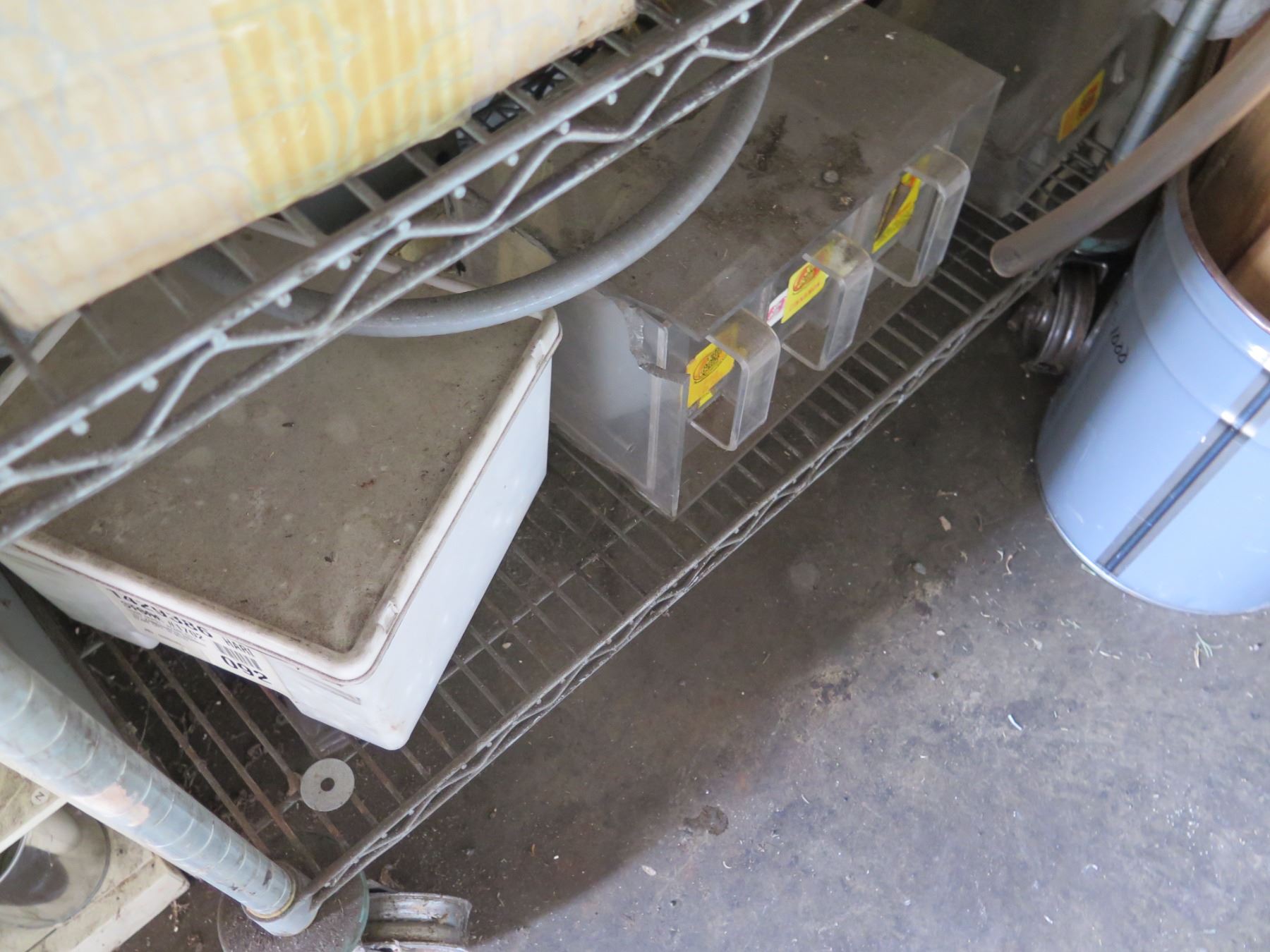 Qty 2 Shelving Units & Contents: Hardware, Hose, Parts, etc