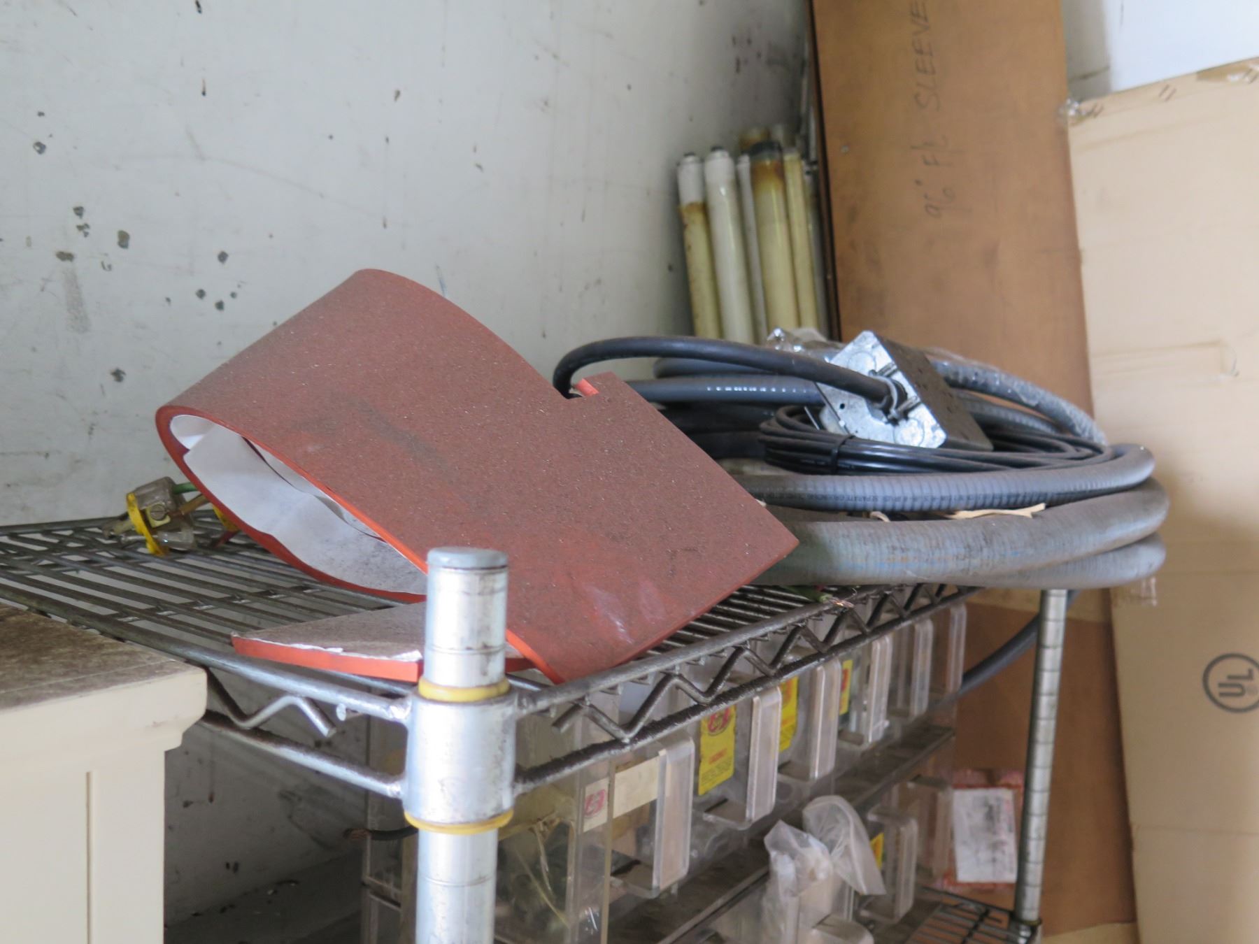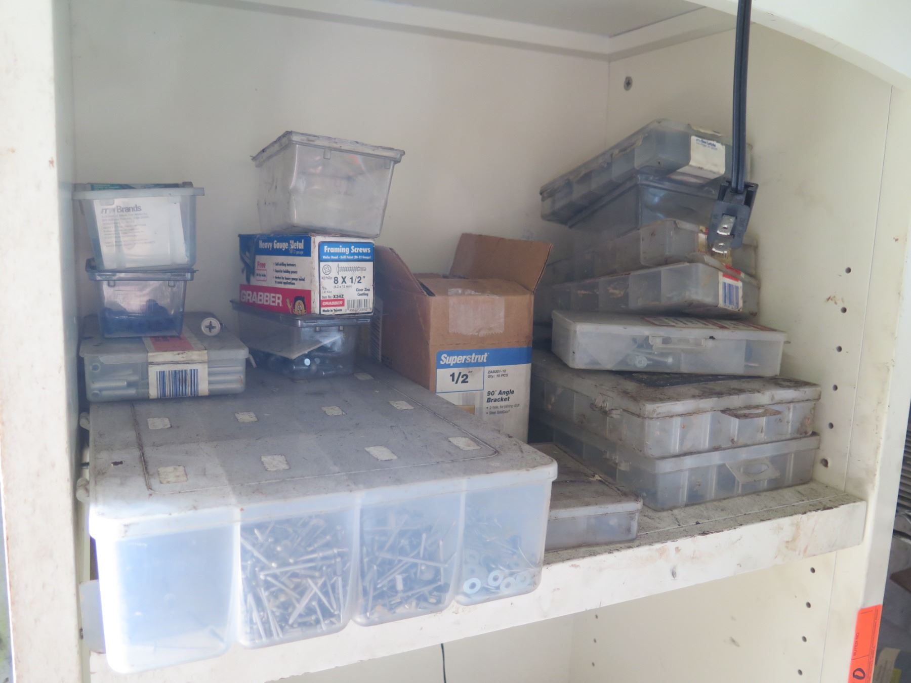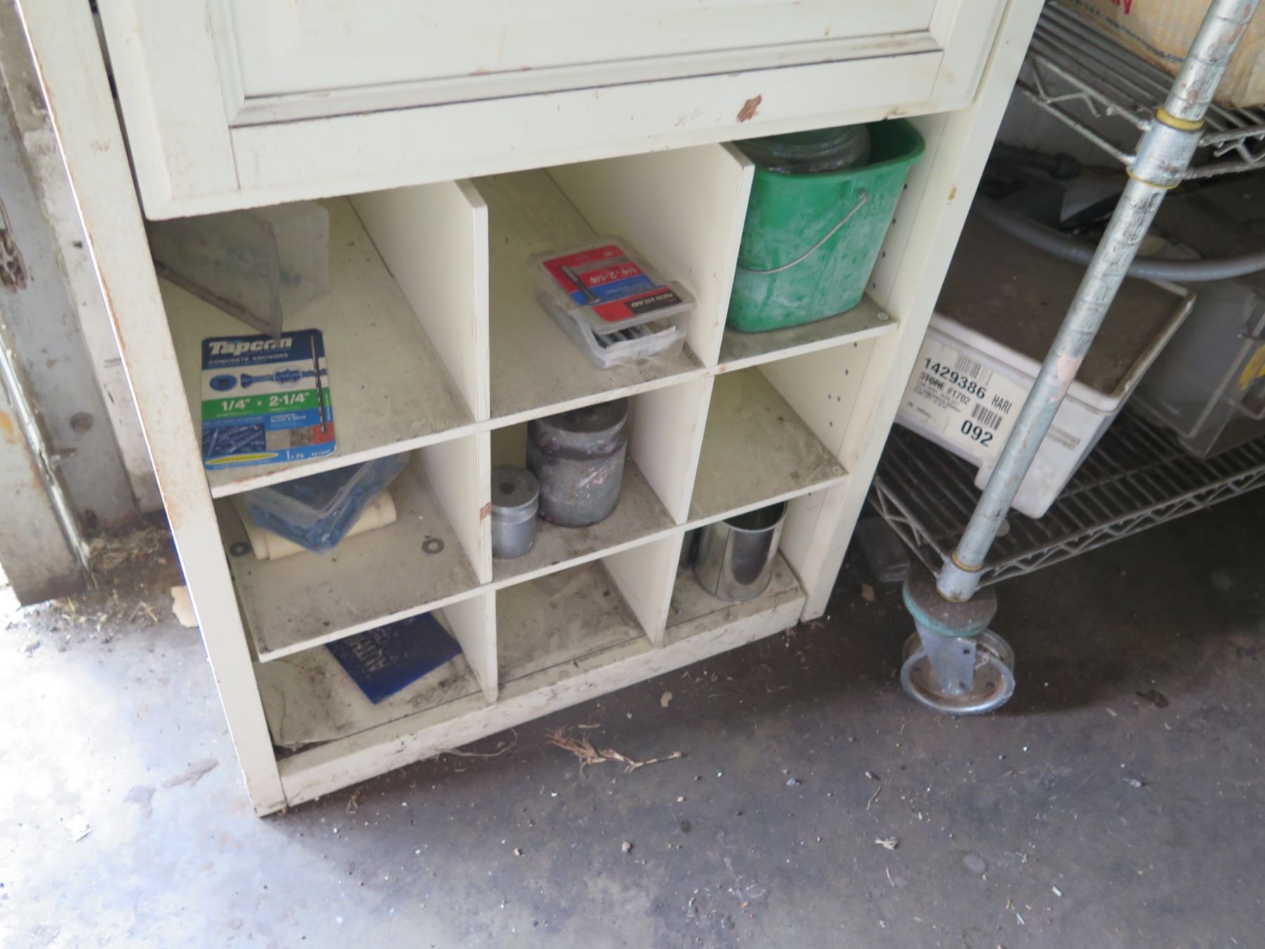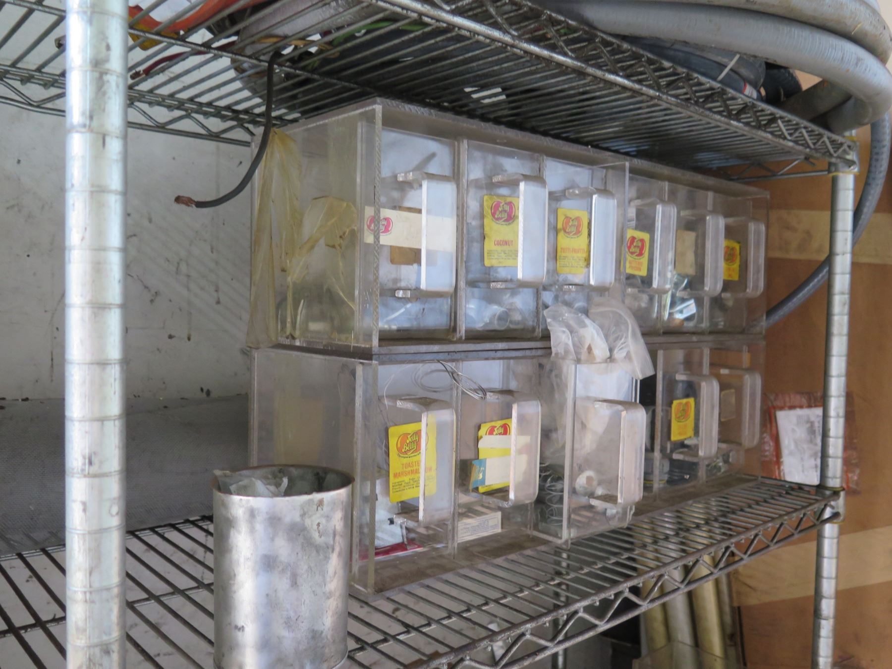 Qty 2 Shelving Units & Contents: Hardware, Hose, Parts, etc