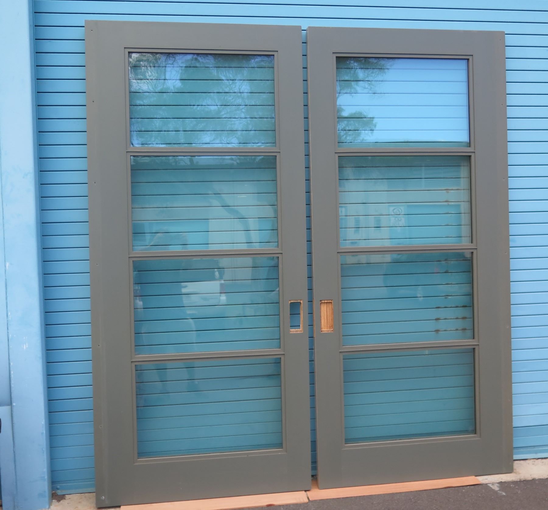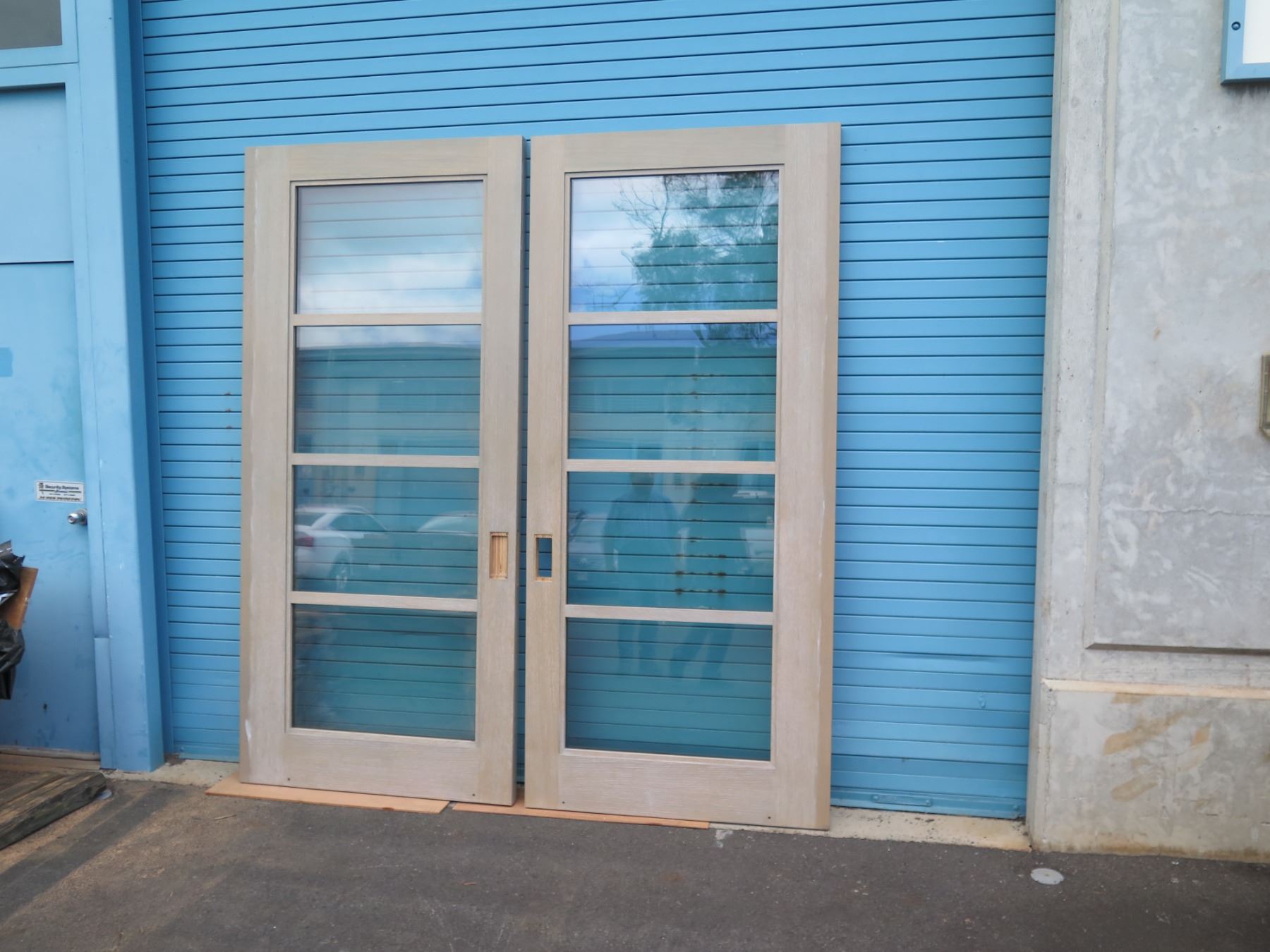 Set of 2 sliding doors. Hardware is not inclued. Each panel is 43-3/16” x 95-7/8” x 2-1/4”. Glass is performance insulated. There is also 2 each sliding panels that are open for screens. 4 panels total. Doors have a professional high quality painted exterior and white washed oak interior finish. Retail value = $11,400.00 total. Hardware for this door is available for purchase from the seller.