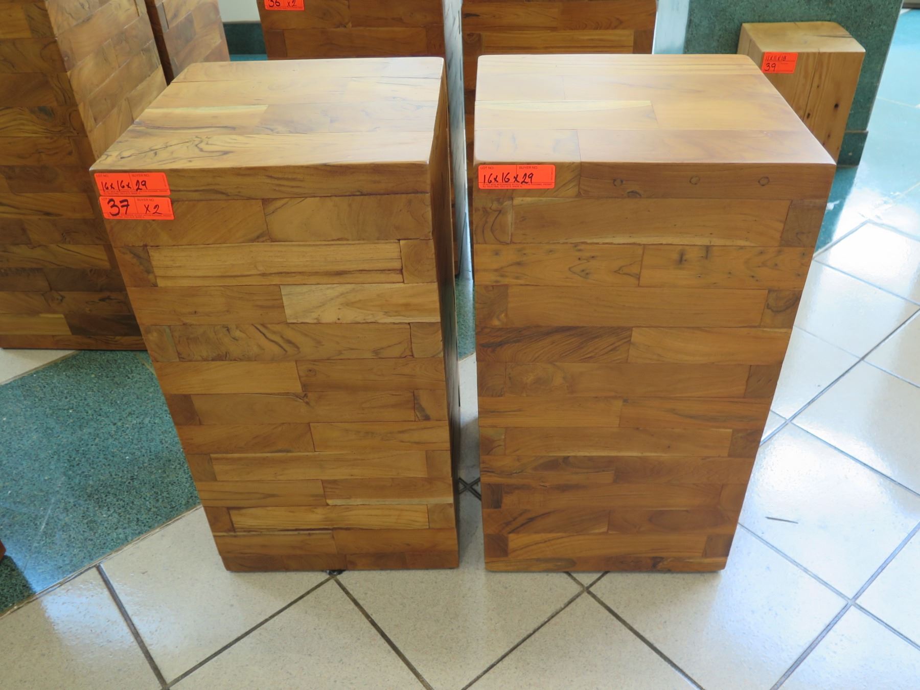 Qty 2 Solid Wooden Accent Blocks, Each Approx. 16" x 16" x 29"