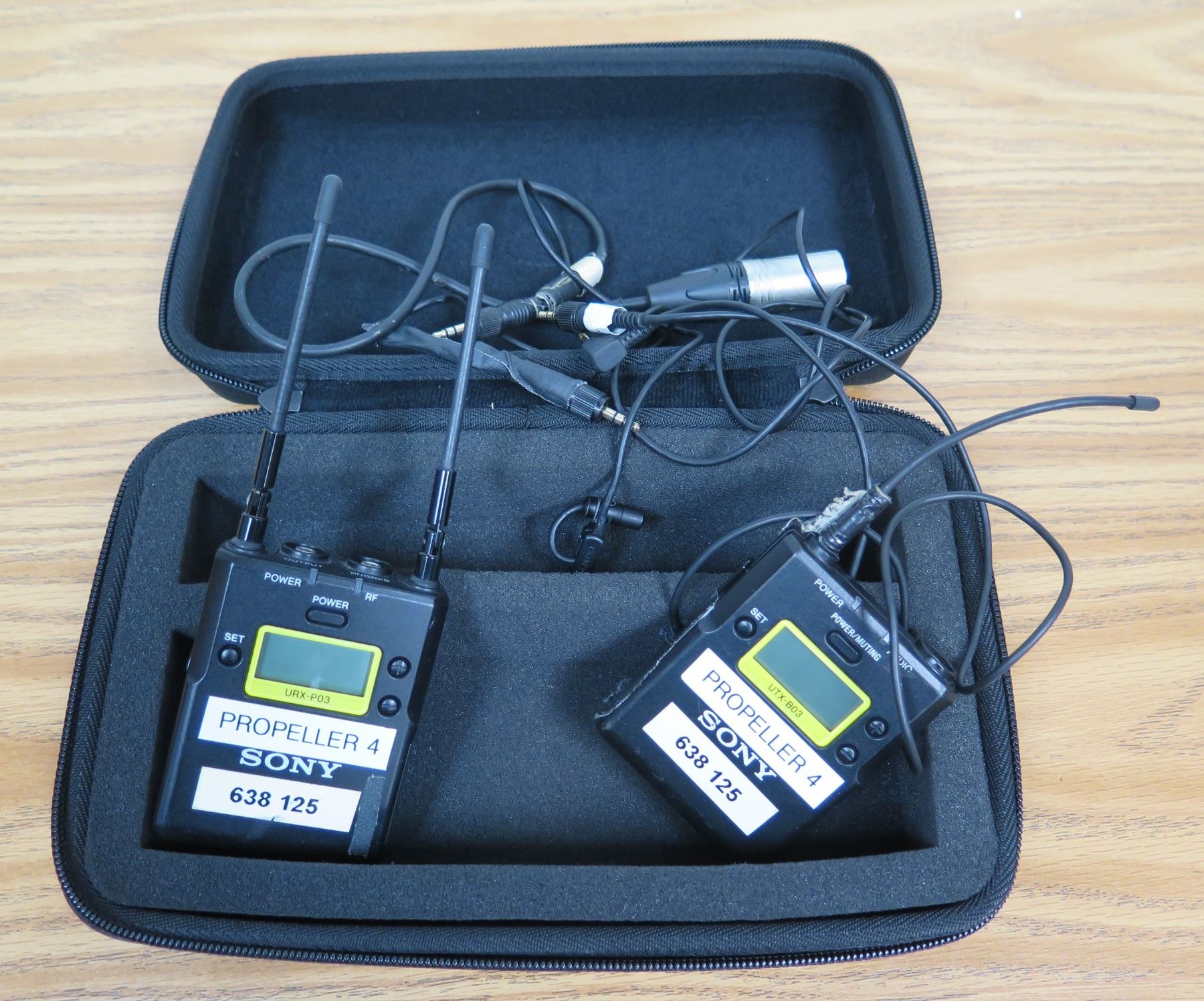 Qty 2 Sony UTX-B03 Belt-Pack Wireless Audio Mic Transmitters in Case