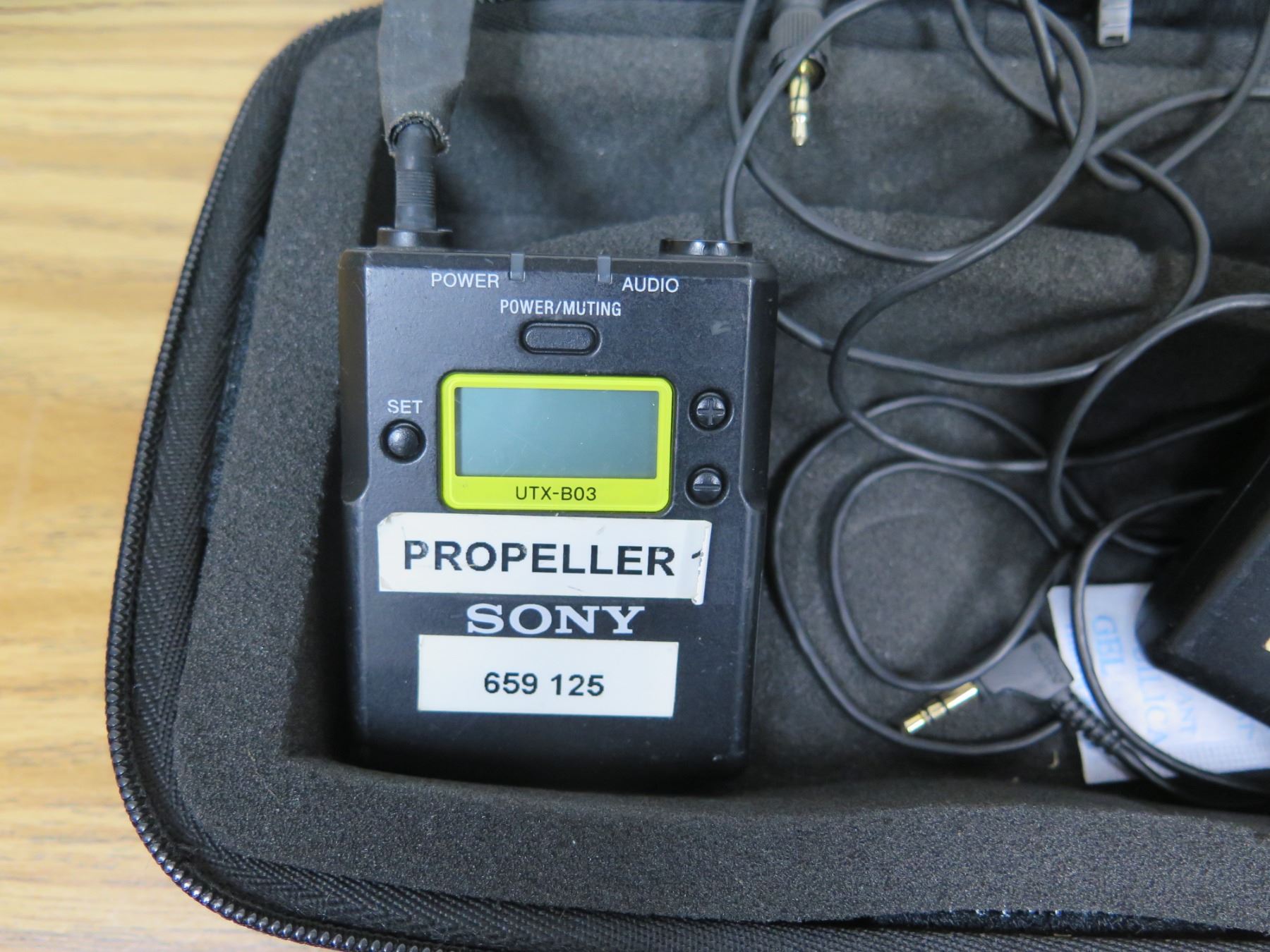 Qty 2 Sony UTX-B03 Belt-Pack Wireless Audio Mic Transmitters in Case