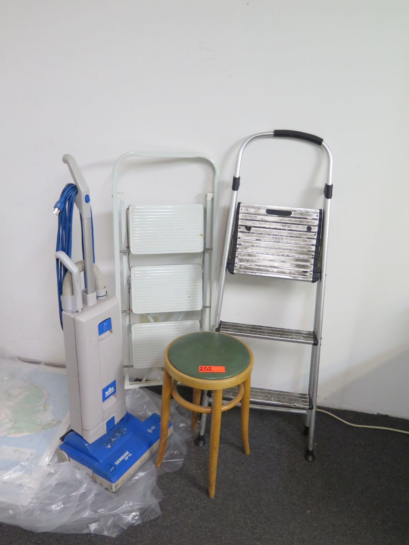 Qty 2 Step Ladders, Round Stool & Windsor Sensor XP14 Vacuum