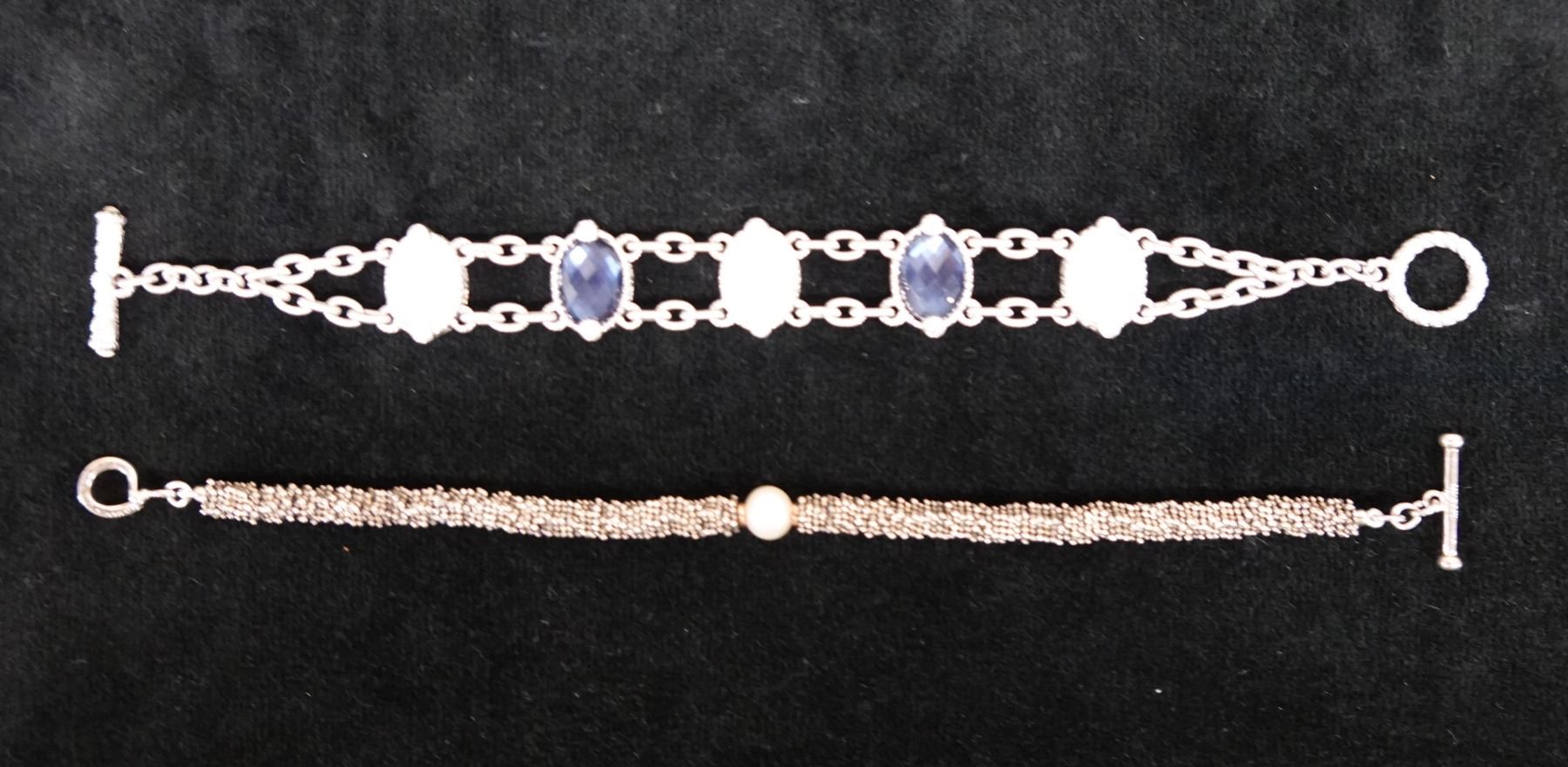 Qty 2 Sterling Silver 925 Bracelets, 8" L