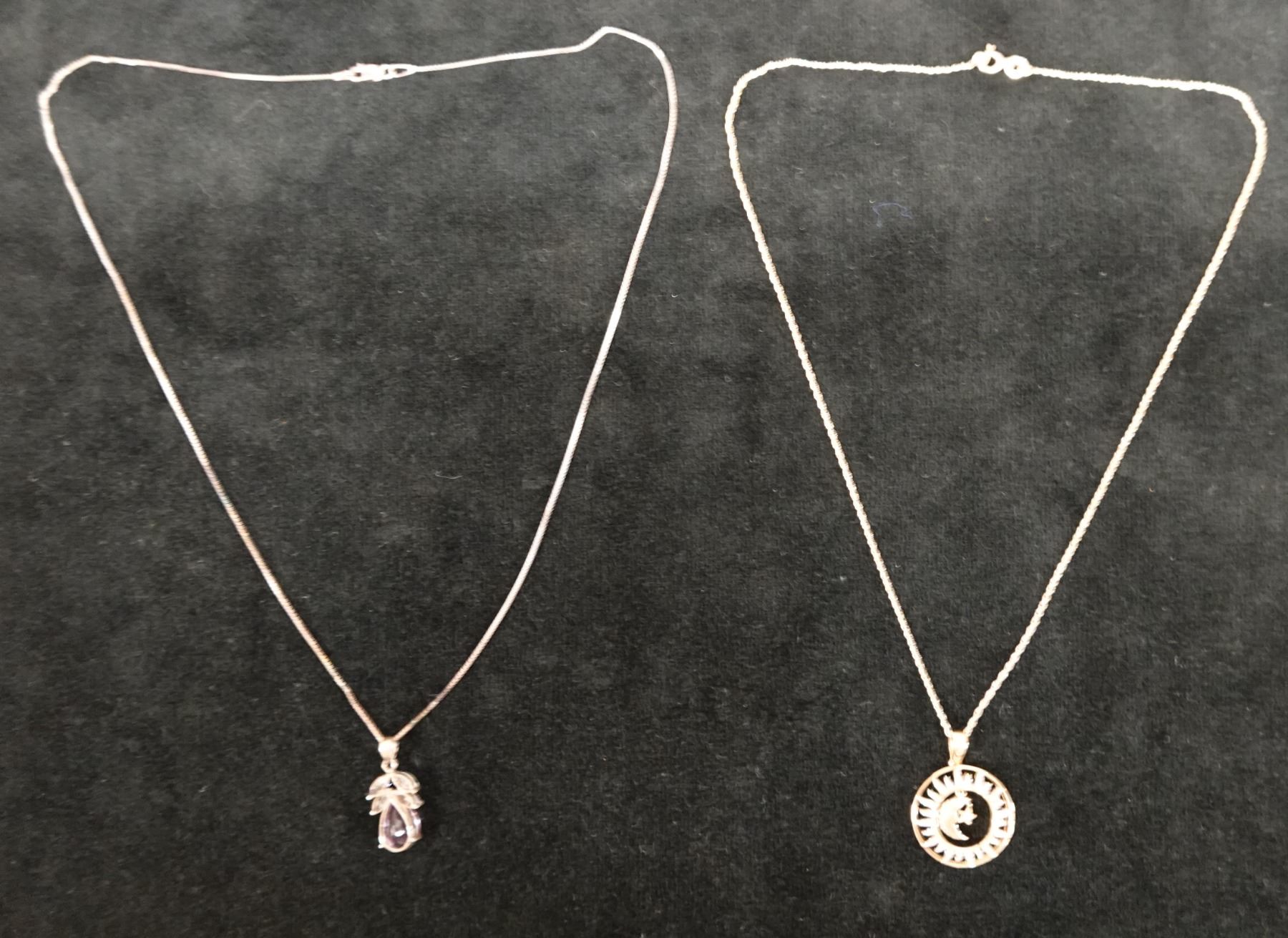 Qty 2 Sterling Silver 925 Necklaces w/ Pendants, Misc Sizes