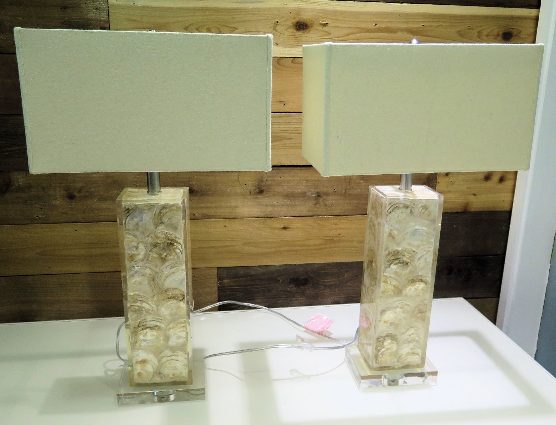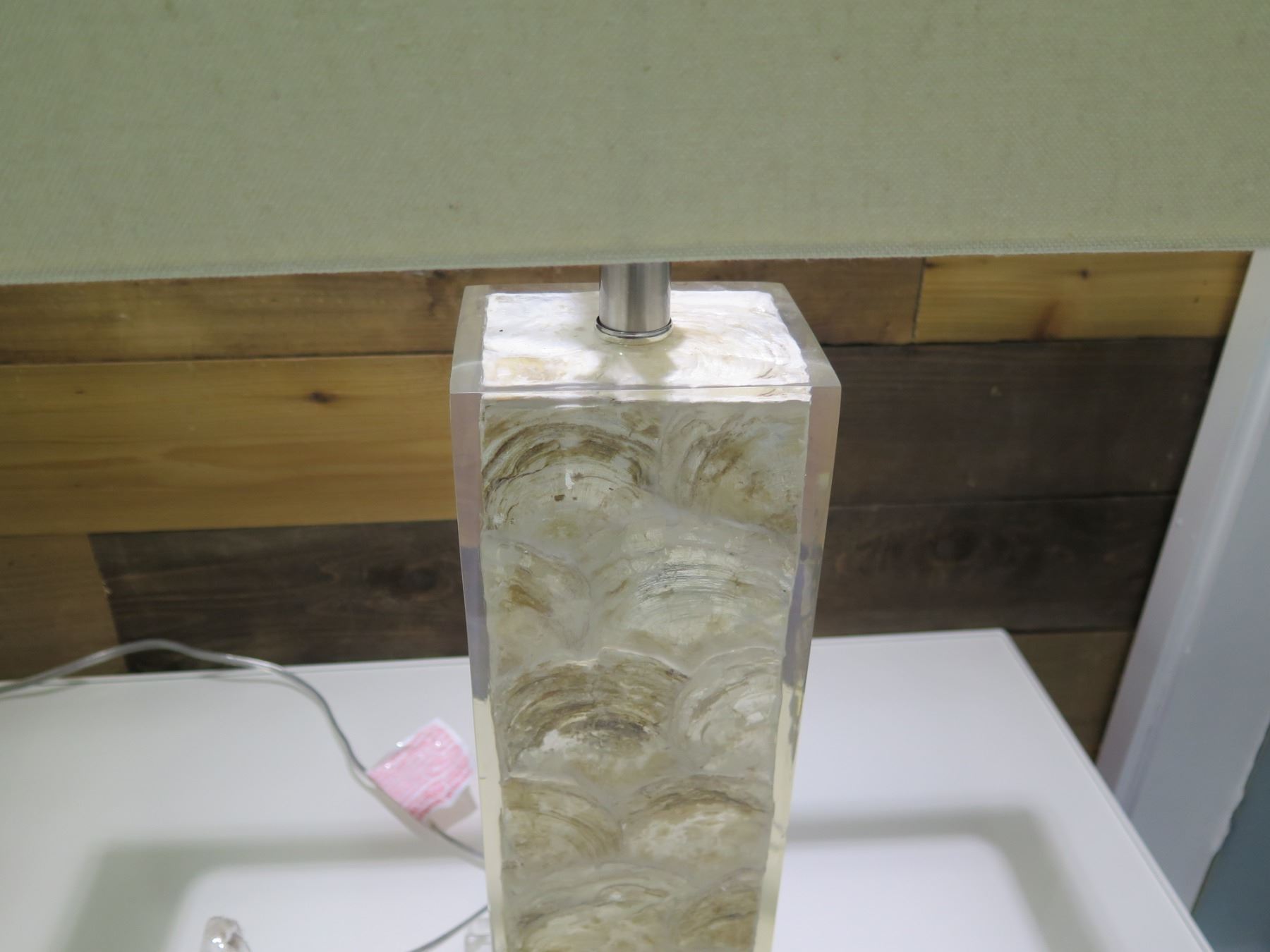 Qty 2 Stone Base Lamps w/ Rectangle Shades 7" Diameter x 28" High