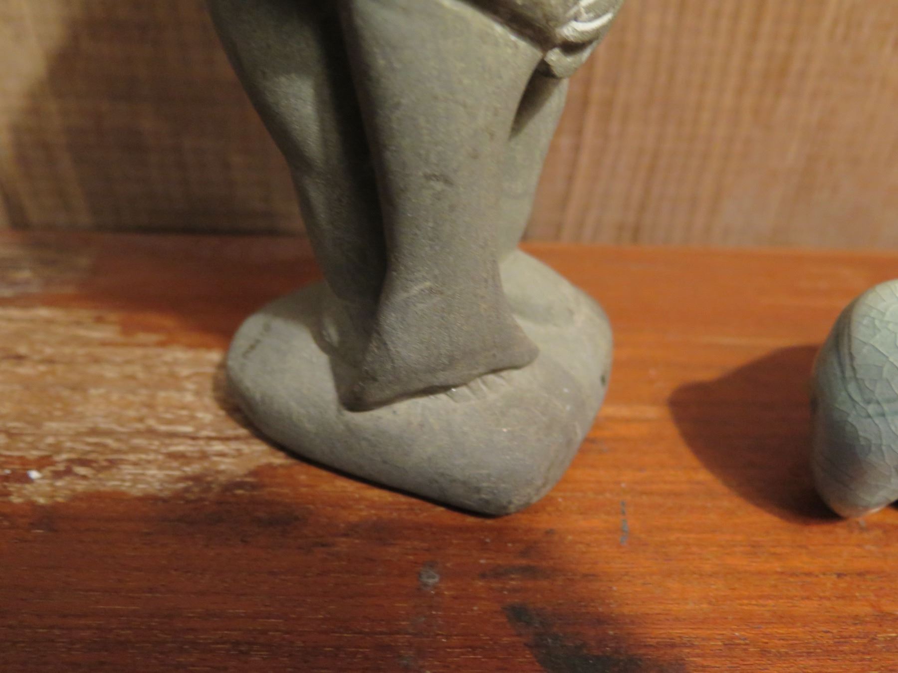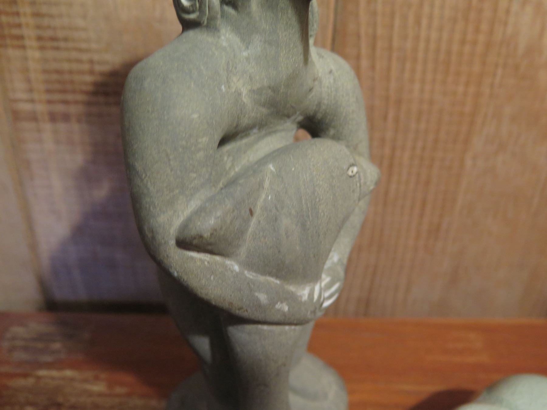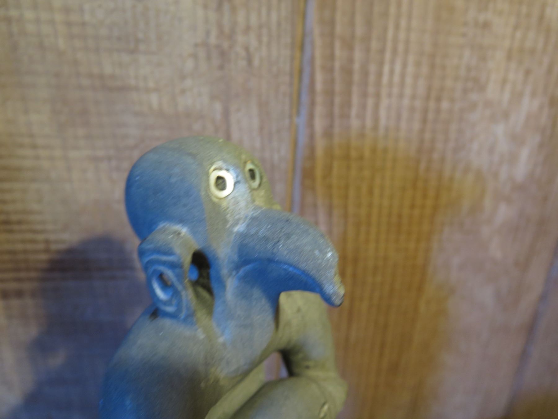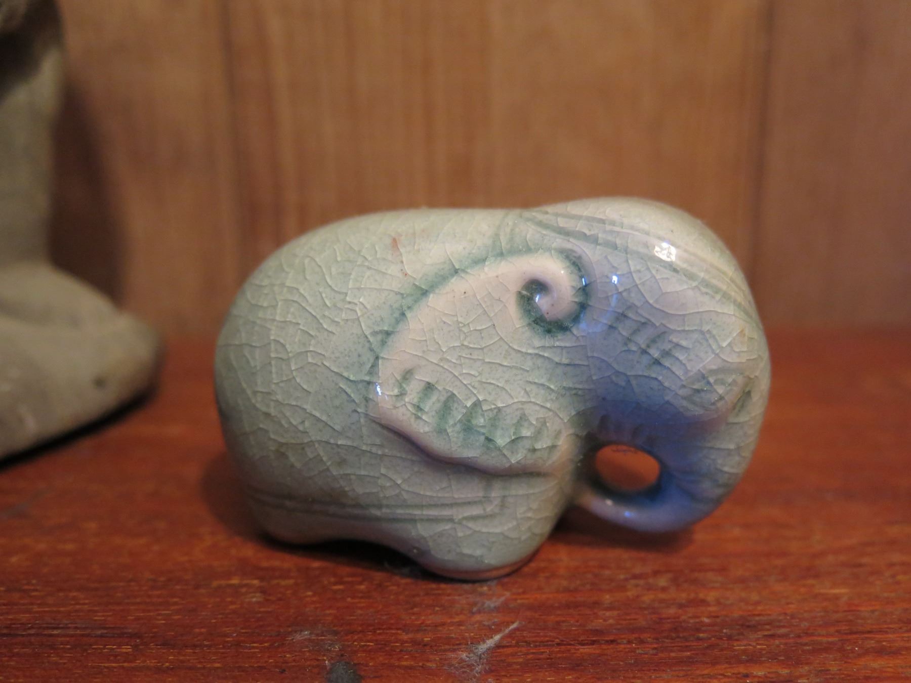 Qty 2 Stone Bird Figurine w/Fish, Glazed Green Elephant